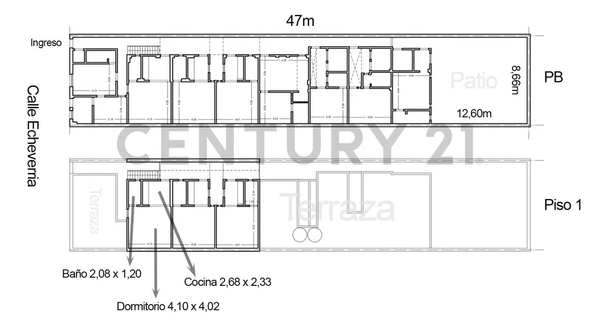 Imóvel em Villa Maipú, partido de San Martín, desenvolvido em lote de 8,66 metros de frente por 47 metros de fundo, com 407 m². O imóvel conta com 11 unidades: 8 unidades no térreo e 3 unidades no piso superior. Contrato de aluguel total com duração de 5 anos.