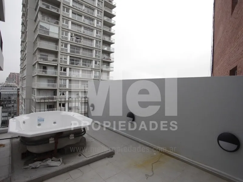 Kitnet (monoambiente) com varanda em edifício de esquina com 15 andares, em General San Martín. O ambiente principal tem pisos flutuantes e ventila para uma varanda corrida; cozinha integrada e banheiro completo. Unidade apta para uso profissional com limitações. O prédio conta com hidromassagem, solário e sauna.
