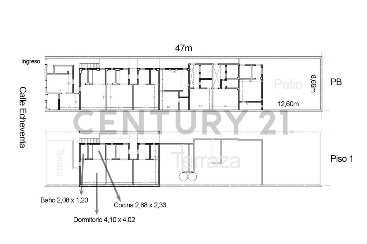 Imóvel destinado a uso institucional ou comercial em Villa Maipú, partido de San Martín. Está construído em um lote com 8,66 m de frente por 47 m de fundo, com 407 m² de área. O imóvel tem 11 unidades: 8 no térreo e 3 no 1º pavimento, com múltiplos espaços independentes para diferentes atividades. O aluguel é do imóvel inteiro, com contrato de 5 anos.