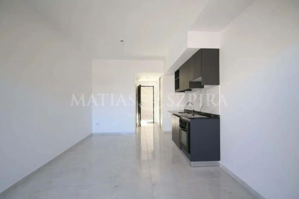 Kitnet novo em Ituzaingó, com 28 m² cobertos, 6,65 m² descobertos e 34,50 m² totais. O ambiente único tem vista para o parque central do complexo. Possui cozinha integrada com cooktop e forno elétricos, banheiro completo com banheira e varanda/terraço de quase 7 m² com churrasqueira própria. O complexo conta com piscina, sala de jogos, playground, laundry, microcine, salão de usos múltiplos (SUM), quincho, internet e Wi‑Fi, além de vigilância com câmeras, acesso digital e elevador. Há vaga de ga