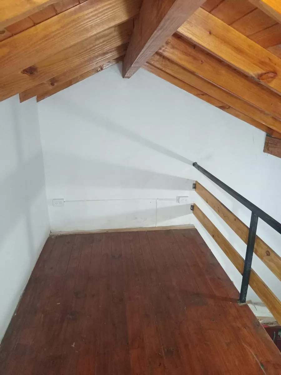Apartamento tipo duplex de frente em Ituzaingó. No piso térreo, cozinha e área de refeições com banheiro. Há um mezanino pequeno para dormitório ou escritório. Próximo ao centro comercial e ao Acesso Oeste. Não aceita animais.