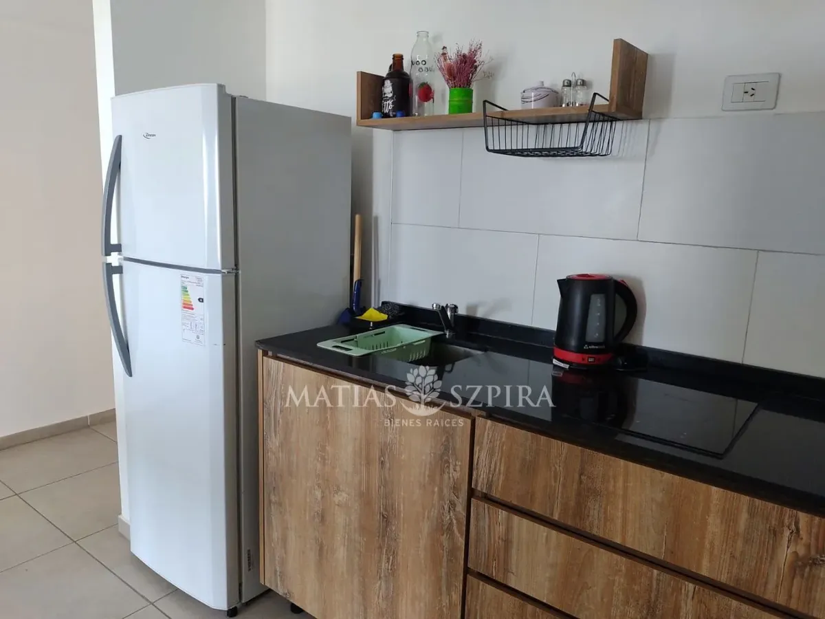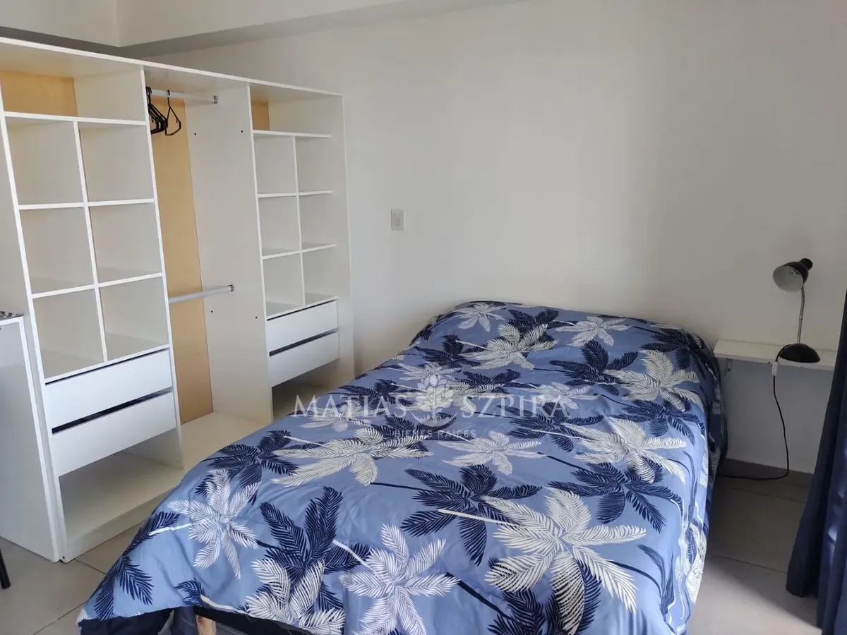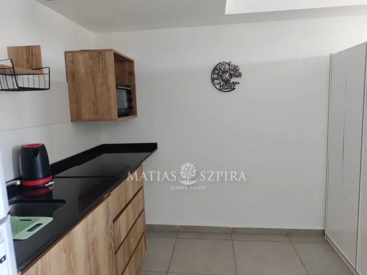 Kitnet mobiliada para aluguel em Ituzaingó Norte, com varanda e banheiro completo. O imóvel tem cozinha com móveis, armário aéreo e gabinete sob a pia e fica a 2 quadras da estação. O prédio oferece serviço de lavanderia, piscina, área verde comum e salão de usos múltiplos; aceita animais de pequeno ou médio porte. É anunciado com mobília conforme fotos.