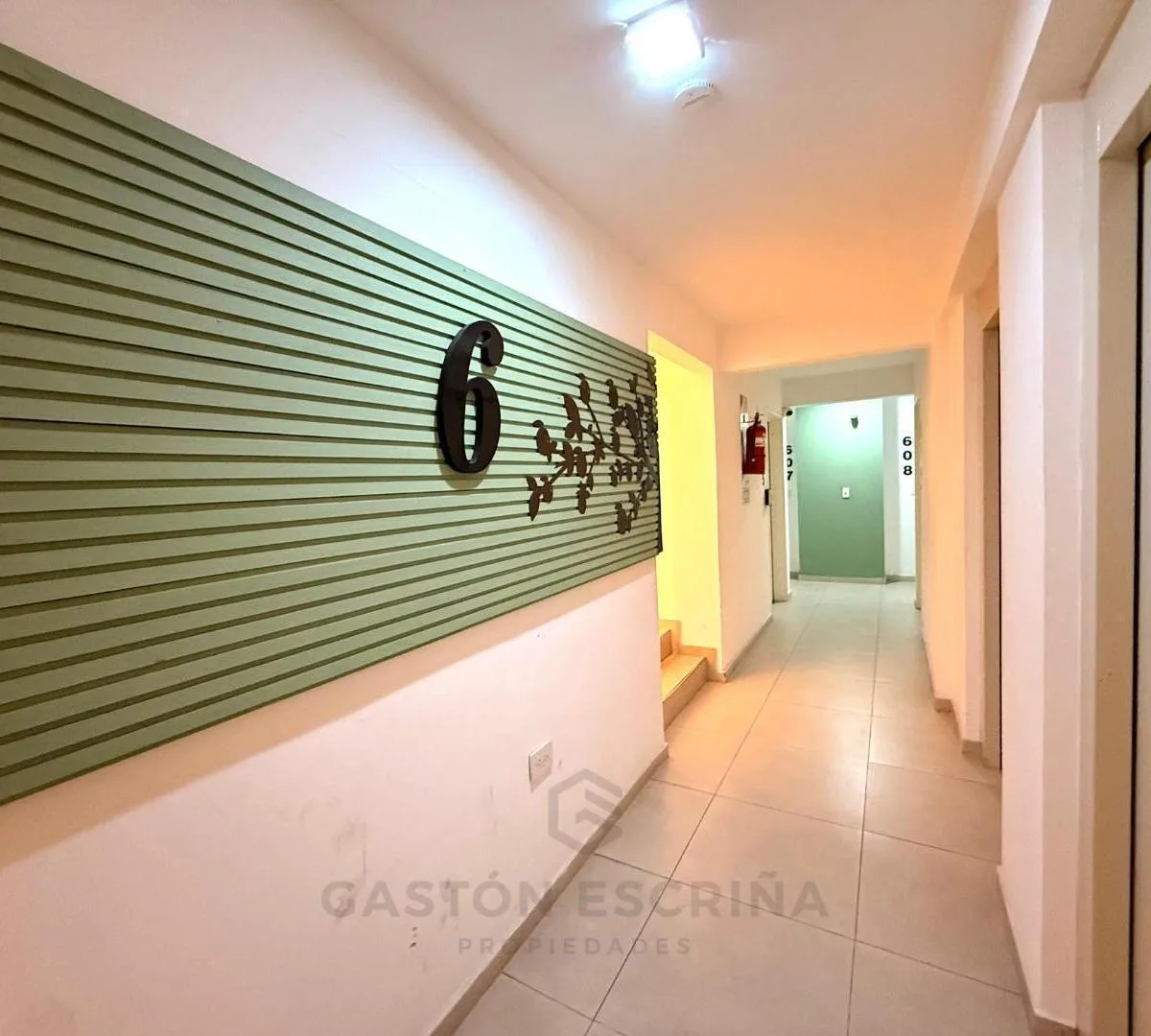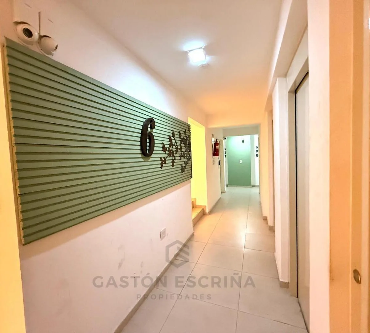 Kitnet para aluguel no 6º andar, com cozinha, banheiro completo, closet aberto e varanda. O prédio tem portaria, segurança 24h e câmeras de segurança. Dispõe de salão de festas (SUM), piscina e área verde. O condomínio inclui valor municipal. Contrato de 2 anos, com reajustes trimestrais pelo índice IPC; fiança por seguro de caución com comprovação de renda. Pagamento inicial: 1 mês de adiantamento de $450.000, depósito de US$450, honorários de $450.000 e certificação de assinatura de cerca de $