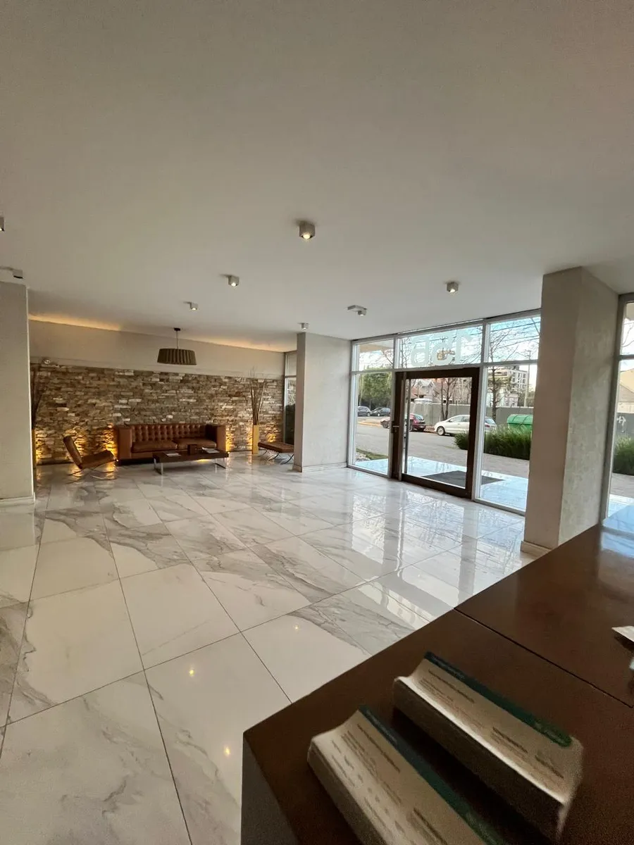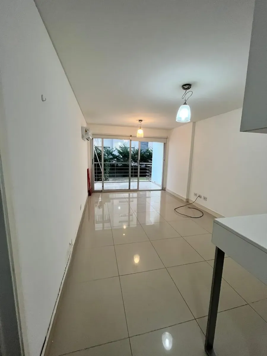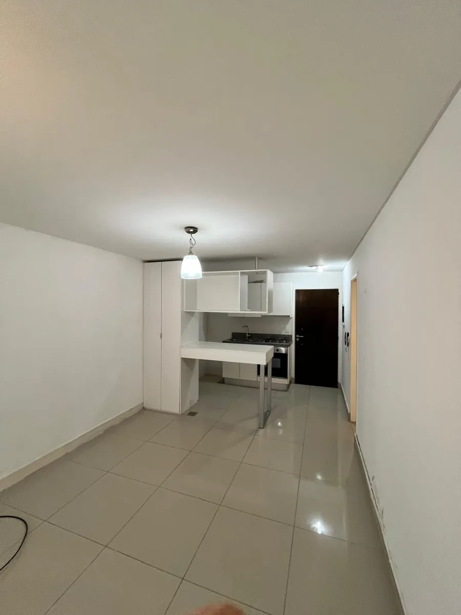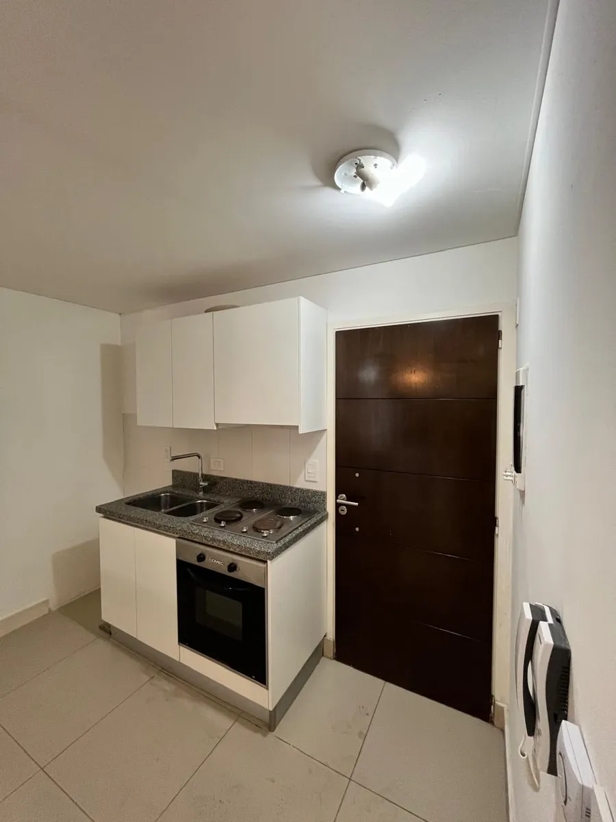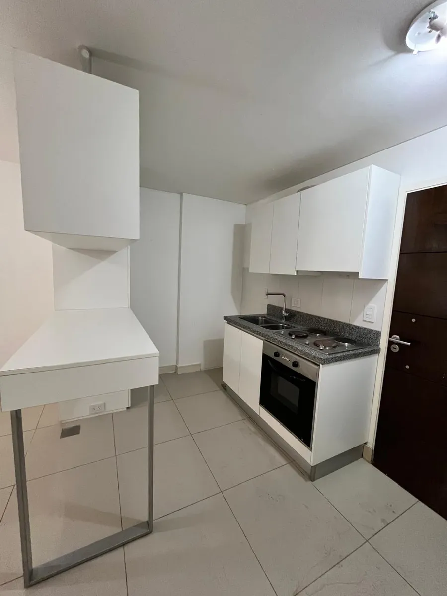 Kitnet (monoambiente) no Centro de Ituzaingó, em edifício com múltiplos serviços e comodidades. Possui ambiente com cozinha integrada mobiliada com forno, fogão (anafe) e barra, banheiro completo e varanda com vista para o miolo de quadra do salão de usos múltiplos (SUM). O ar-condicionado é setorizado. O prédio tem segurança com equipe 24 horas, academia, piscina, salão comunitário (SUM) e vaga de garagem (fixa). O condomínio custa $180.000. Não são aceitos animais. O contrato é de 2 anos, com