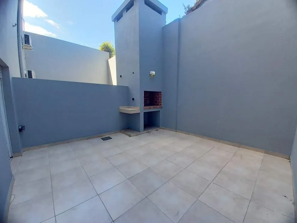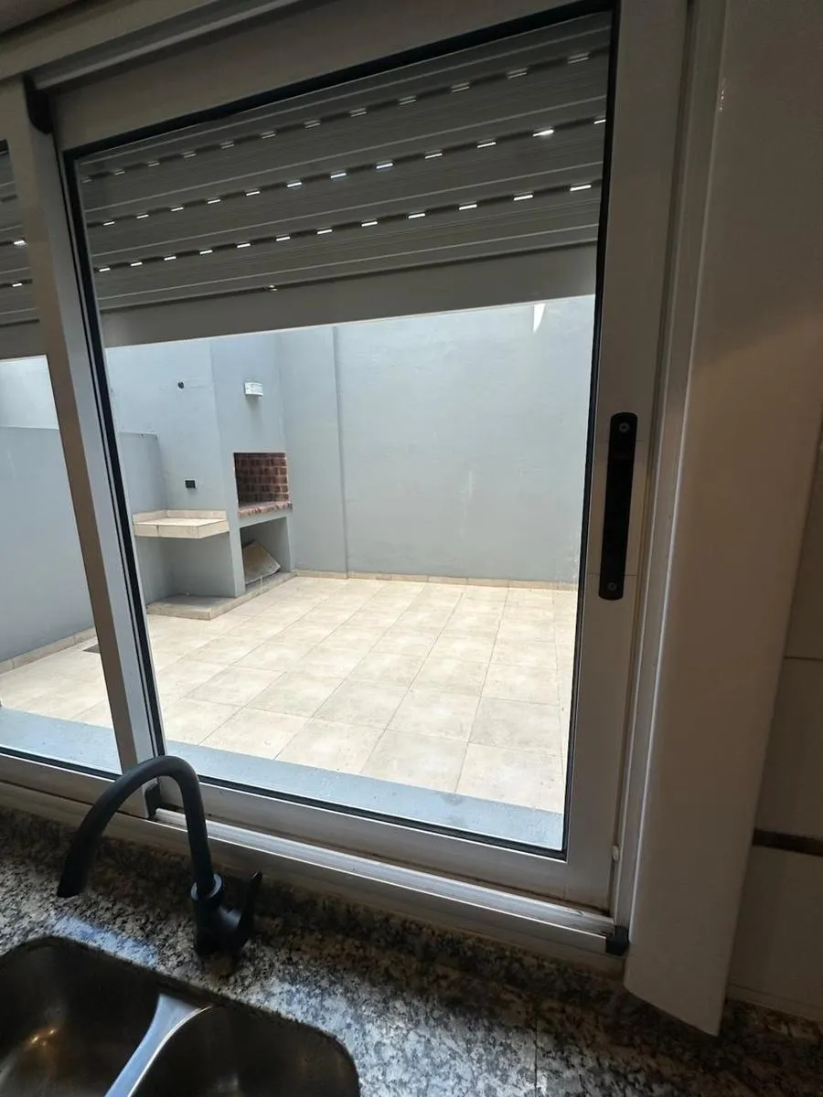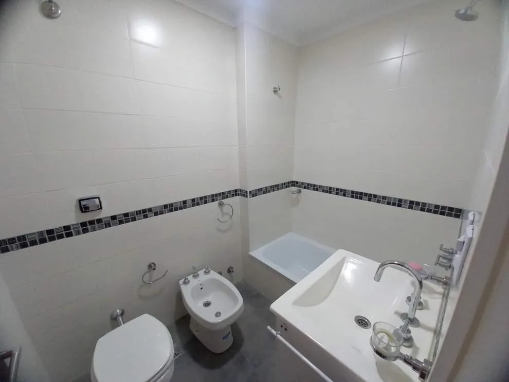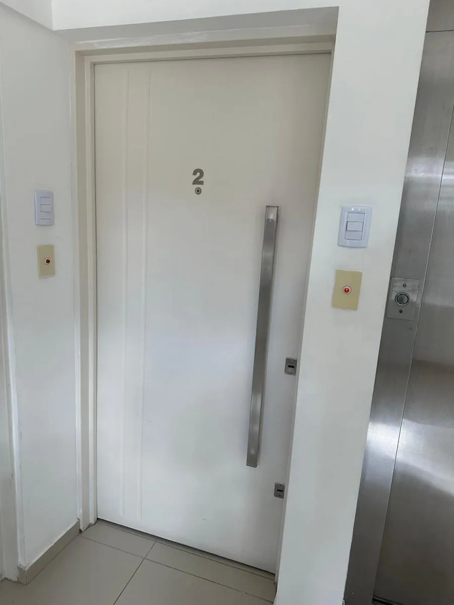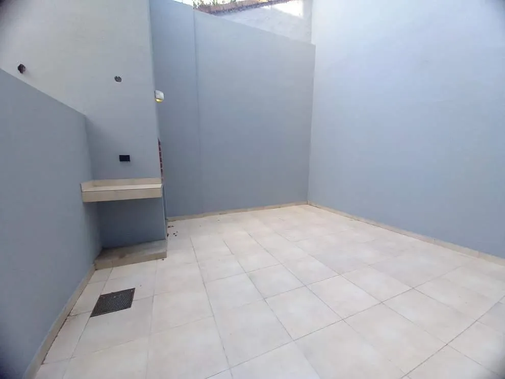 Kitnet (monoambiente) com cozinha integrada, móveis sob a bancada e ventilação natural. Banheiro completo com banheira e saída para pátio próprio, que pode ser usado como área externa ou para lavanderia. Pisos de porcelanato e boa iluminação natural.