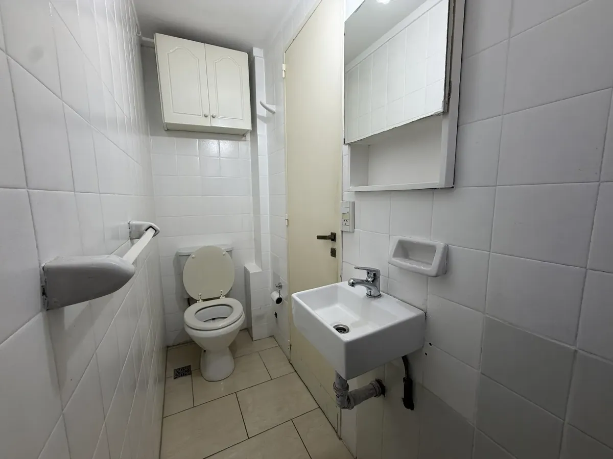 Apartamento de 1 ambiente em Ramos Mejía para alugar, com divisão por armário embutido entre a área de estar e o dormitório. Cozinha e banheiro completo. O imóvel fica a 1 quadra da estação, no centro de Ramos Mejía. Aluguel de $370.000 e condomínio de $84.000.