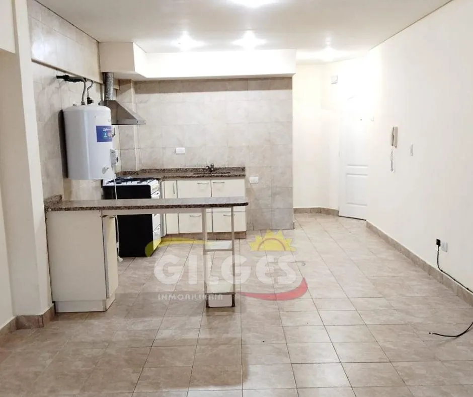 Apartamento de 1 ambiente divisível, de frente para a rua. Cozinha integrada com barra para café da manhã e área de armazenamento. Banheiro completo em bom estado, com termotanque e conexão para internet. Fica a 4 quadras da estação de Ramos Mejía e a 1 quadra da Av. de Mayo.