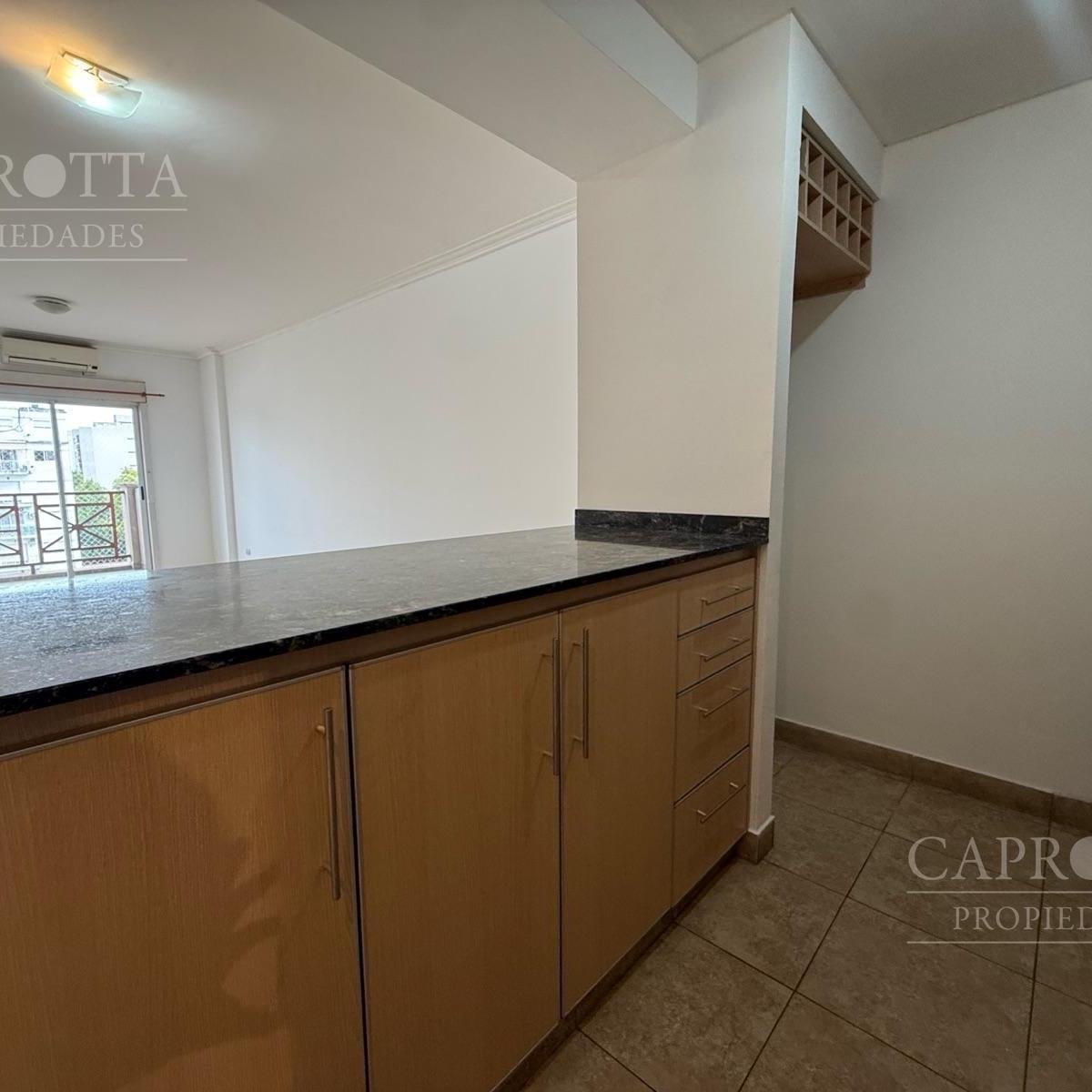 Kitnet de um único ambiente com varanda, muito iluminada. Cozinha com móveis sob e sobre a bancada, placard e banheiro completo. Inclui depósito (baulera) e área de churrasco no prédio.