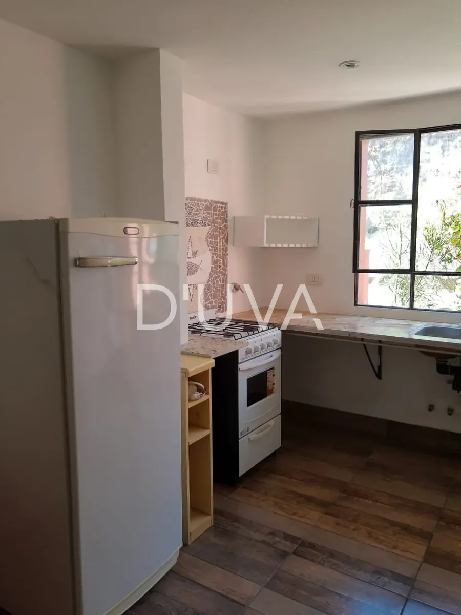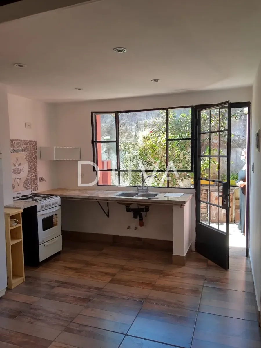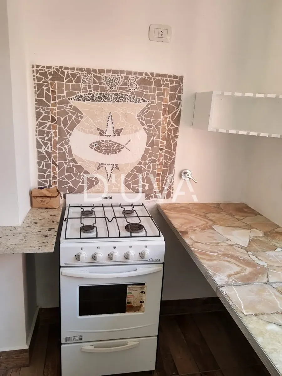 Kitnet com cozinha integrada, geladeira e banheiro completo com os respectivos aparelhos. Possui mezanino de madeira e pátio semi-coberto com conexão para máquina de lavar. O condomínio custa aproximadamente $ 25.000 e não são permitidos animais.