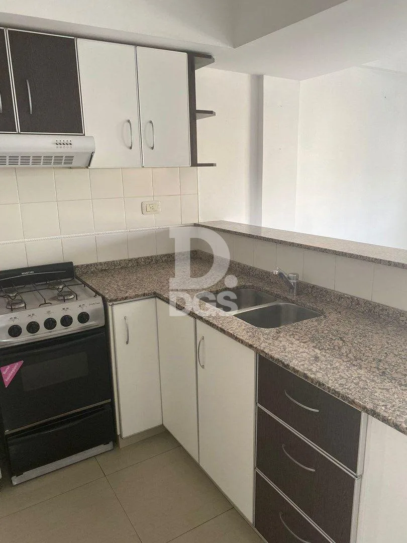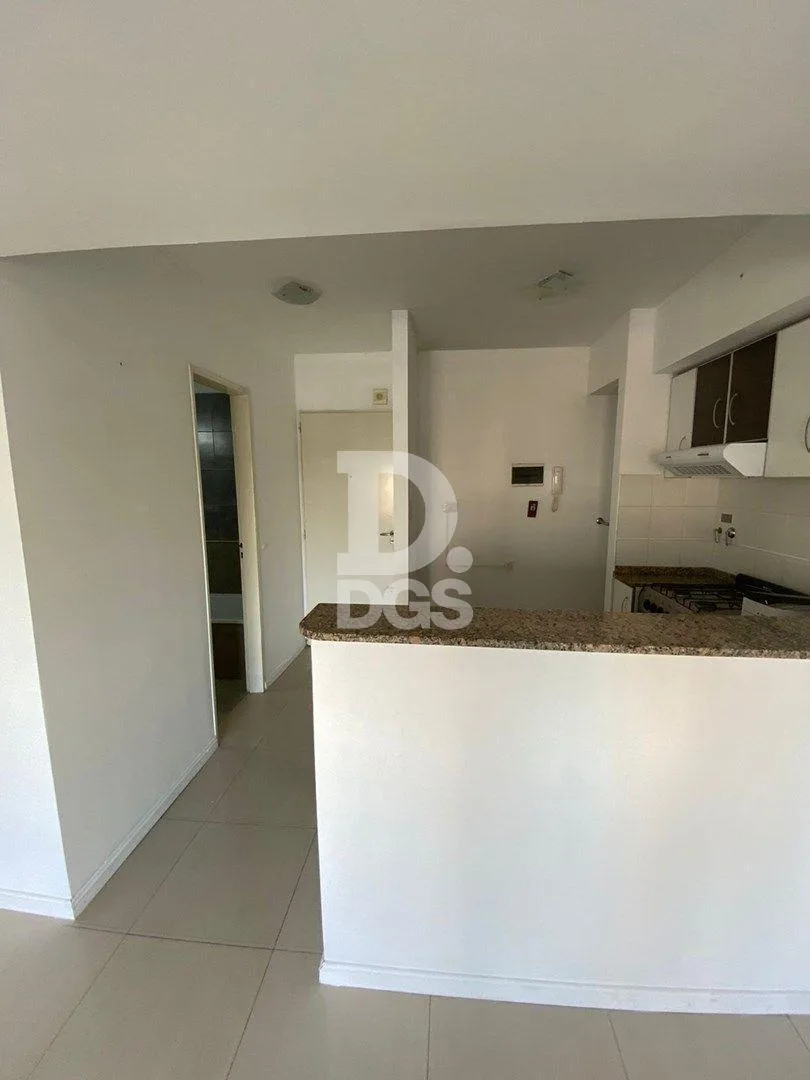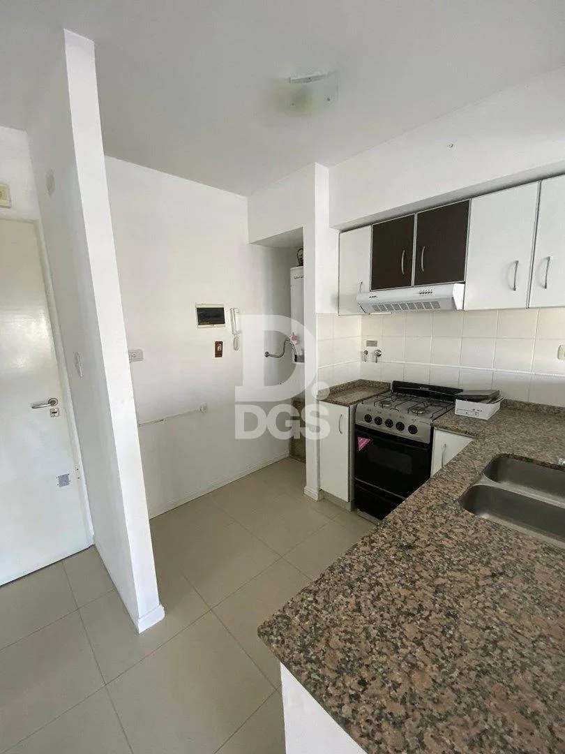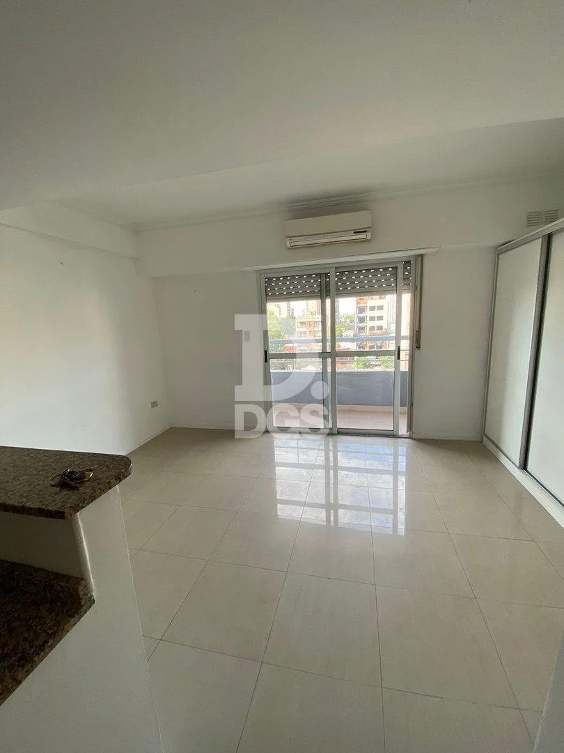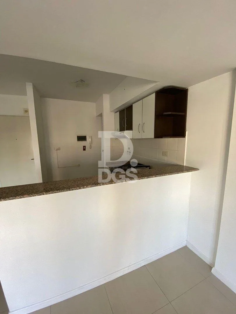 Kitnet (monoambiente) para alugar em Lanús Este, com 1 ambiente, piso cerâmico e armário com 4 portas de correr, com espaço para TV e ar-condicionado frio/calor. Cozinha com bancada tipo barra e armários sob e sobre a pia. Banheiro completo com banheira e armário de apoio. O prédio tem salão de festas (SUM), academia no térreo e depósito (baulera), com condomínio baixo.