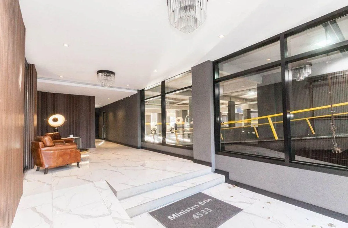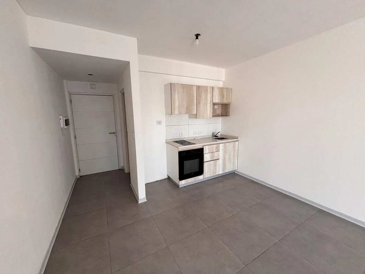 Kitnet no 9º andar, com varanda e vista voltada para o fim da tarde, em Lanús (Centro de Escalada). O prédio tem piscina, salão comunitário e solarium, além de ar-condicionado no apartamento.