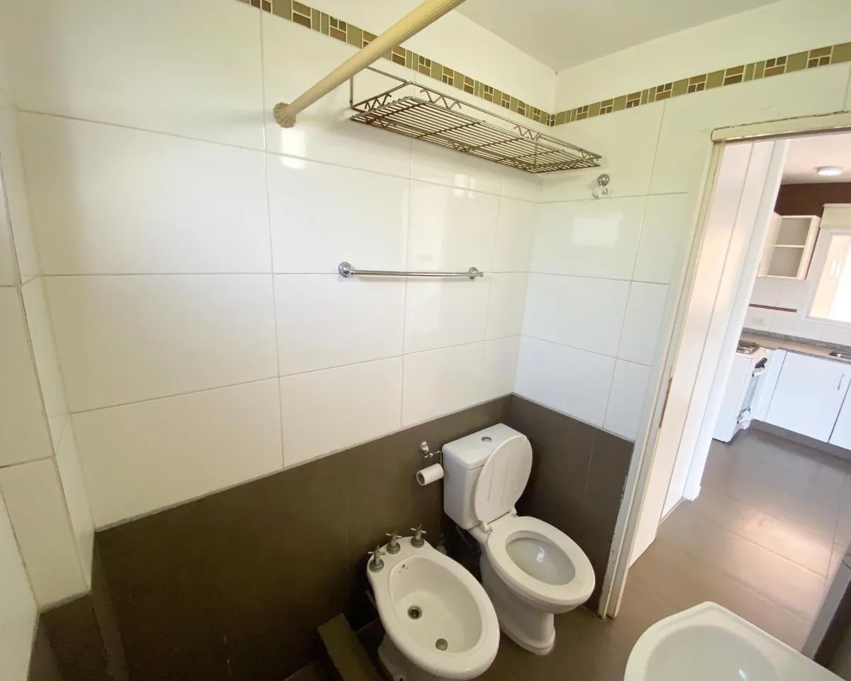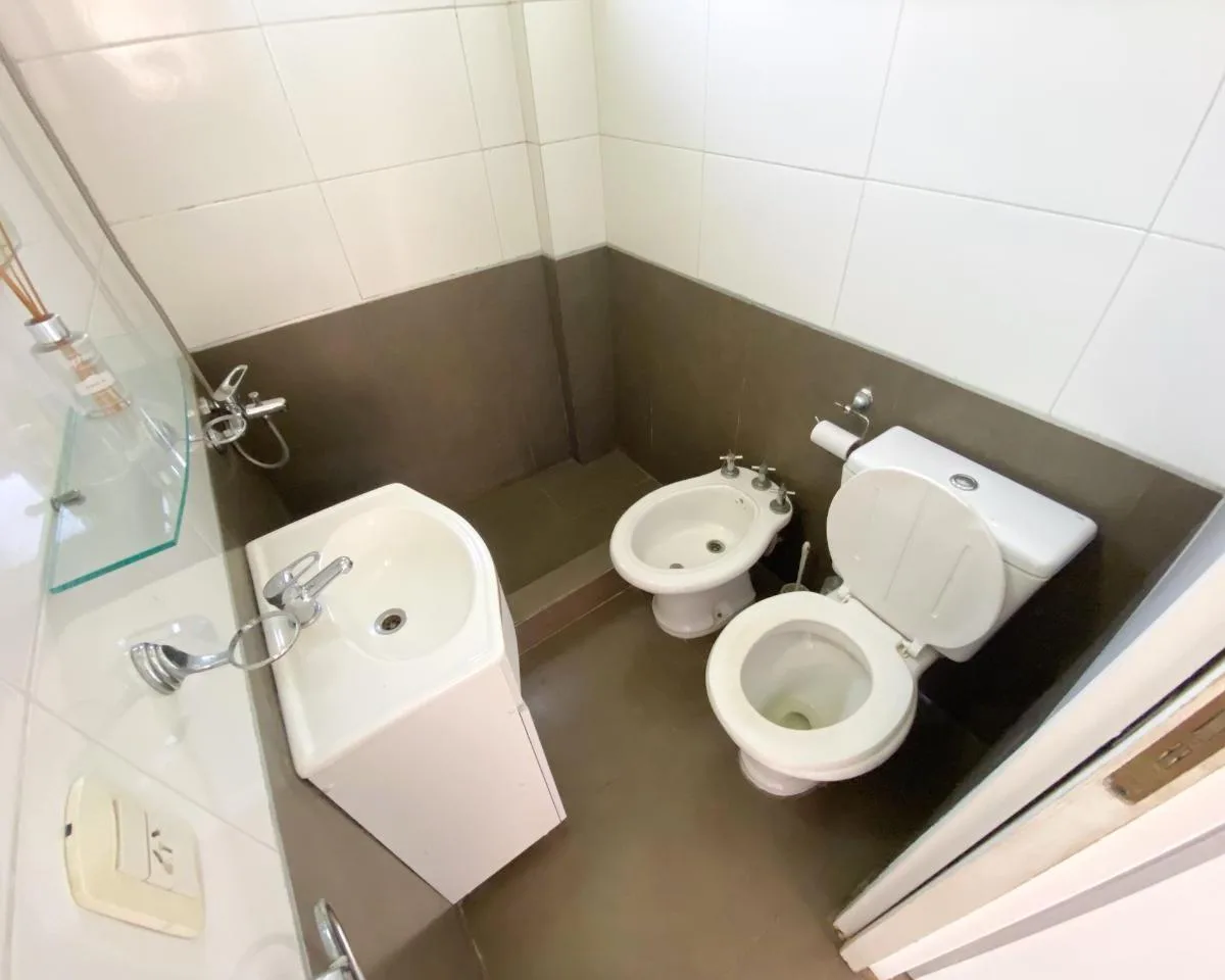 Kitnet de 1 ambiente com 5,64 x 4,57 m em Lanús Centro, no 6º andar, de frente para o leste. Cozinha com revestimento cerâmico, fogão, armário superior e sob a bancada de melamina, bancada de granito, cuba dupla, aquecedor de água elétrico de 80 litros e janela com cortina roller black-out, além de bancada para café e prateleira de madeira; inclui armário embutido. Banheiro com vaso sanitário, bidê, gabinete (vanitory), espelho, box com ducha e acessório organizador. Há um vão envidraçado grande