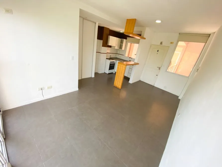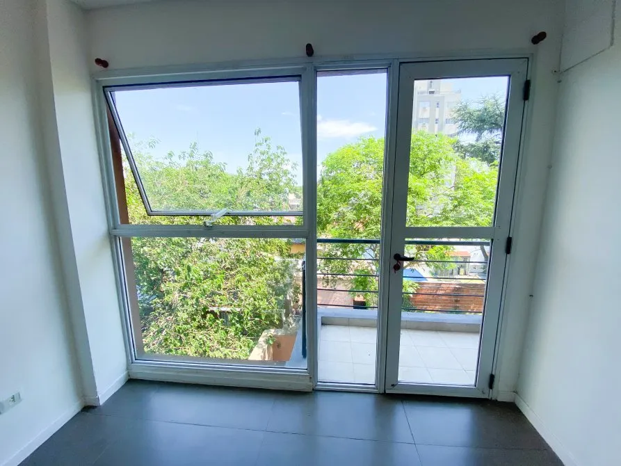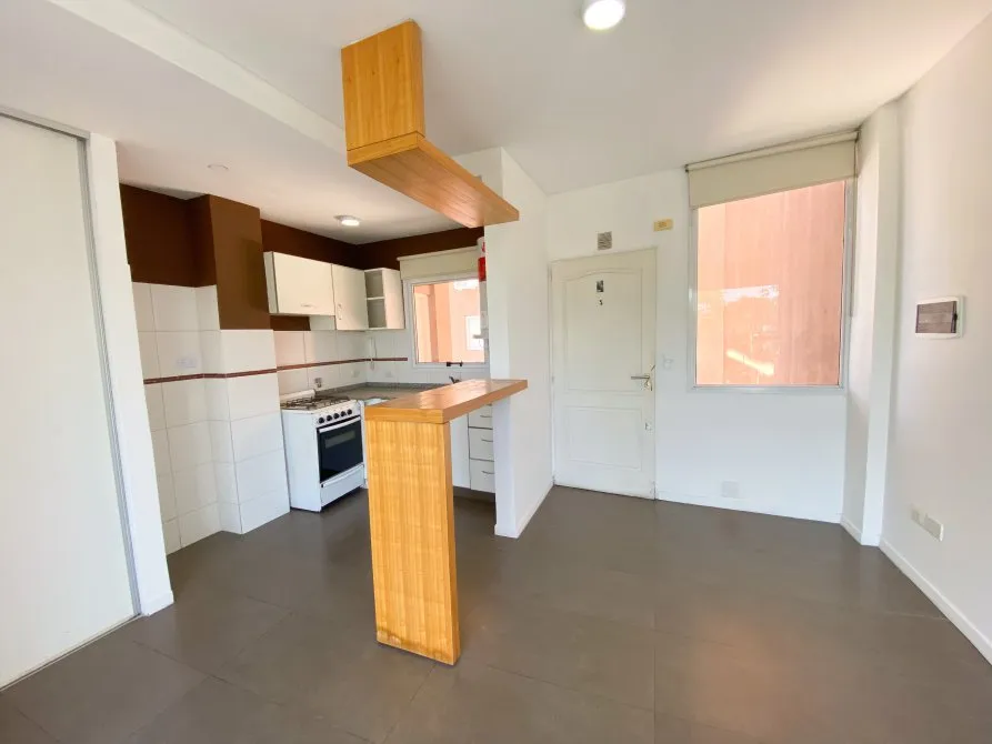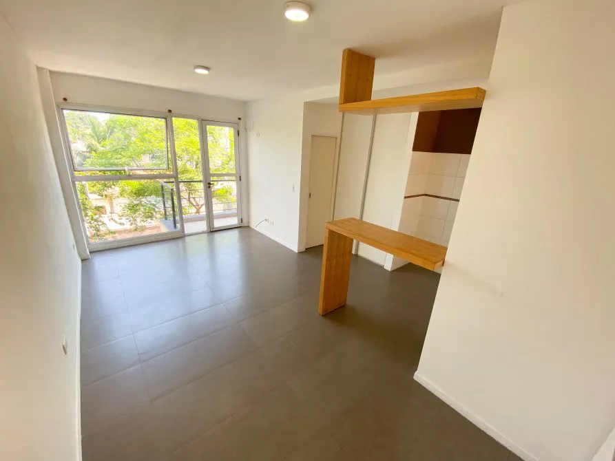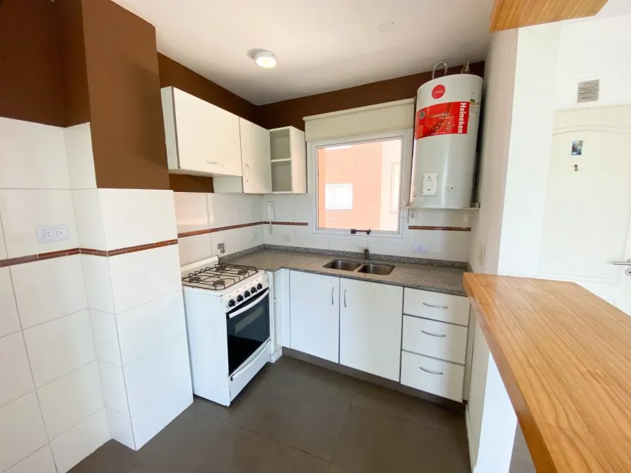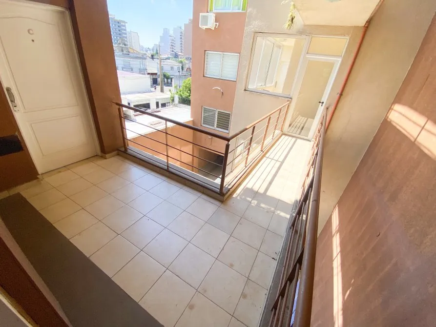 Kitnet (monoambiente) em Lanús Centro, 6º andar, orientação para o leste. Possui ambiente de 5,64 x 4,57 m com cozinha revestida em cerâmica, fogão, armário aéreo e base em melamina, bancada em granito, cuba dupla, aquecedor elétrico de 80 litros, janela com cortina roller black-out, barra para refeições e prateleira de madeira, além de armário embutido. O banheiro tem vaso sanitário, bidê, gabinete (vanitory), espelho e chuveiro com ducha e acessório organizador. Há envidraçamento amplo com por