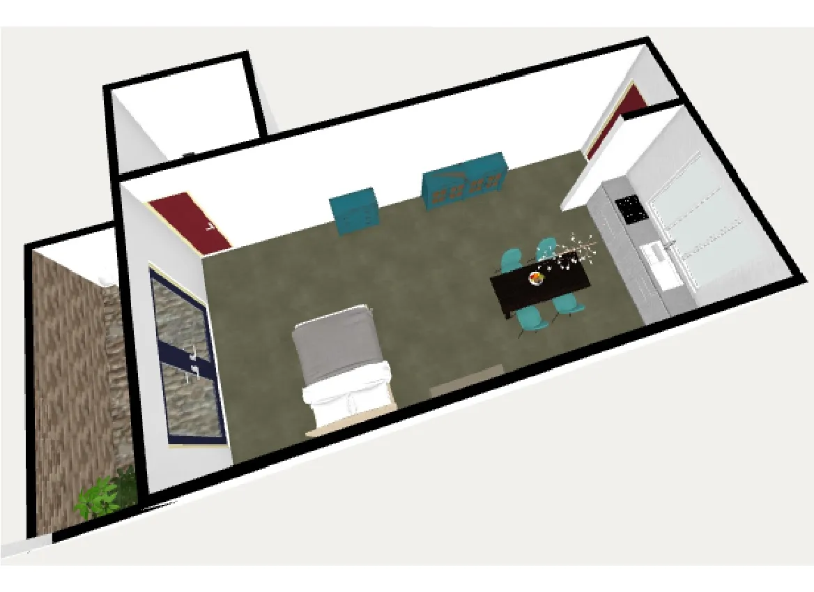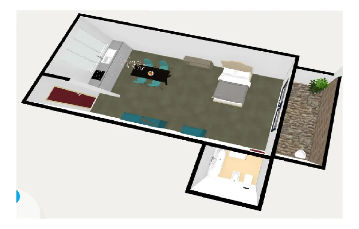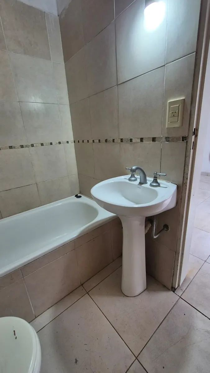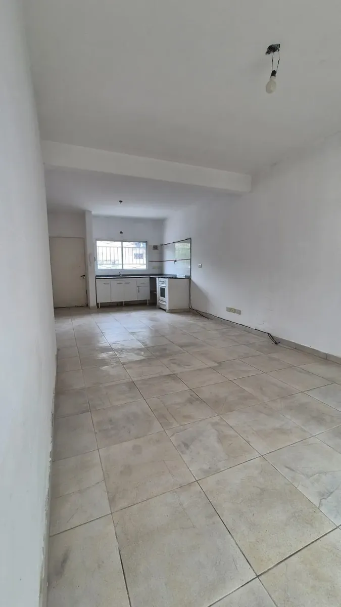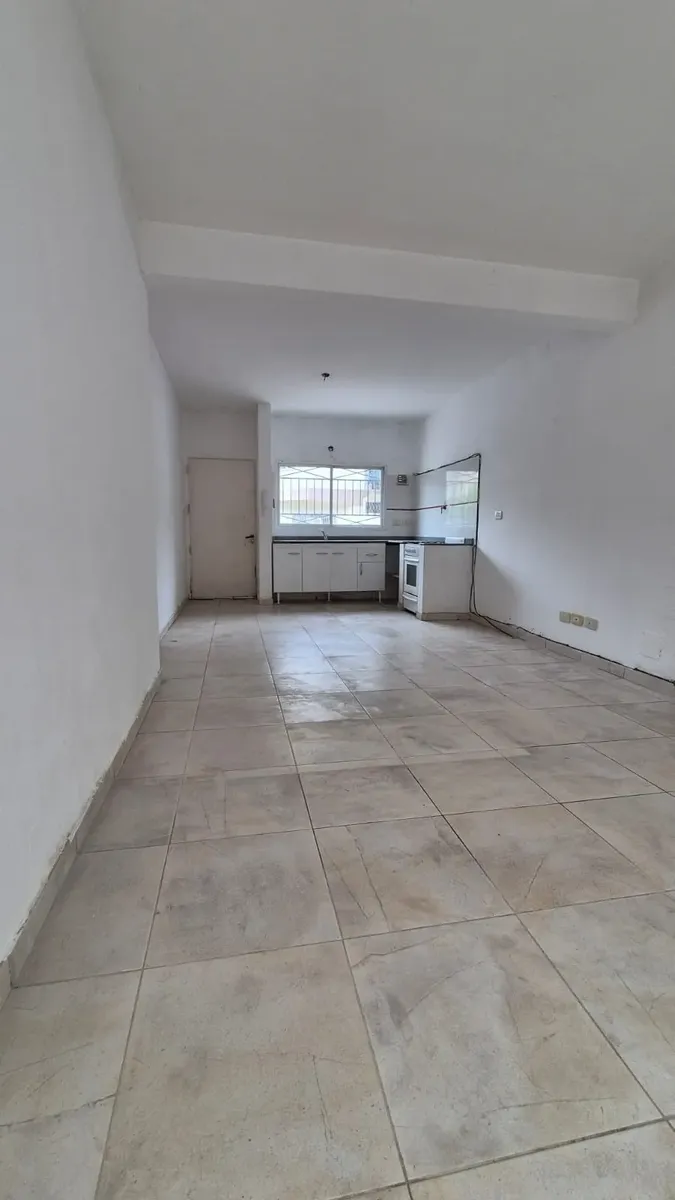 Kitnet tipo casa em Liniers, com 8,5 x 3,40 m e cozinha integrada. Conta com banheiro completo e entrada independente. Possui pátio de 4,20 x 2,80 m com tanque para lavar roupa e espaço para conectar máquina de lavar, com piscina de lavar roupas.