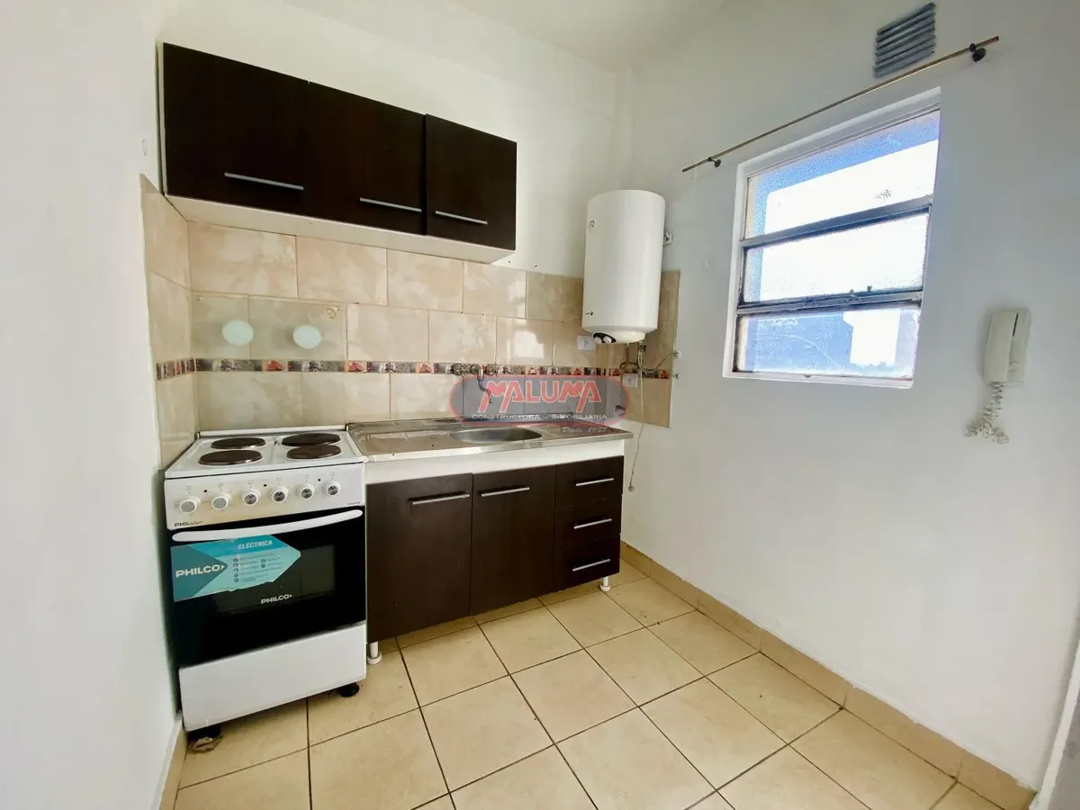 Kitnet de 44 m² em Liniers, em edifício com 4 unidades por andar. O ambiente principal mede 4x5 metros e inclui armário embutido e piso de cerâmica. Possui varanda em estilo terraço de 4x3,5 metros, com orientação oeste. Cozinha independente com móveis sob e sobre a bancada. Instalações elétricas e aquecimento de água por termotanque. Banheiro completo. Condomínio inclui Aysa; reajuste a cada 4 meses. Contrato de 2 anos, permitido ter animais de estimação. Exige pagamento de aluguel adiantado, d