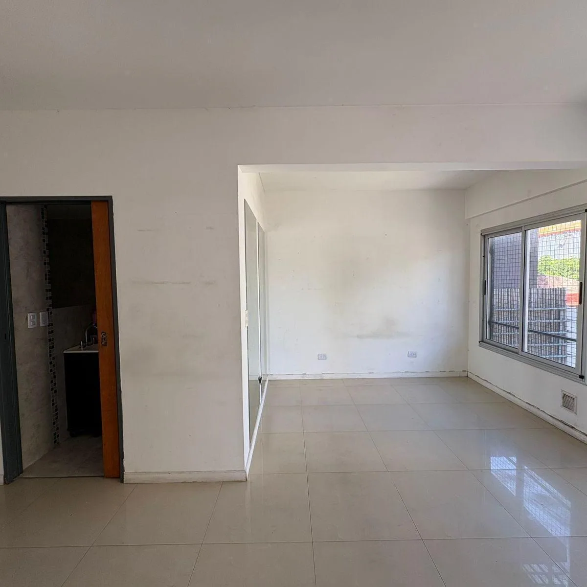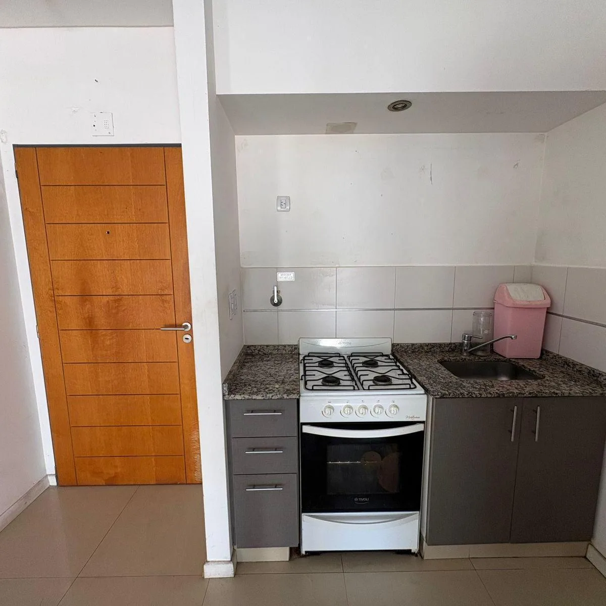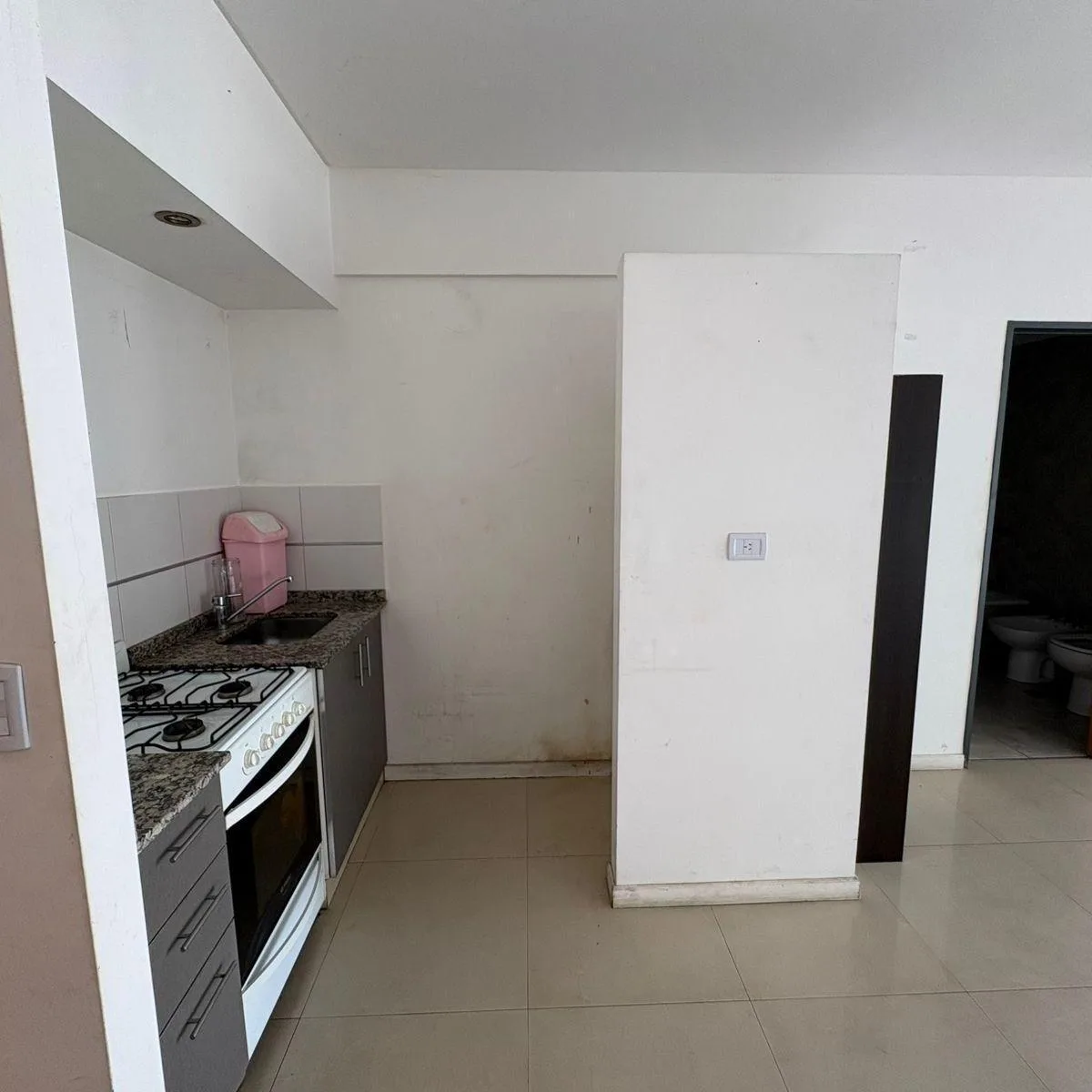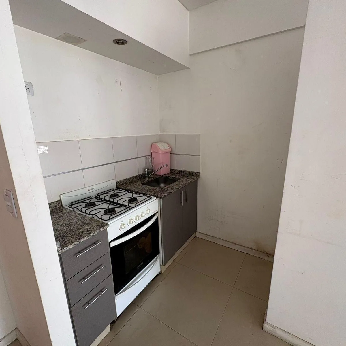 Kitnet de 1 ambiente em Liniers, no 1º andar de fundos (contrafrente). Área de 37,92 m² cobertos, com varanda de 3,62 m², totalizando 41,54 m². Cozinha integrada e banheiro completo com banheira. Orientação oeste e imóvel em bom estado, com 10 anos de antigüidade; apto para uso profissional.