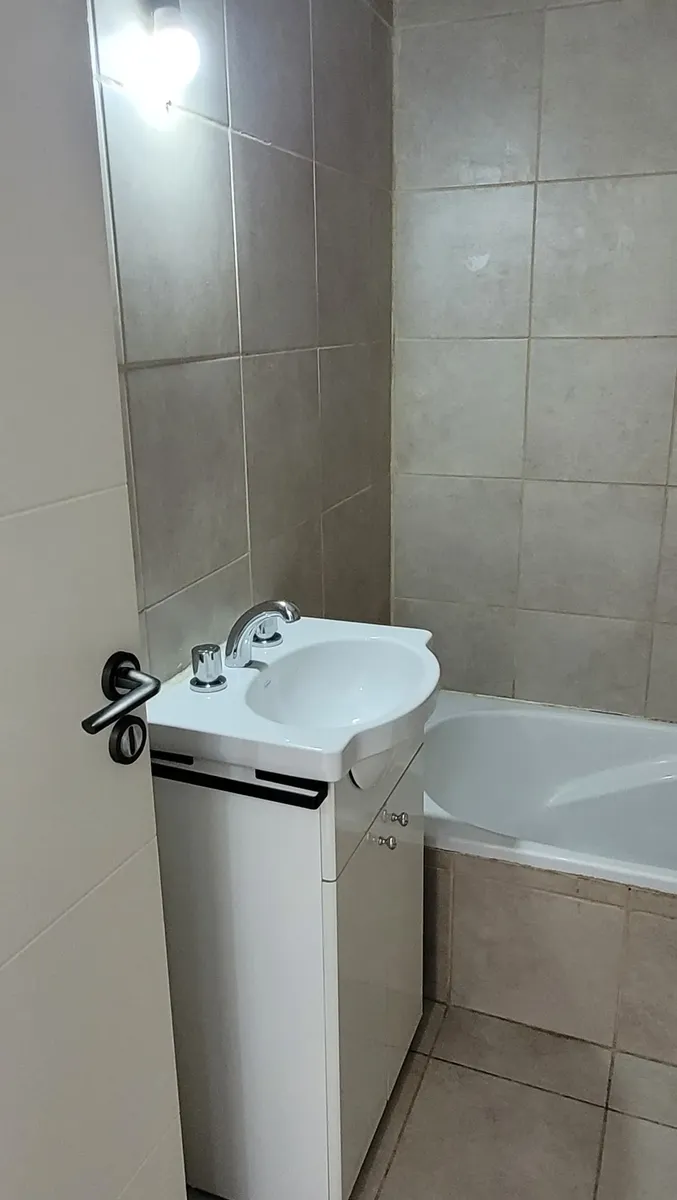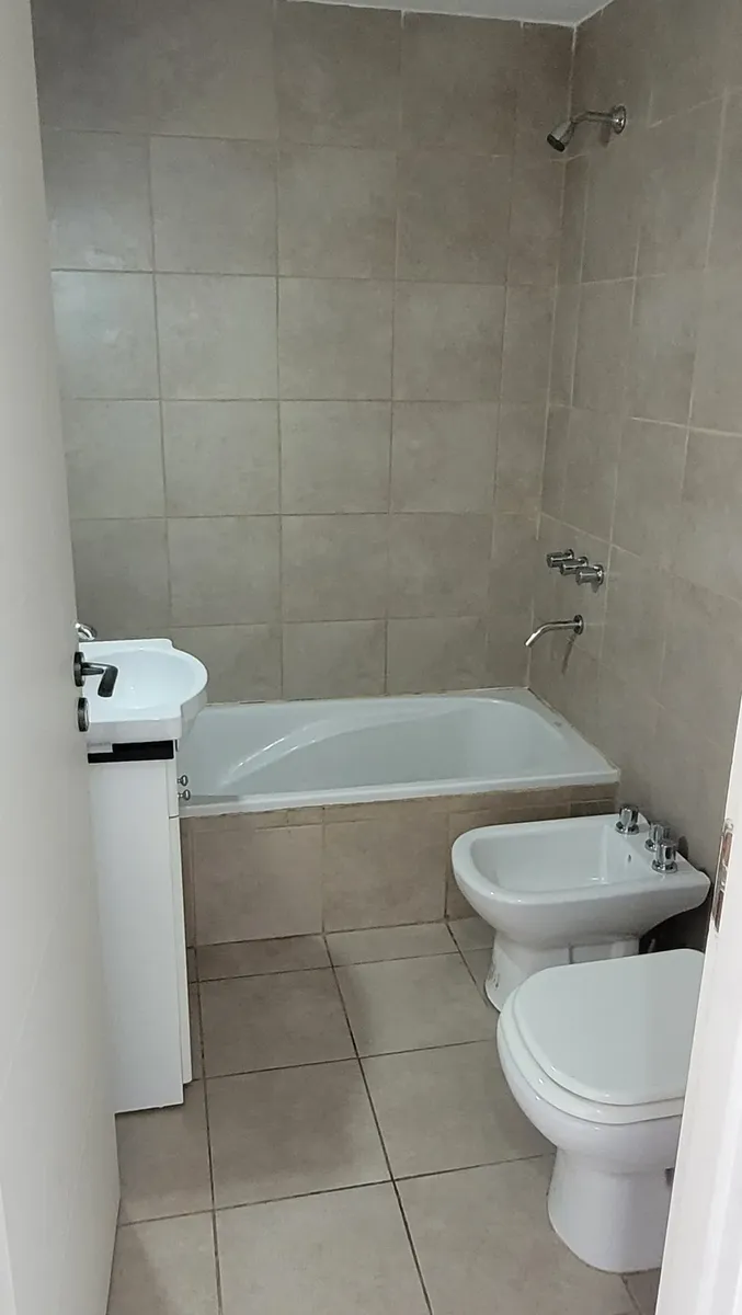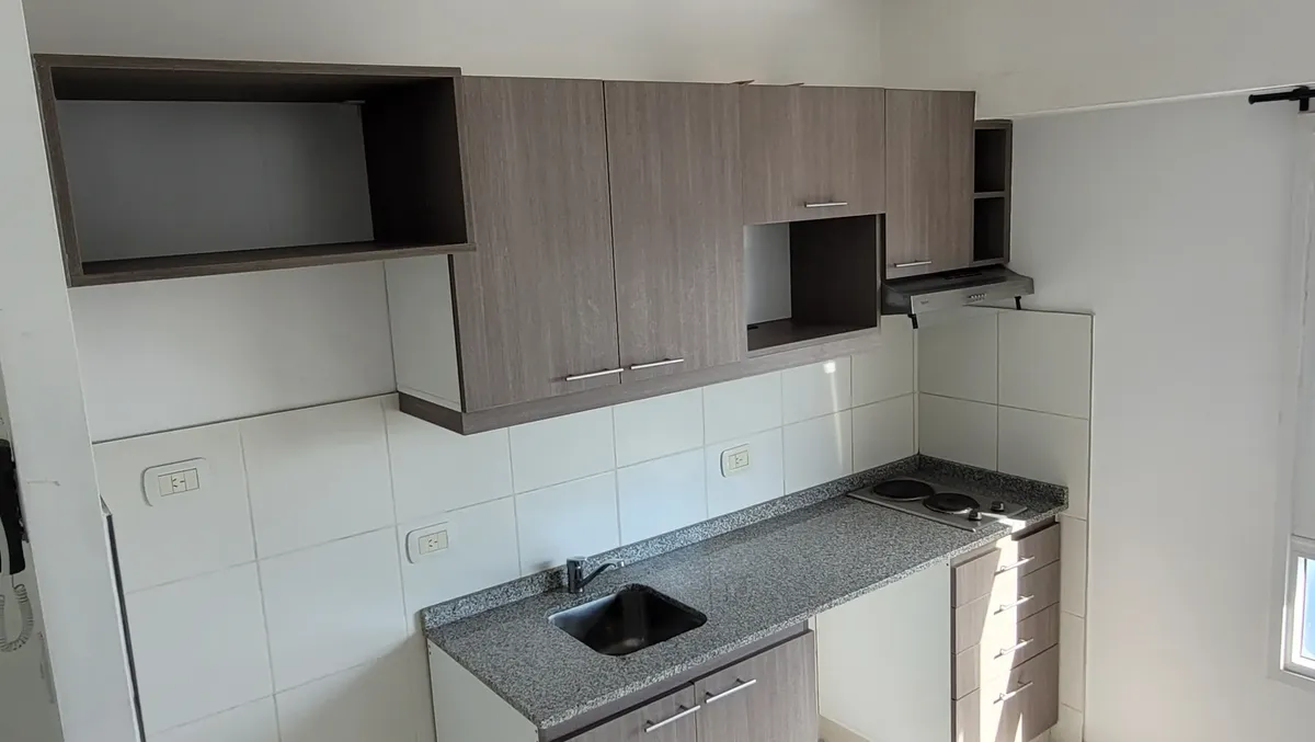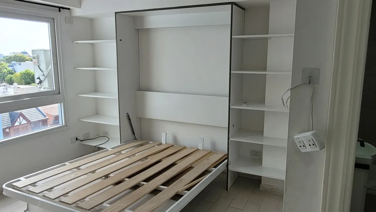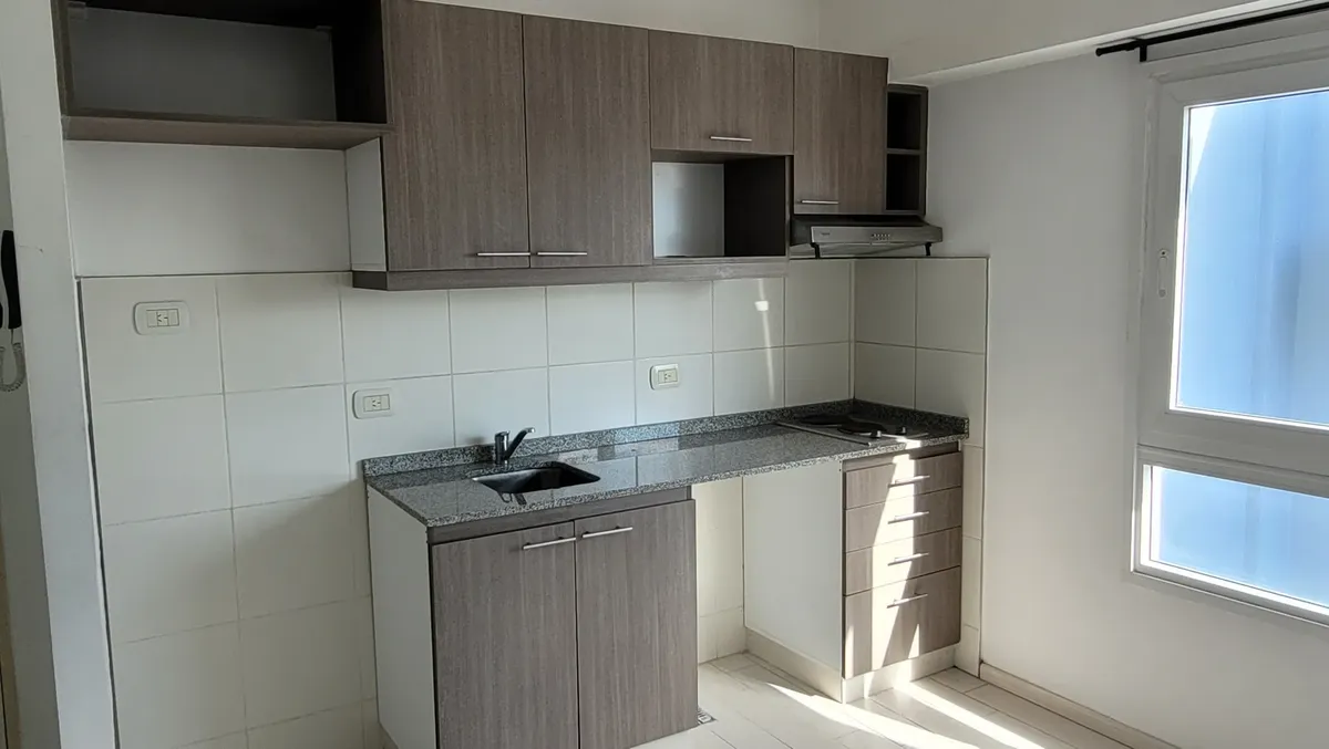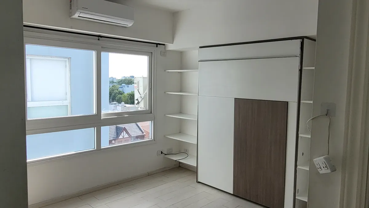 Kitnet de 3,00 x 3,90 m no 6º andar, de frente para o pátio (lateral). Possui cama rebatível, ar-condicionado frio e quente, cozinha com armários inferiores e superiores, fogão elétrico tipo anafe e conexão para lavadora. Banheiro completo com 2,10 x 1,50 m. O aluguel é de ARS 450.000 e o condomínio (expensas) de ARS 75.000, com água quente central e AYSA; por ora inclui AGIP (ABL) e eletricidade. Para entrar: ARS 400.000 de adiantamento e depósito de US$ 300. Atualização trimestral pelo IPC (IN