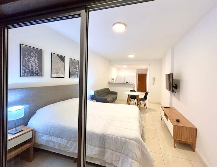 Kitnet em Liniers, unidade de um único ambiente. Cozinha equipada e varanda. Fica a poucos quarteirões do Estádio Vélez Sarsfield.