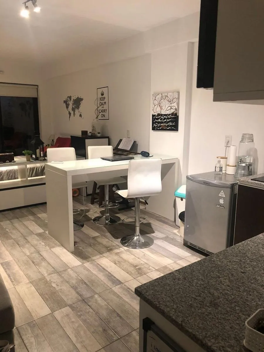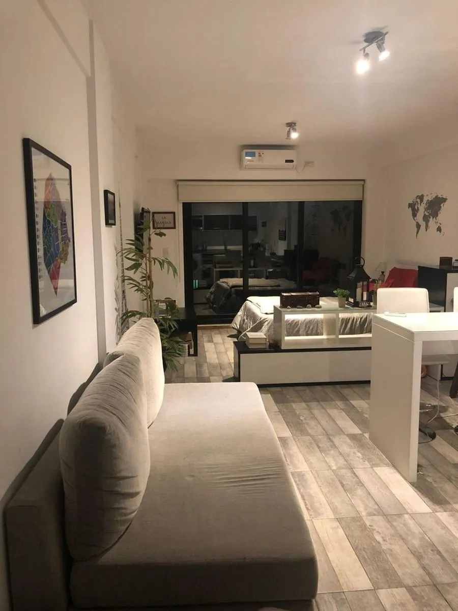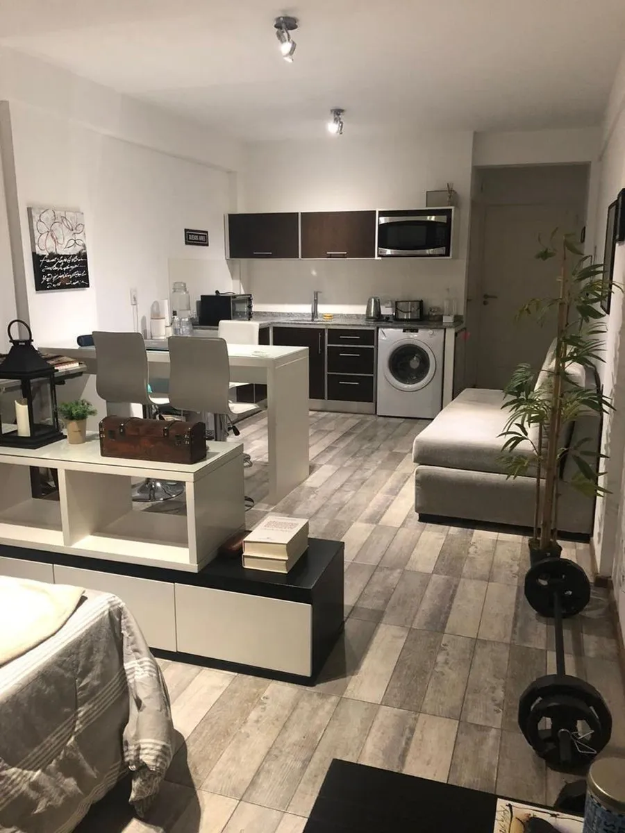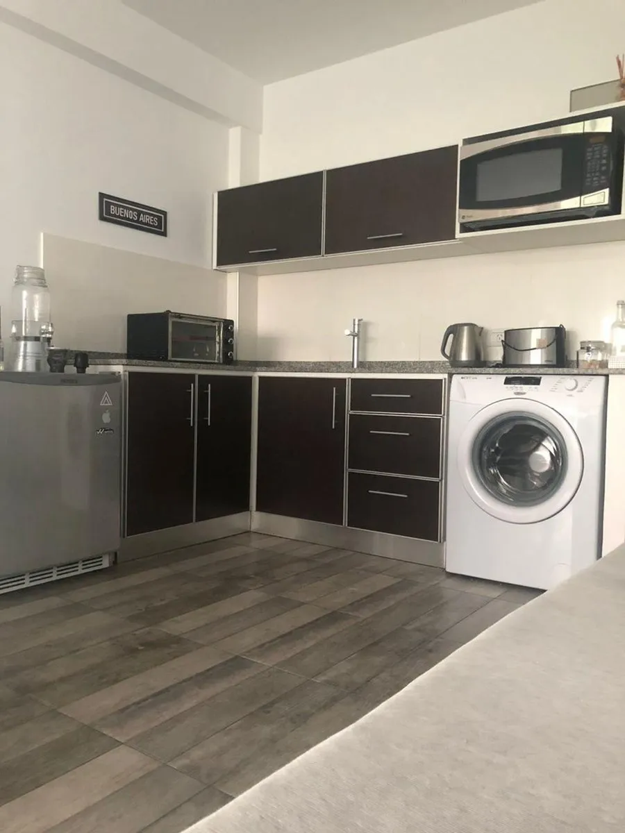 Kitnet mobiliada com 36 m² em San Telmo, voltada para a rua. Conta com varanda-terraço, cozinha integrada e lavadora (lavarropas). O prédio tem elevador, aquecimento central (caldeira central) e ar-condicionado frio/calor. O condomínio é de $190.000. Contrato de 1 ano renovável, ajuste trimestral pelo índice IPC CABA (contrato em pesos), exigência de garantia (fiança de aluguel), 1 mês adiantado e 1 mês de depósito. Não aceita animais.