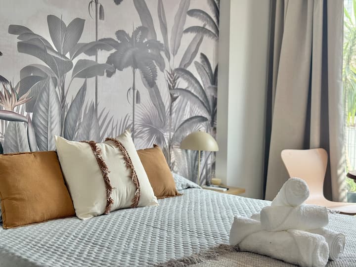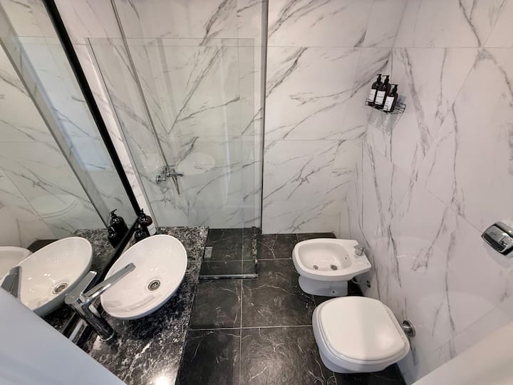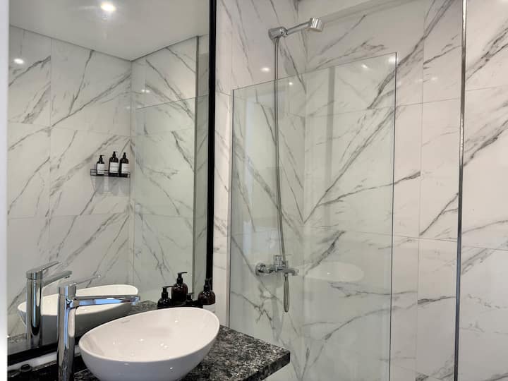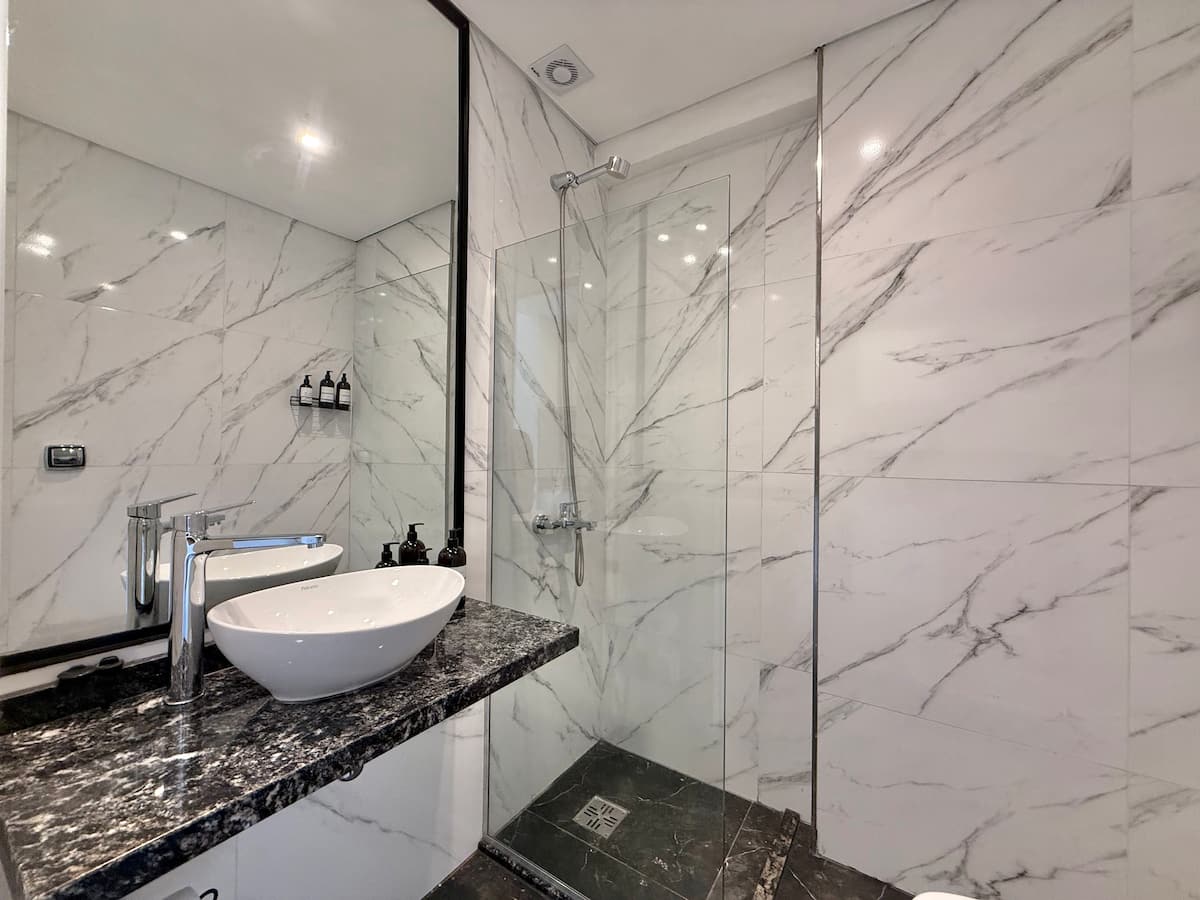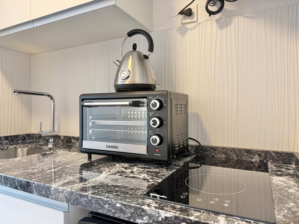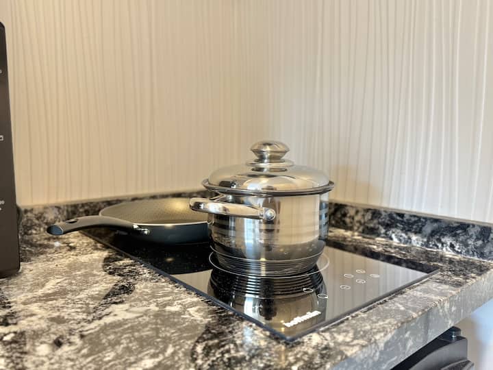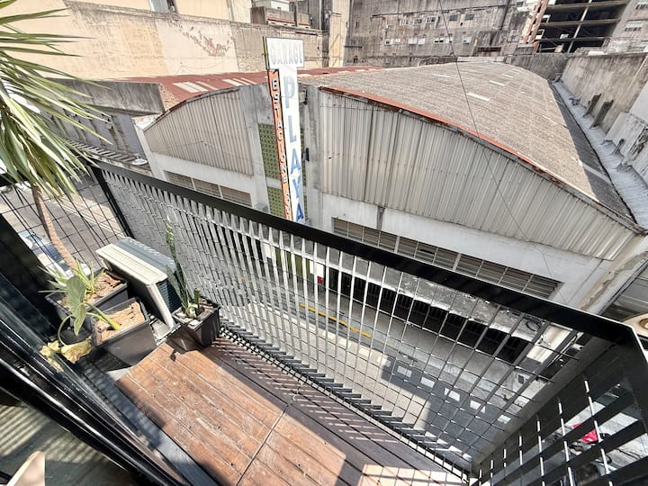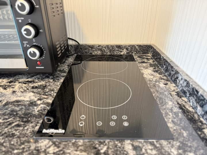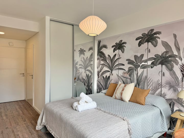 Studio novo, mobiliado e equipado, com ar-condicionado, cama de casal, Smart TV e cozinha integrada com fogão elétrico e utensílios. O apartamento tem cozinha e balcão voltados para a frente, com iluminação natural e vista urbana. O acesso é com check-in autônomo; a chave fica em um lockbox na porta do apartamento e as instruções são enviadas pela plataforma. Em caso de perda de chaves ou se ficarem dentro do apartamento, há cobrança adicional de USD 50 por assistência fora do horário.