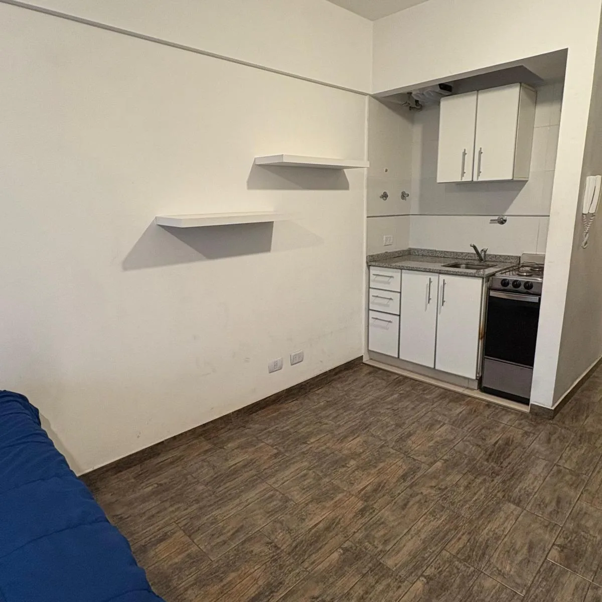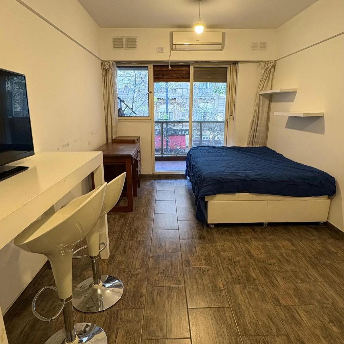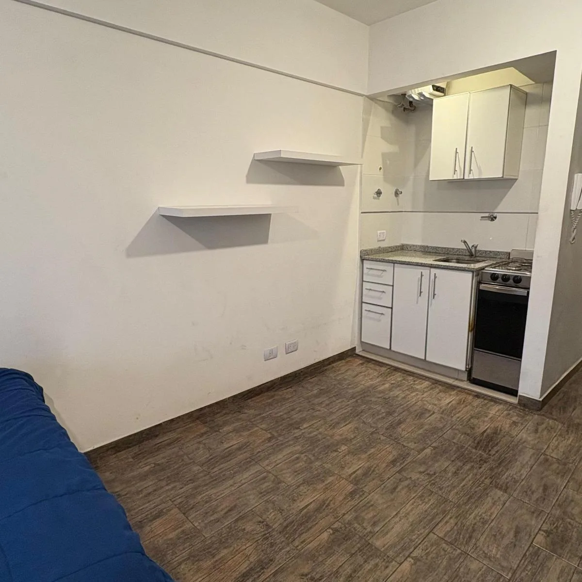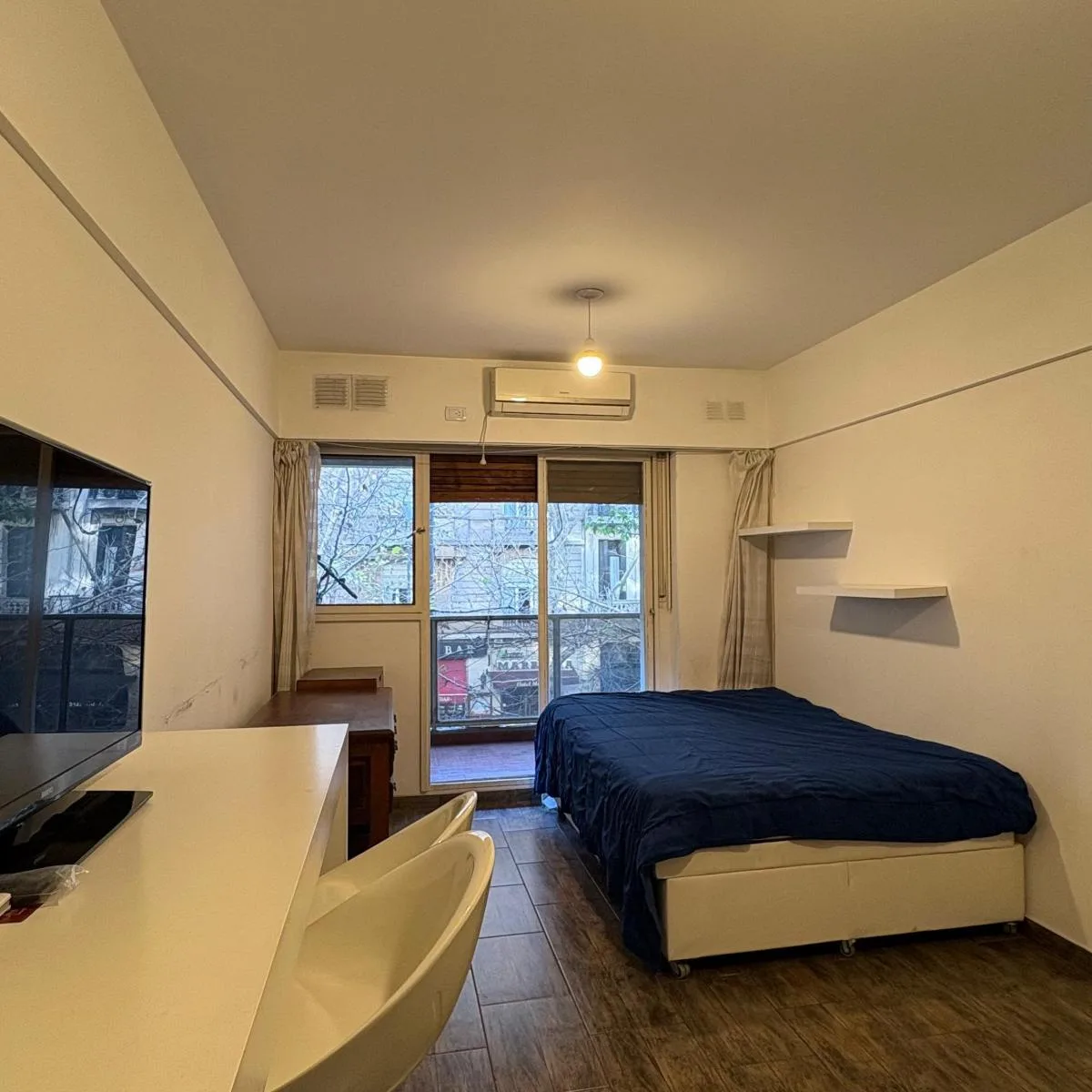 Studio reformado em Microcentro/Monserrat, entre Salta e Santiago del Estero, com frente para a rua e varanda. Cozinha integrada e banheiro completo, ambos feitos a novo; piso cerâmico imitando madeira. Inclui forno a gás e aquecedor de água elétrico (termoacumulador). O imóvel tem acesso pelo edifício via Avenida de Mayo e Avenida Hipólito Yrigoyen, sem amenities.