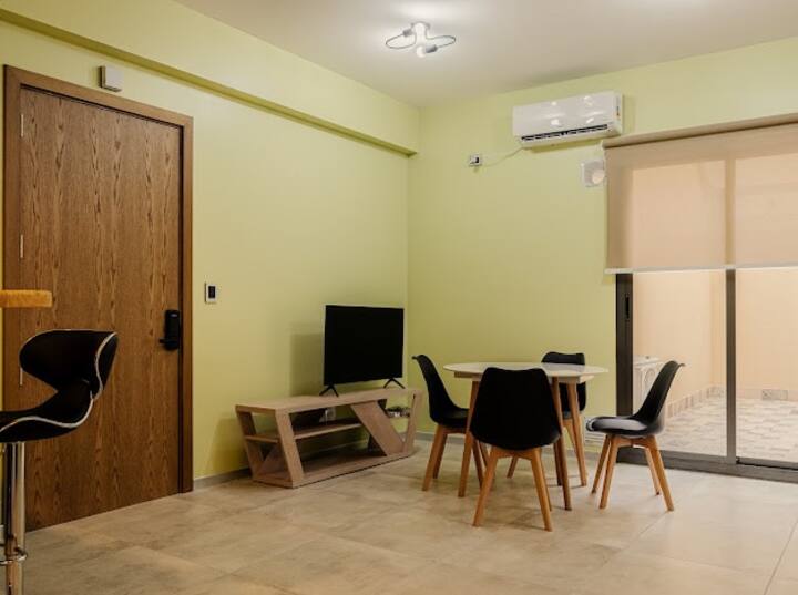 Kitnet em Monserrat, Buenos Aires, em um edifício moderno com acesso por sistema de auto check-in. A entrada é feita com código de segurança, sem chaves convencionais.