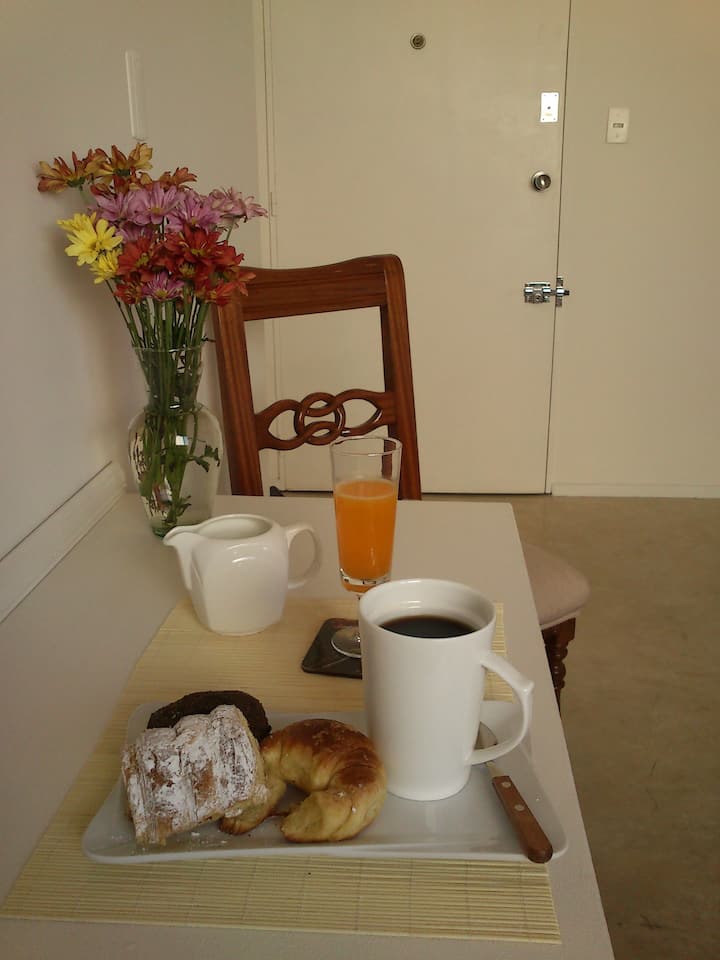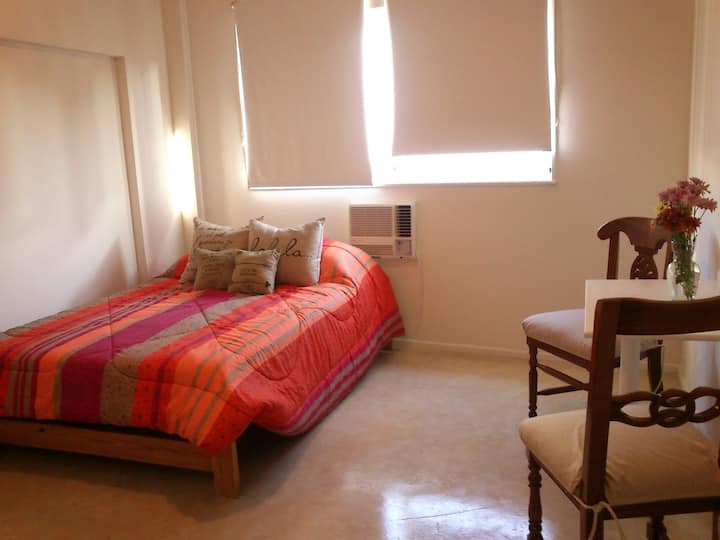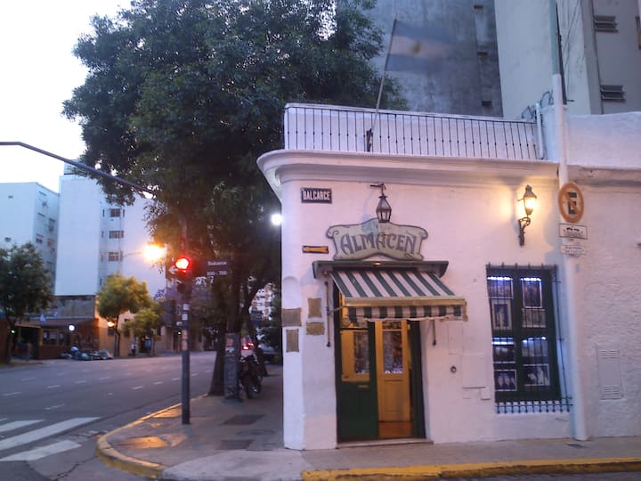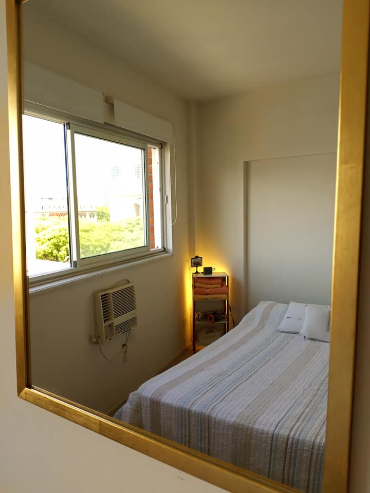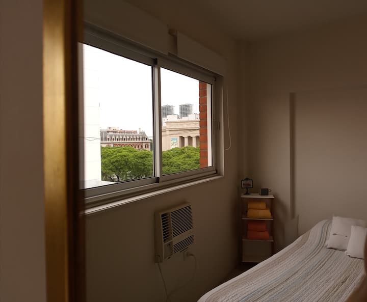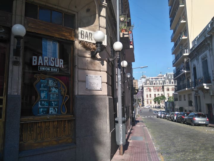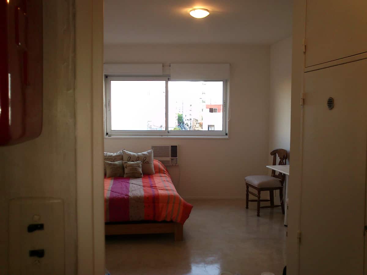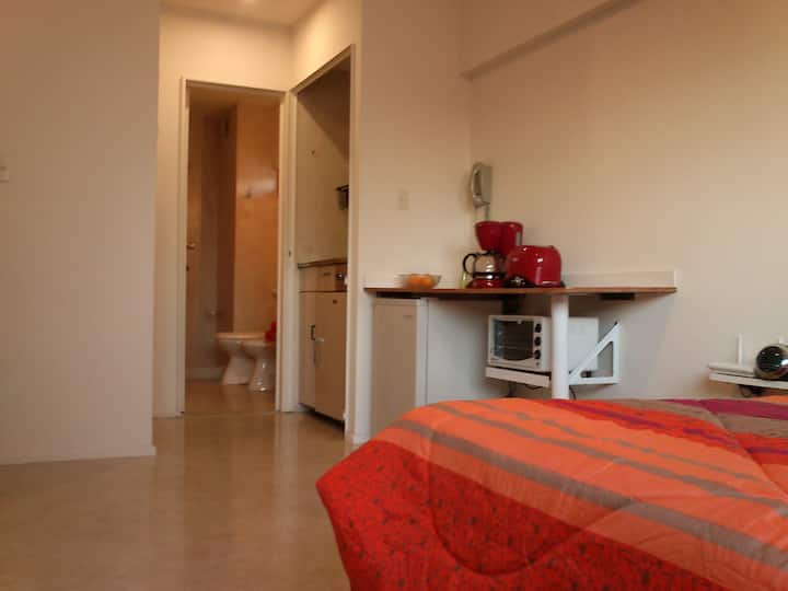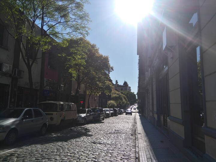 Apartamento em Monserrat no 6º andar, com boa iluminação e vista para a Avenida Independencia. A acomodação comporta até 2 pessoas. Inclui utensílios e itens de casa para duas pessoas, frigobar, ar-condicionado (frio e quente), telefone para chamadas locais e internet com Wi-Fi. Fornece toalhas e roupa de cama.