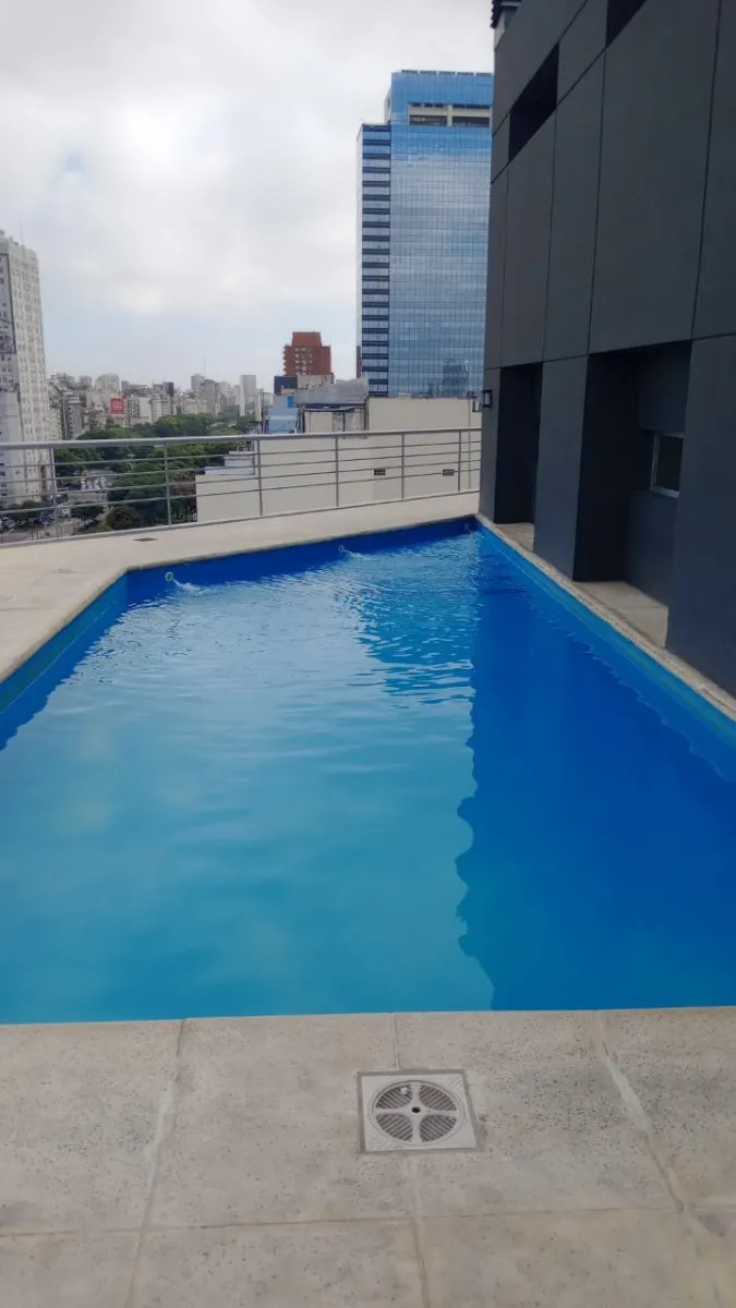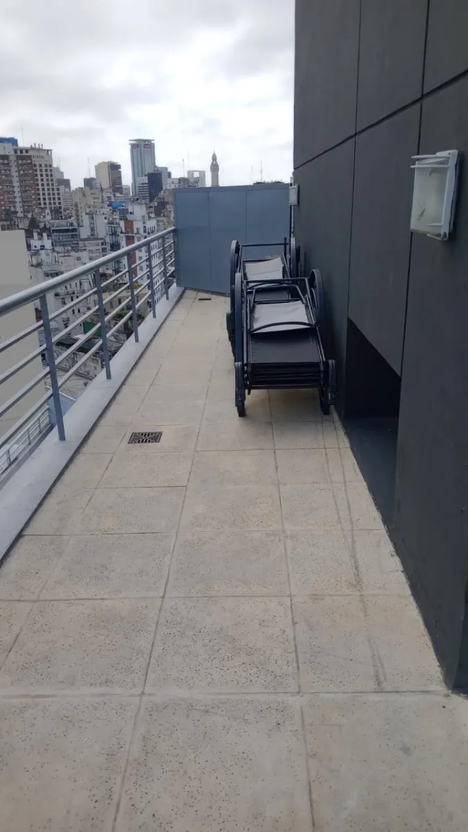 Kitnet (1 ambiente) com 6 m x 4,2 m, na 10ª andar, de frente para a rua, no edifício de cerca de 12 anos na Av. B. Irigoyen 630, em Monserrat. Tem varanda, ar-condicionado York, cozinha integrada (3,2 m x 1,75 m) com anafe e forno elétrico e banheiro com banheira (3,2 m x 1,75 m). Água quente central e elevador, além de amenities com piscina, solarium, academia, área de churrasco e lavanderia. Aluguel: ARS 600.000; contrato de 2 anos com reajuste trimestral pelo ICL (índice do BCRA). Requerem 1