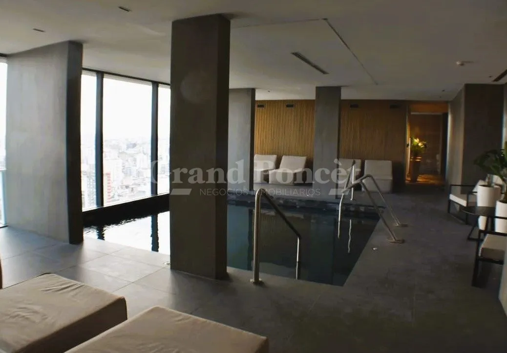 Kitnet de 1 ambiente com varanda no Quartier del Bajo, em Monserrat. Fica no 2º andar de uma das torres voltadas para sudeste. Cozinha integrada, varanda com vista aberta e banheiro com box. O pé-direito é de 2,60 m.