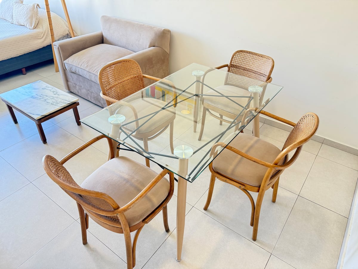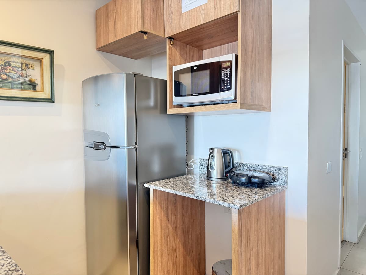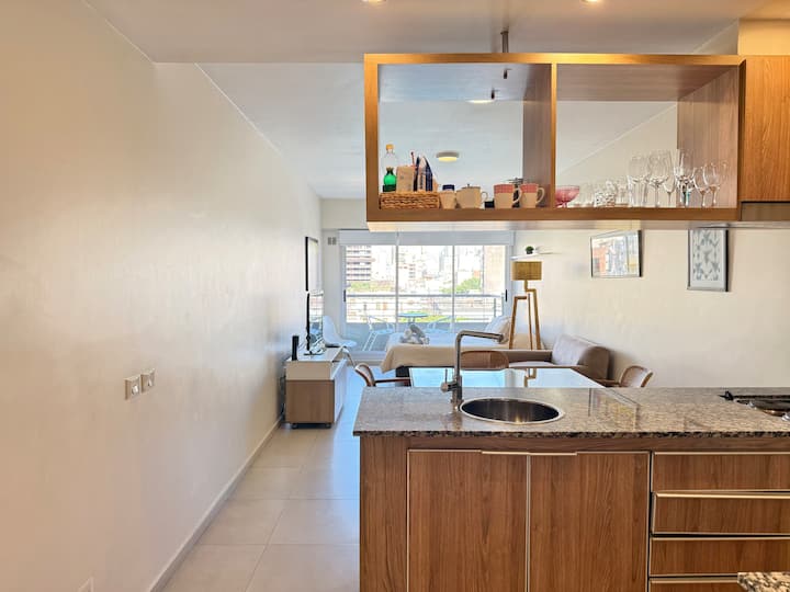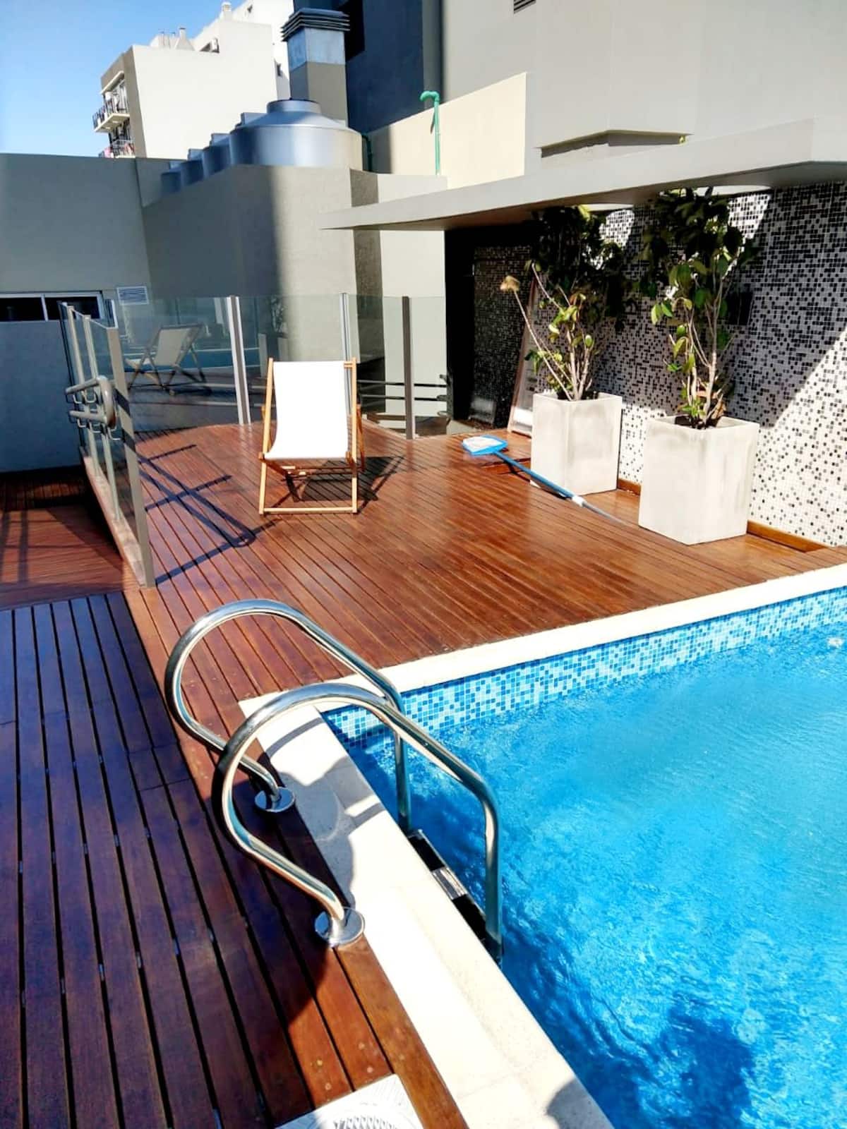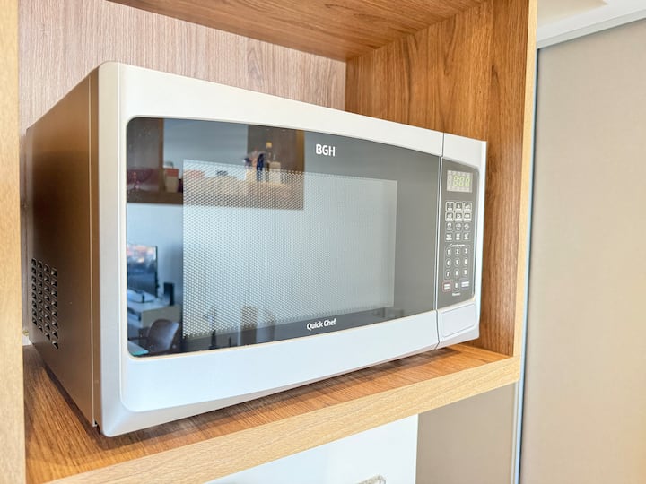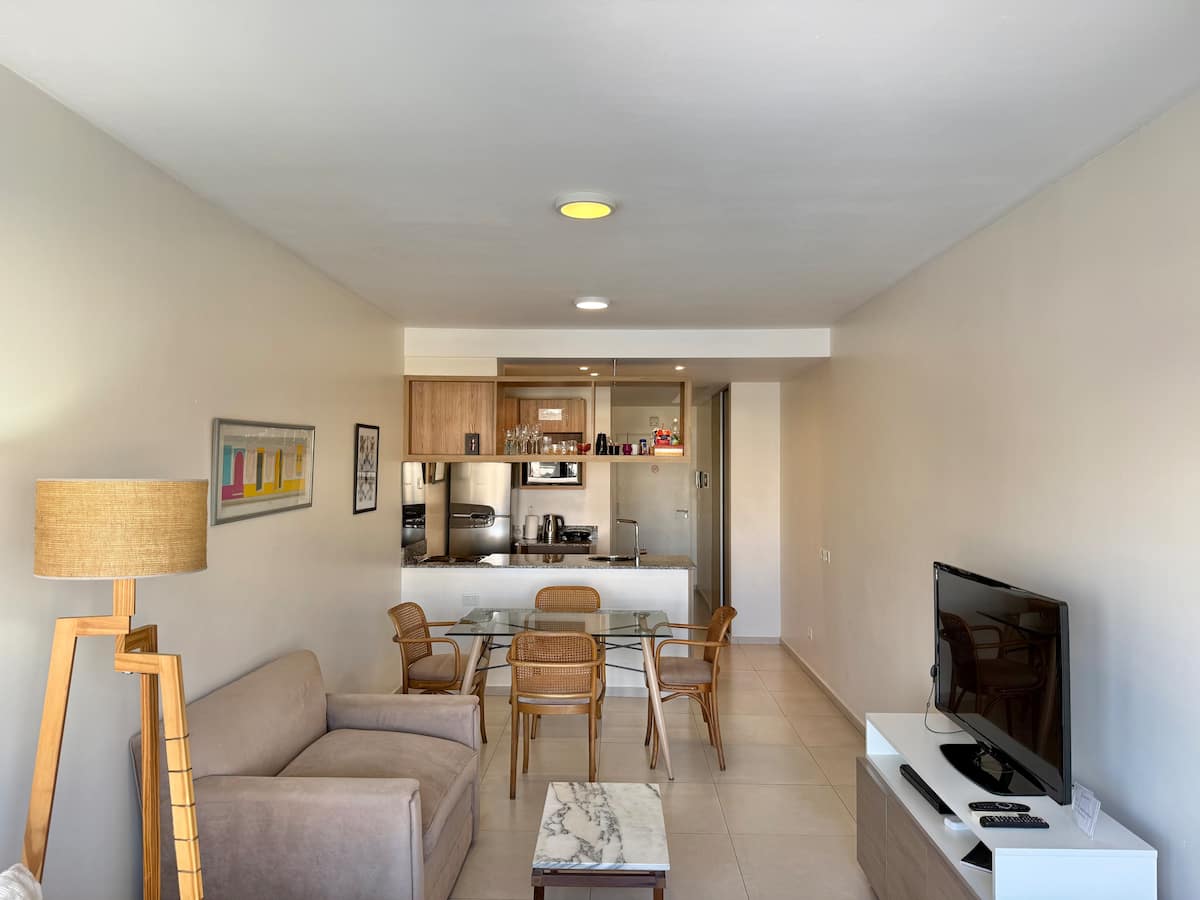 Kitnet em Monserrat, novo (nunca habitado) e totalmente equipado, com 2 portas de acesso com sistema de segurança magnético em ambas. O edifício tem piscina com deck e solarium, e oferece vista a partir do último andar. Há varanda com vista aberta do bairro. A kitchenette é equipada para preparo de refeições, com utensílios e itens de cozinha. O imóvel fica a 3 blocos da estação de metrô da Linha C e a 6 blocos de San Telmo.