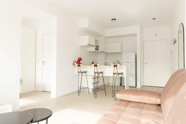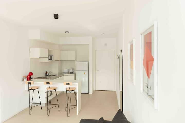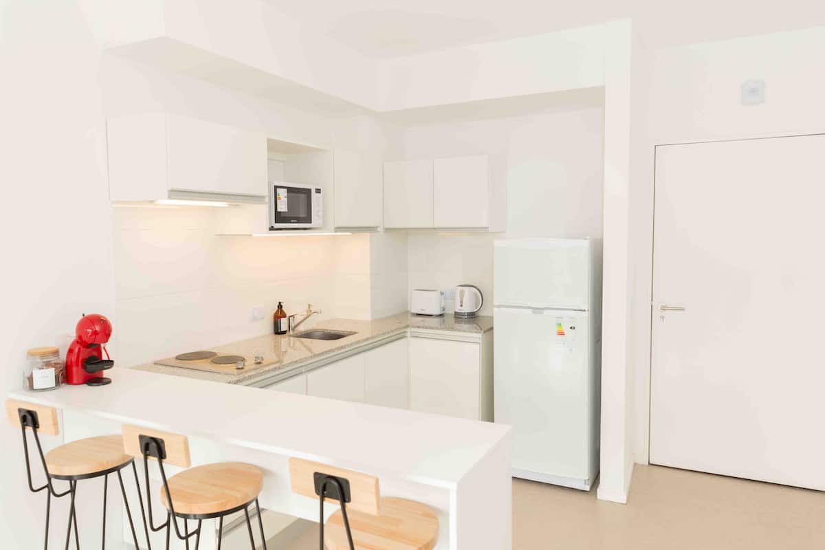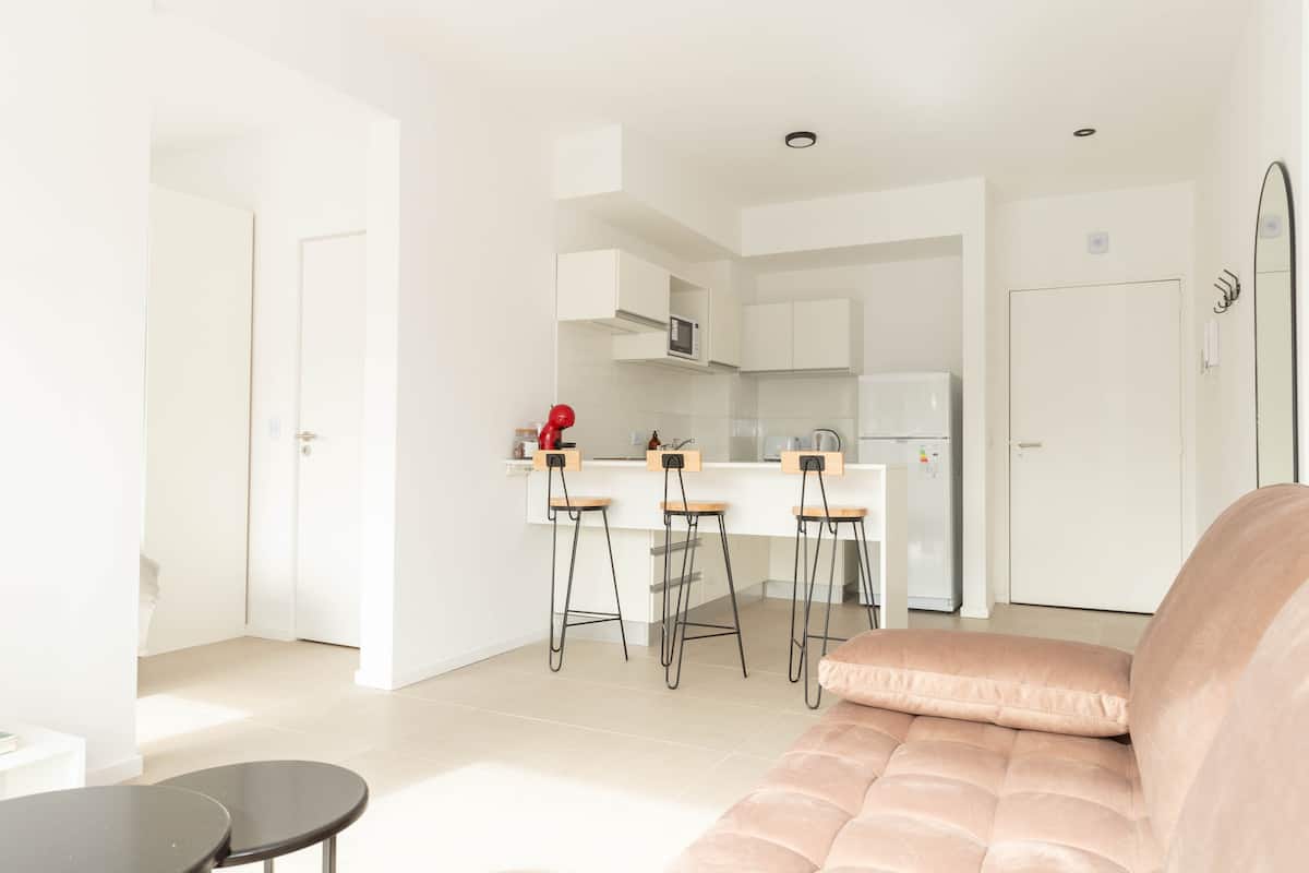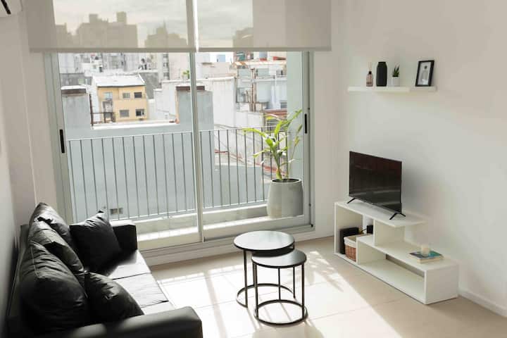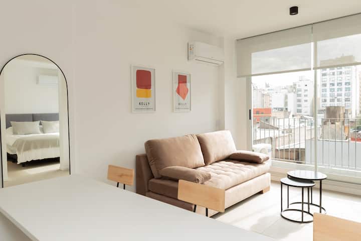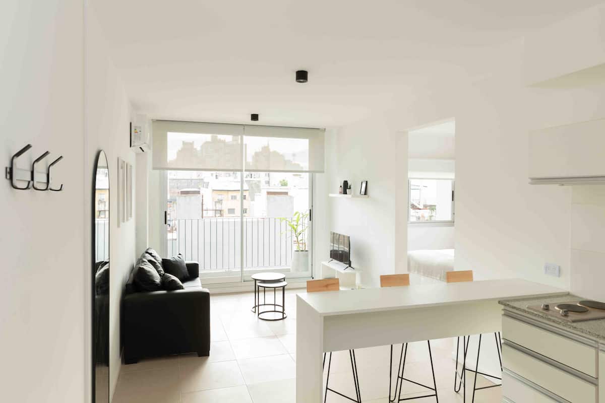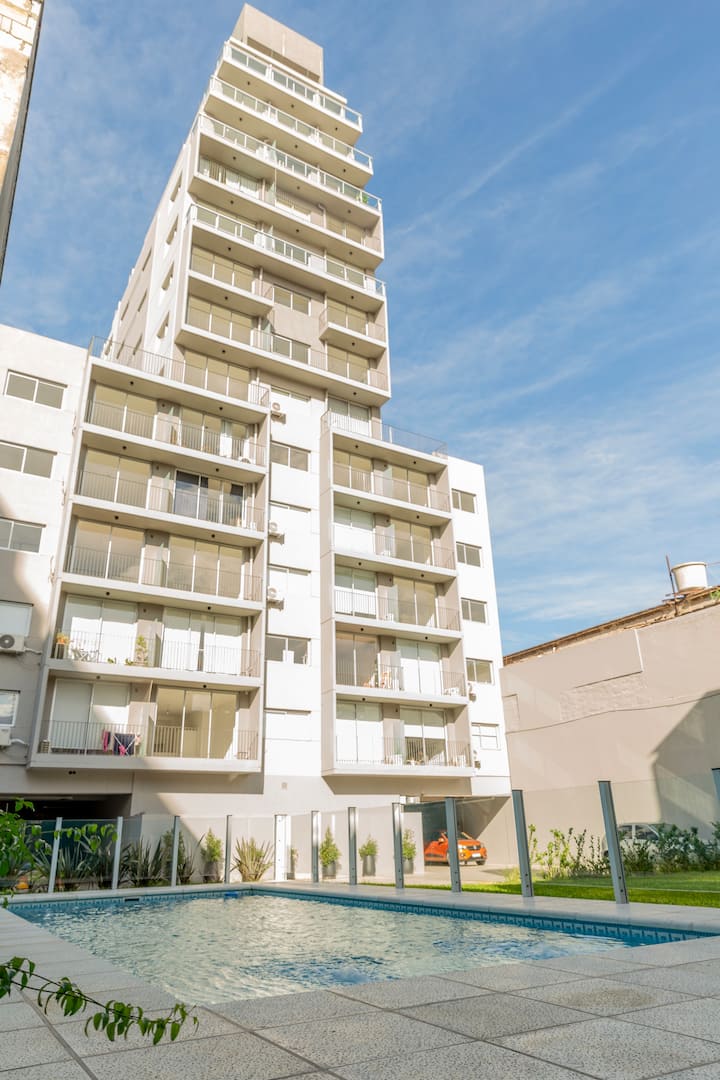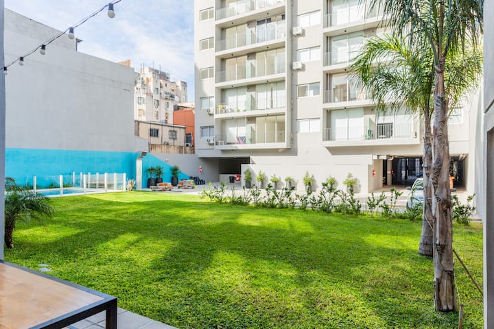 Kitnet mobiliada no 4º andar, em prédio moderno com elevador, em Monserrat. O apartamento conta com cozinha equipada, Wi‑Fi e TV de alta definição. O prédio tem piscina com solário e serviços, além de garagem para aluguel. O acesso inclui entrada principal com rampa para cadeirantes e elevador para todos os andares. Fica a 3 quarteirões da estação Independencia (Linha C) e o check-in segue o horário informado, sem equipe 24 horas no local.