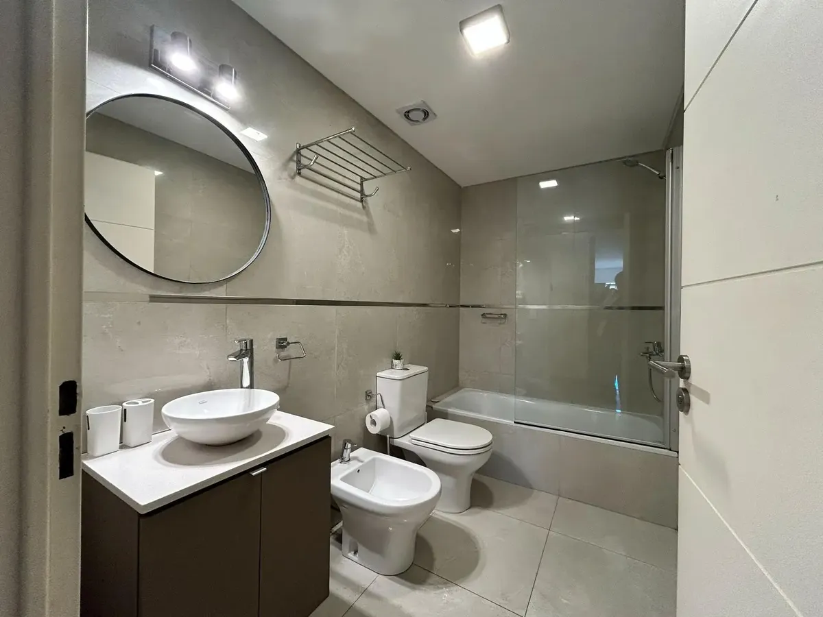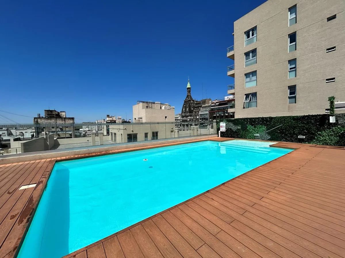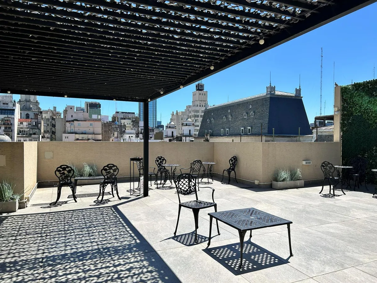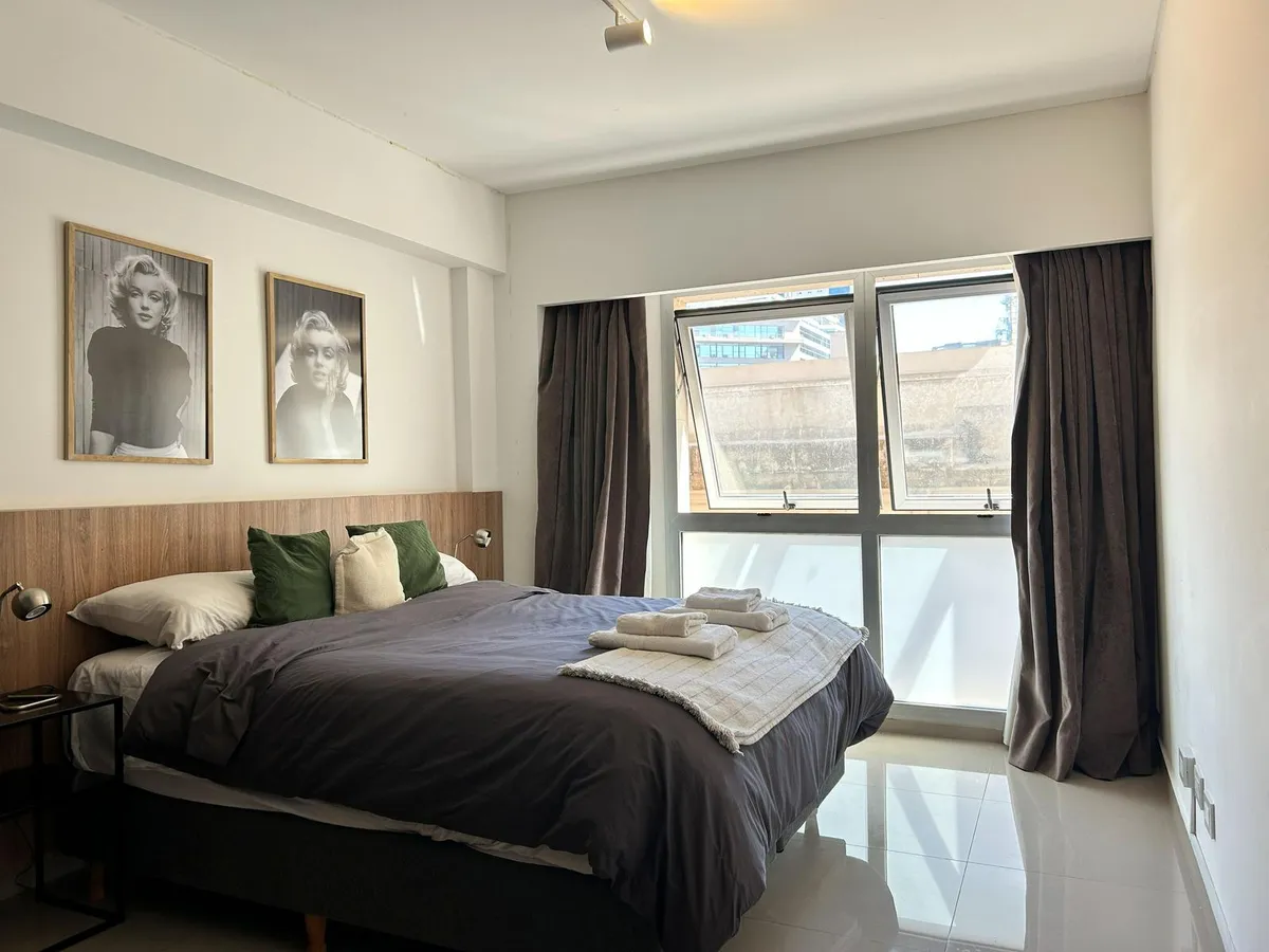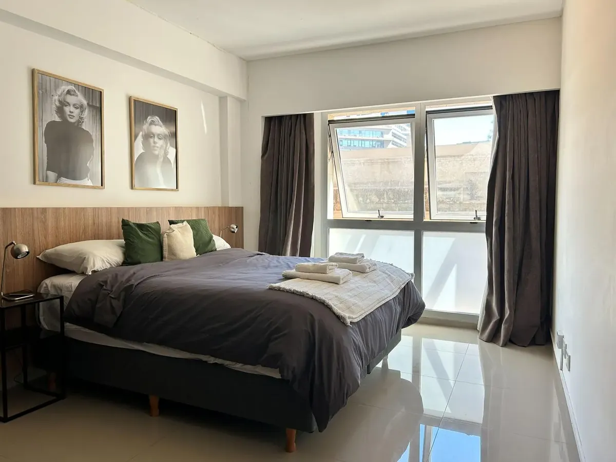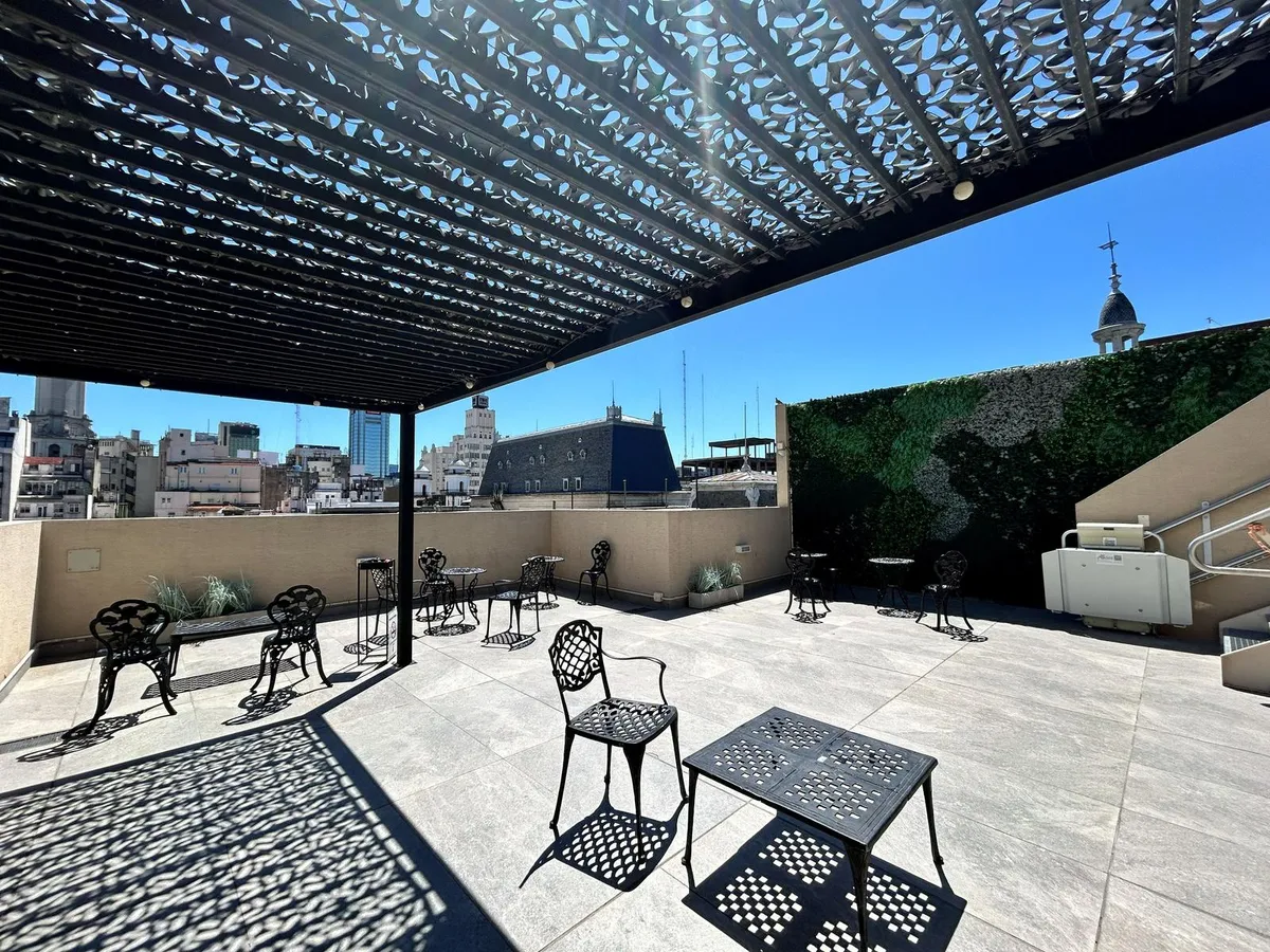 Kitnet de 47 m², mobiliada, no 5º andar no Paseo de la Cisterna, Calle Moreno 550, Monserrat, Buenos Aires. A unidade é entregue pronta para uso, com cozinha equipada e banheiro completo. O Paseo de la Cisterna é um projeto urbanístico ligado a um sítio arqueológico aberto ao público; durante as obras foi descoberta uma cisterna do fim do século XIX.