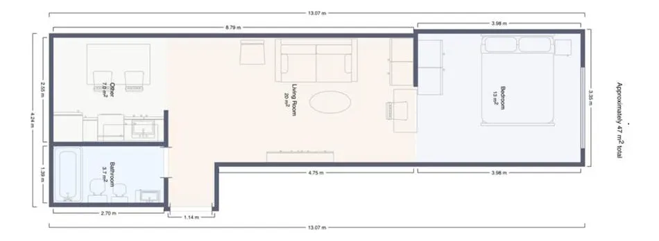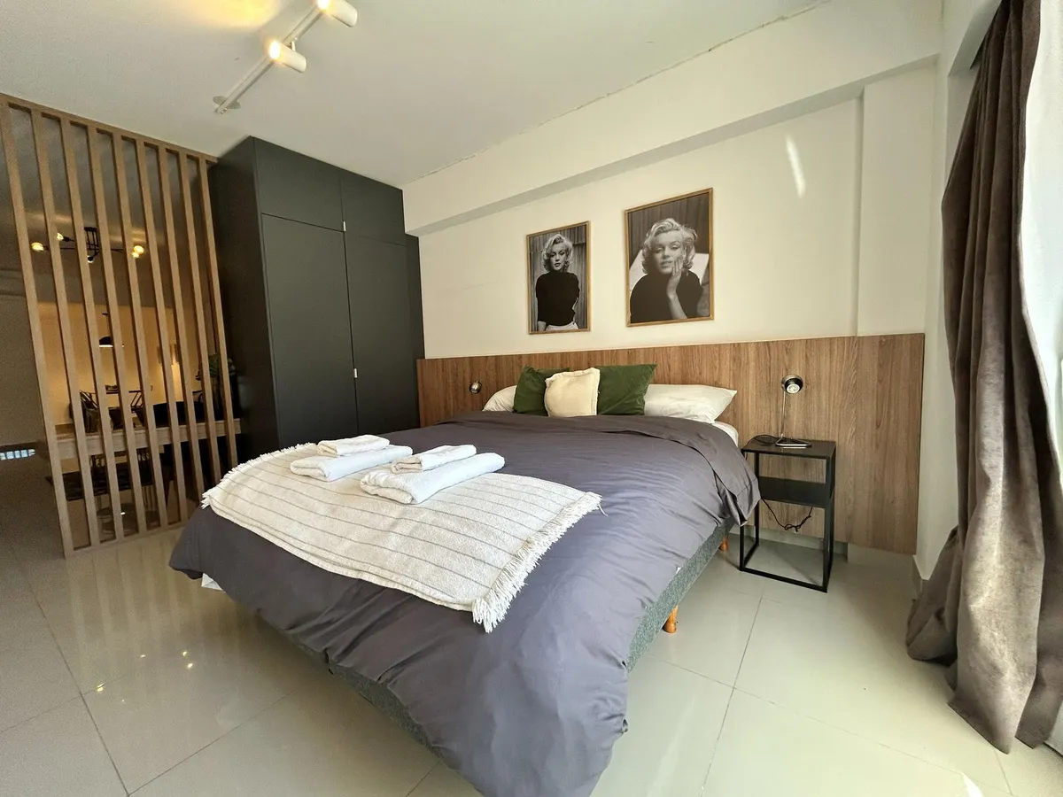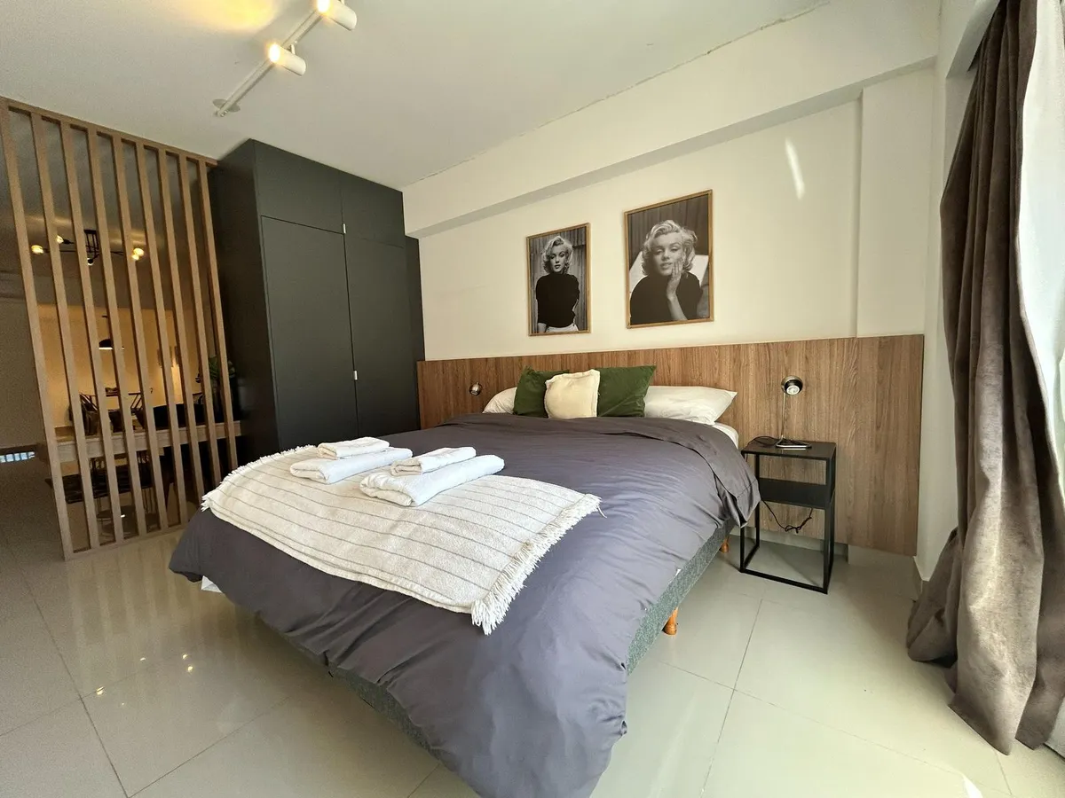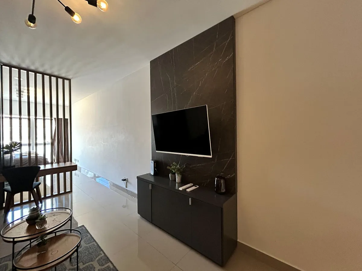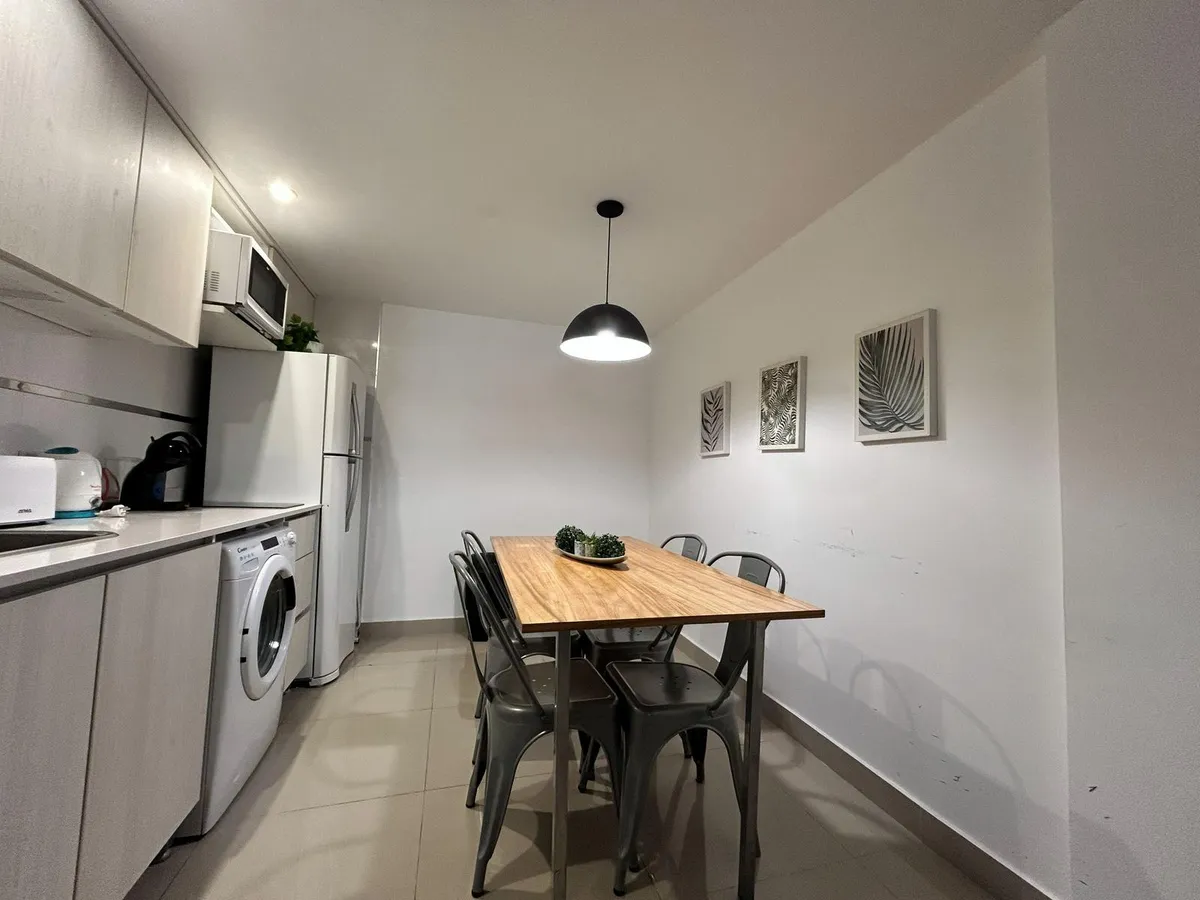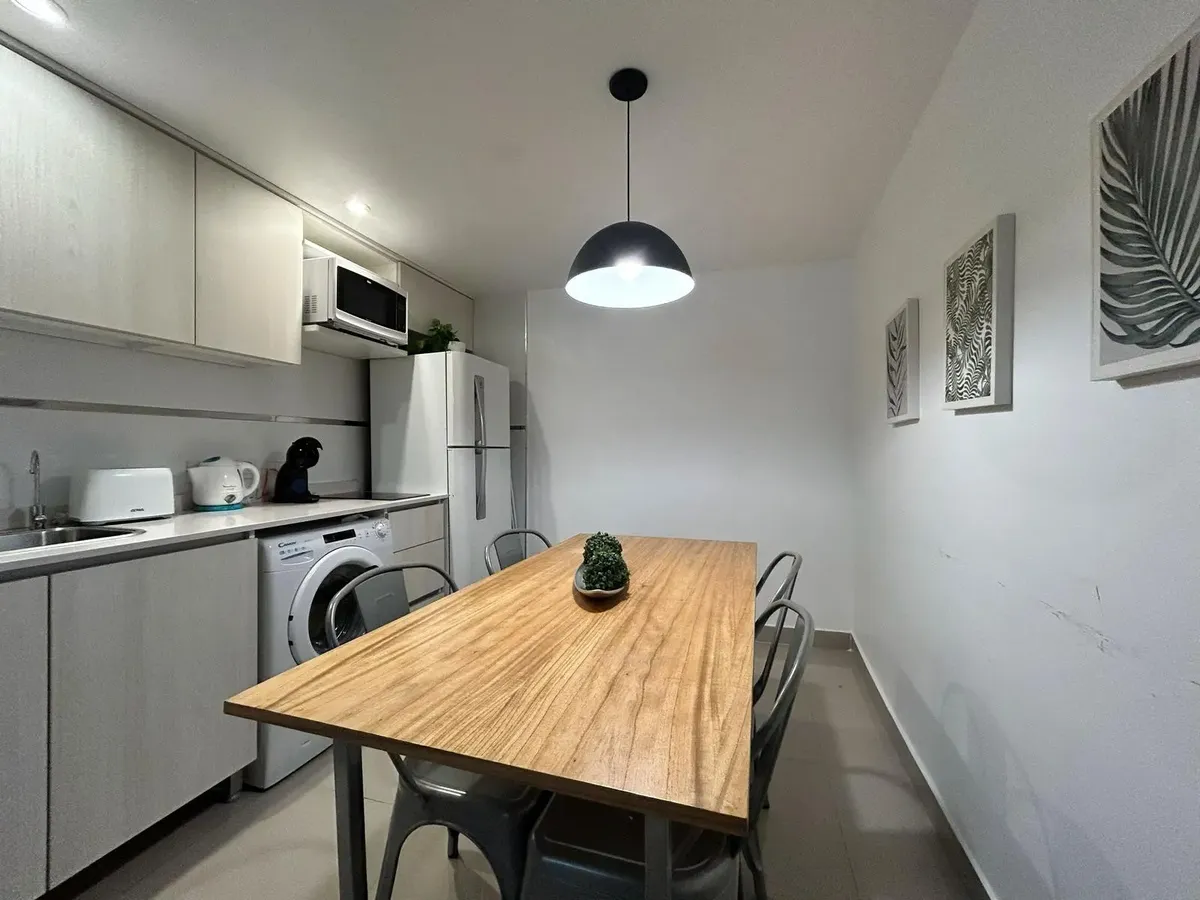 Kitnet de 47 m², mobiliada, no 5º andar no Paseo de la Cisterna, Calle Moreno 550, Monserrat, Buenos Aires. A unidade é entregue pronta para uso, com cozinha equipada e banheiro completo. O Paseo de la Cisterna é um projeto urbanístico ligado a um sítio arqueológico aberto ao público; durante as obras foi descoberta uma cisterna do fim do século XIX.