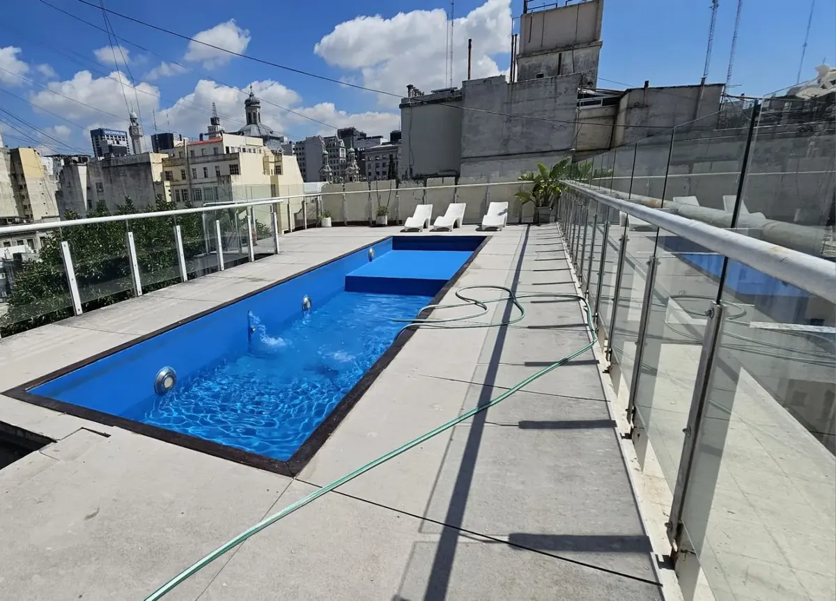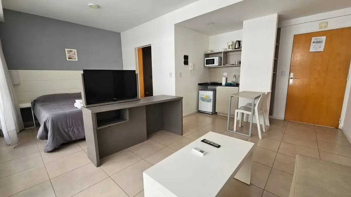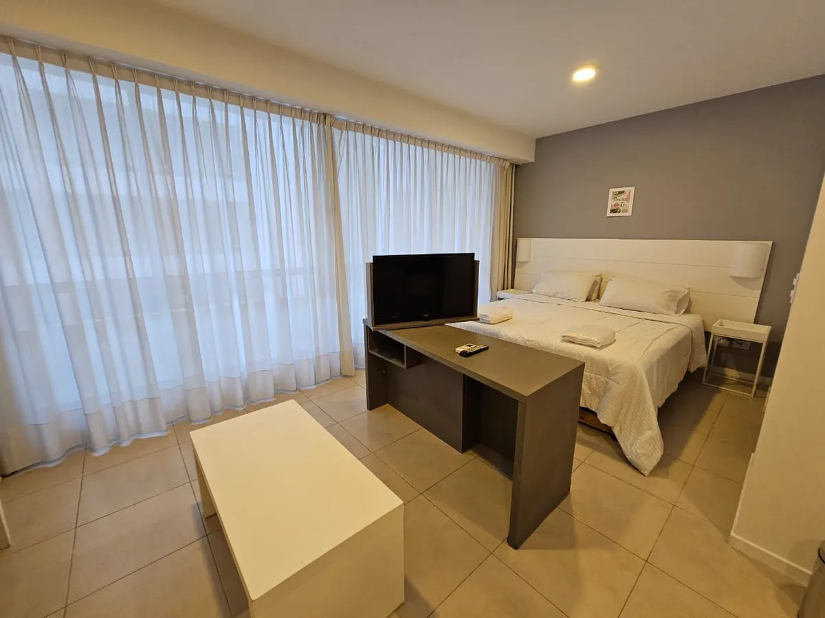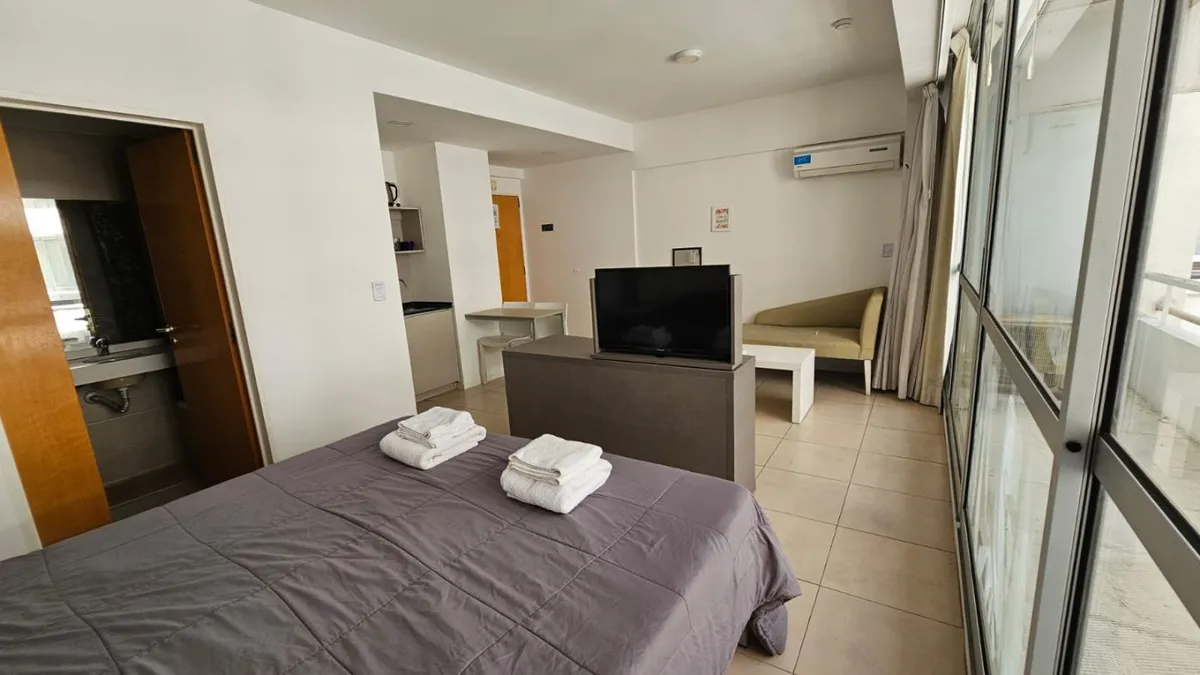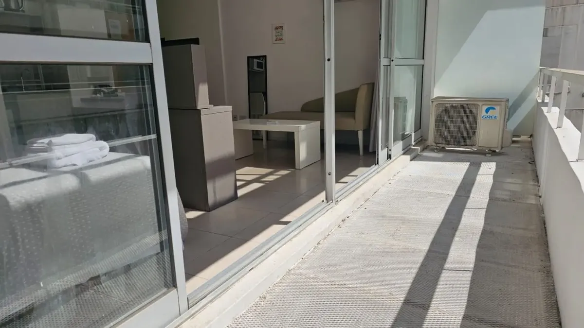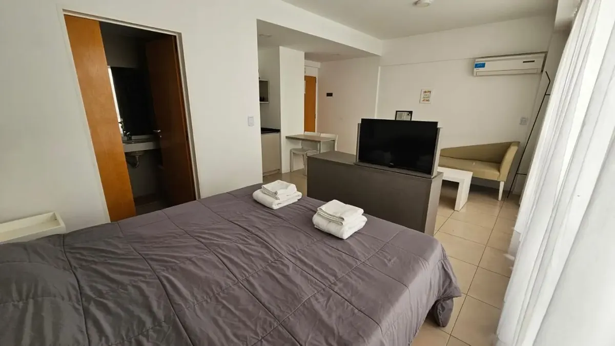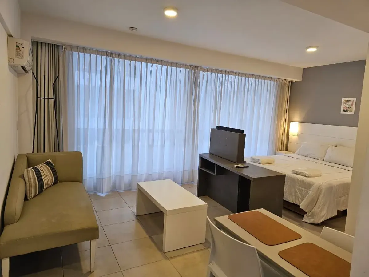 Kitnet mobiliada com 36 m² totais, com varanda ampla, em San Telmo. A unidade tem cozinha integrada com móveis de armazenamento, banheiro completo com banheira e ar-condicionado frio-calor. O apartamento é entregue com cama, mesa, cadeiras, TV, geladeira, micro-ondas e cafeteira. O aluguel é de ARS 600.000 por mês, mais despesas, com mês de adiantamento e depósito; disponível a partir de 30 de abril de 2026.