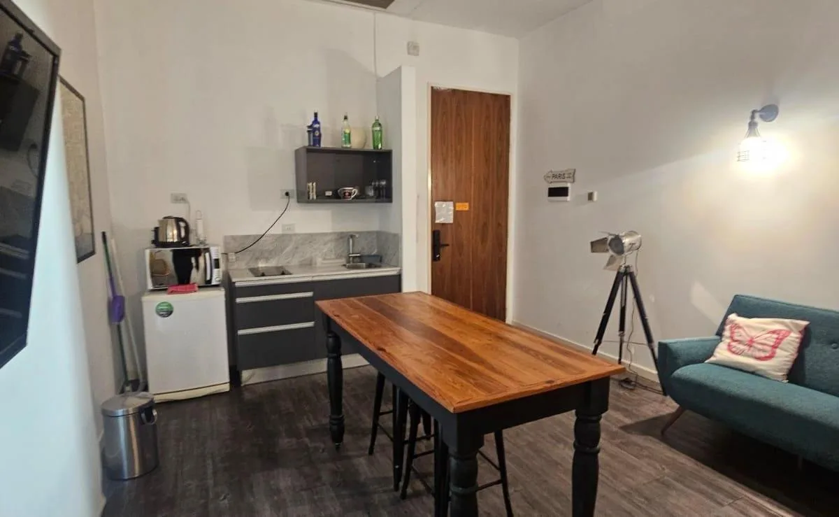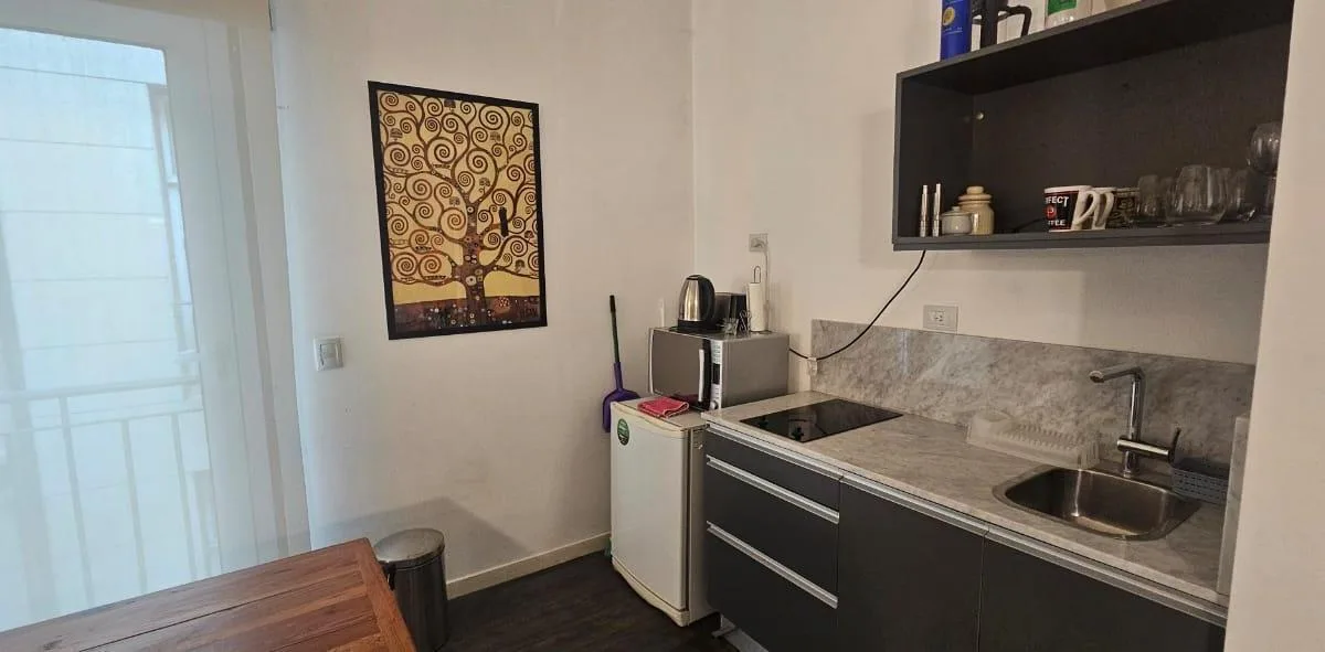 Kitnet mobiliada em Palácio Raggio, em San Telmo (casco histórico), no 3º andar. Unidade reciclada, com cozinha integrada ao living, dormitório separado por biombo e banheiro completo. Sistema elétrico. O condomínio do mês de abril de 2026 corresponde ao valor do aluguel e inclui AYSA e aquecimento. O prédio, de 1900, tem segurança, lavanderia, academia, piscina na cobertura, solário, hidromassagens e sauna, com 160 unidades tipo loft, algumas com mezanino e/ou terraço próprio.