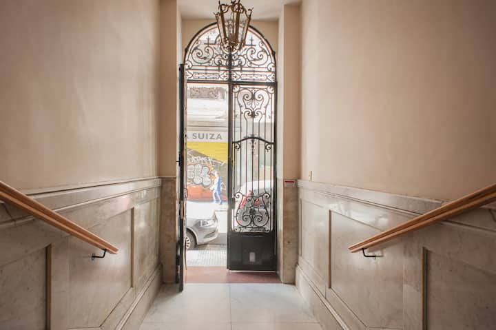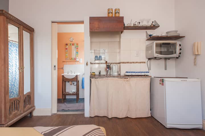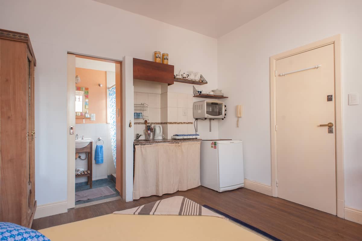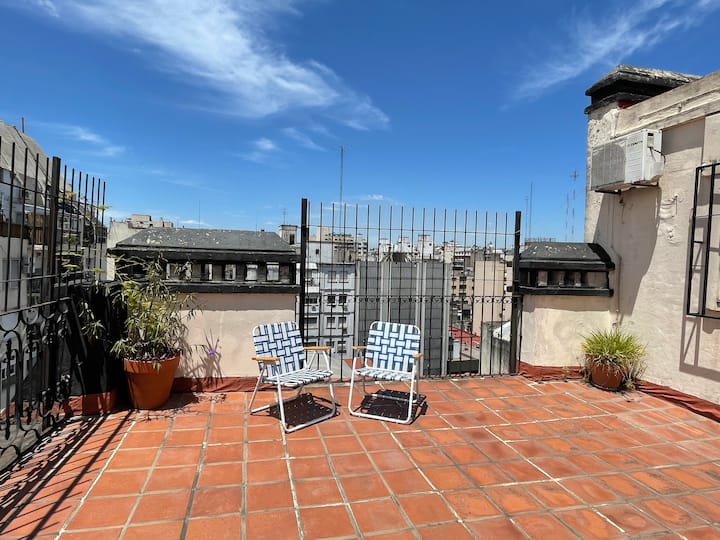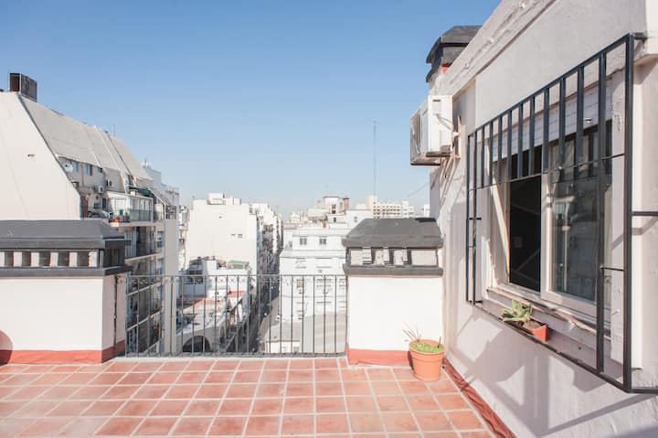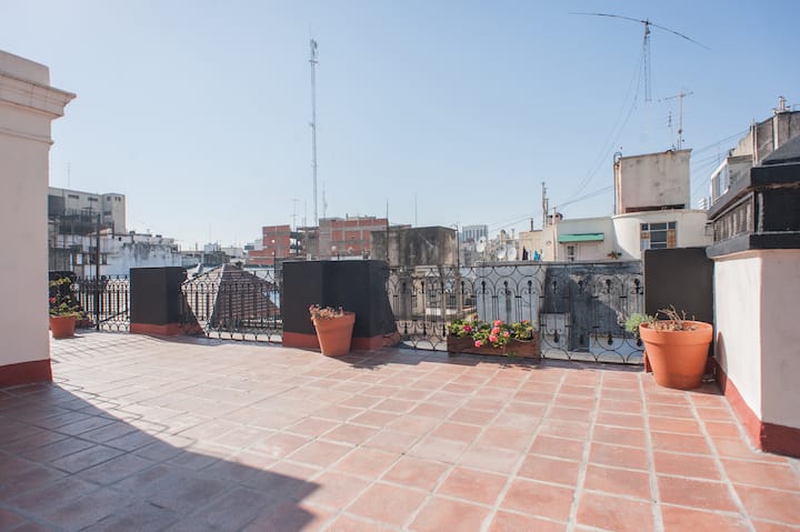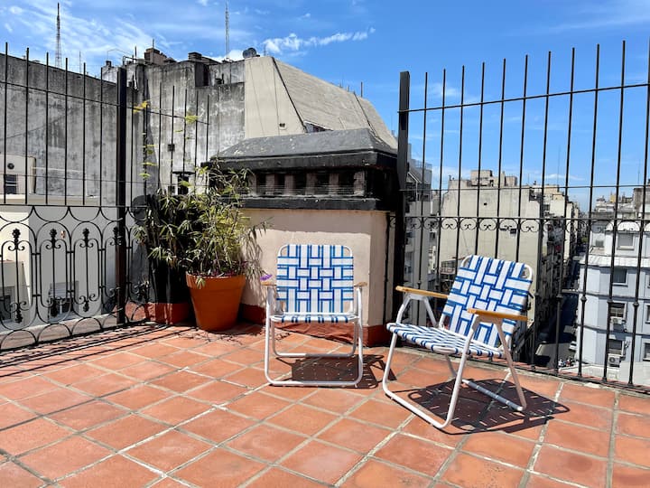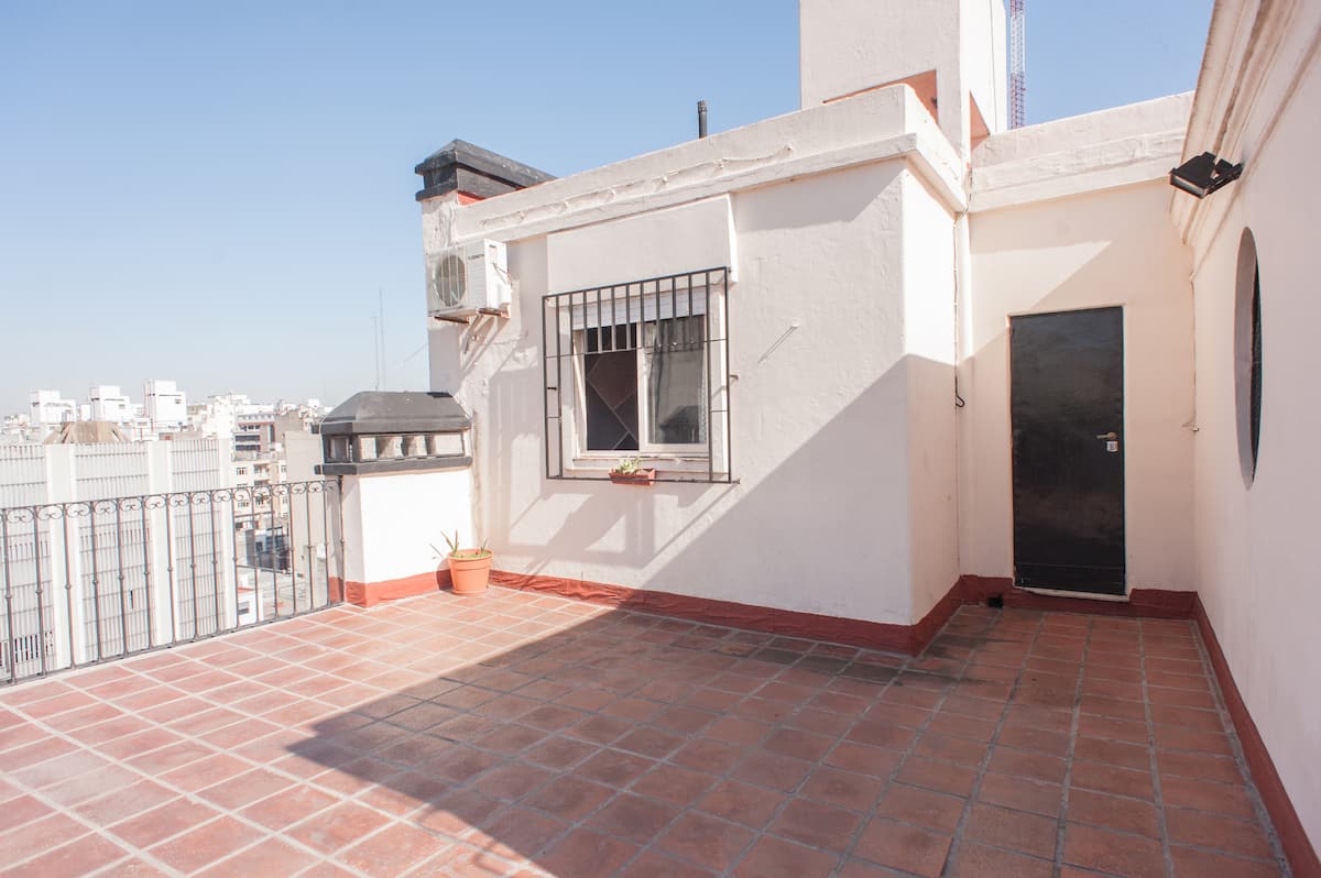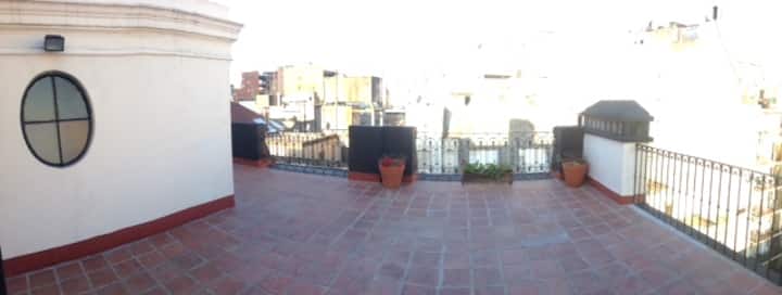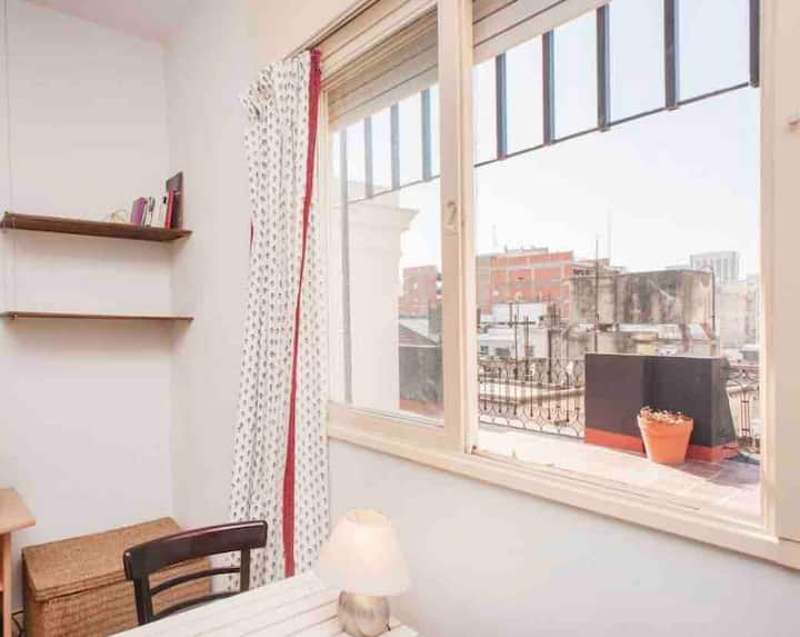 Kitnet em Monserrat, em edifício bem conservado, no último andar, com privacidade e acesso ao terraço. O ambiente tem janela voltada para um terraço de uso comum, com vista e iluminação natural. O imóvel é silencioso e fica na área histórica central de Buenos Aires, com acesso a todo o apartamento e ao terraço.