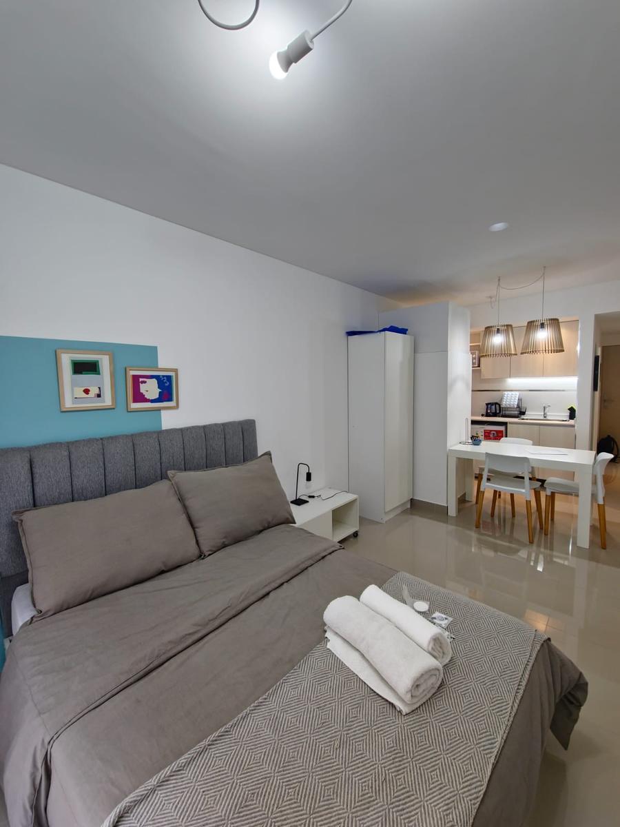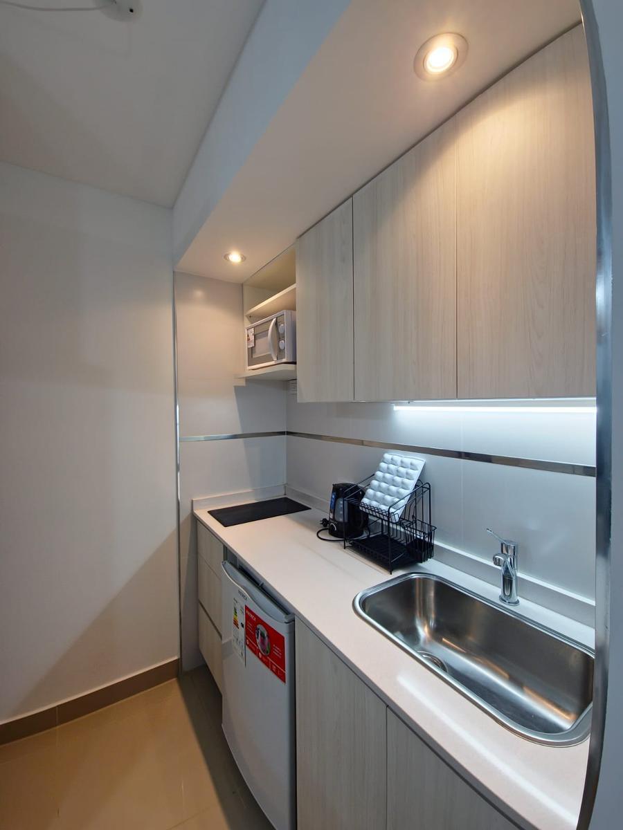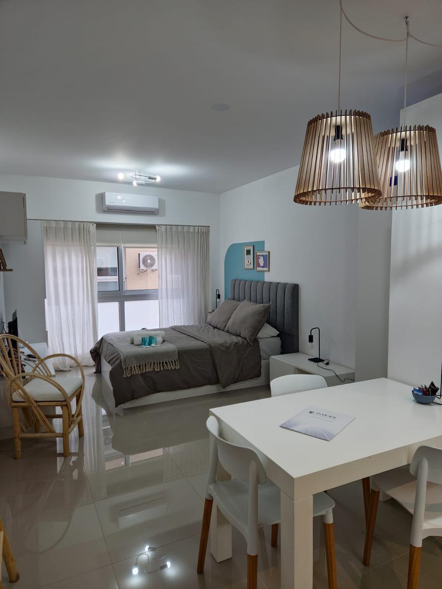 Kitnet mobiliada para aluguel em Monserrat, com 1 ambiente. Preço de USD 800, além de luz e internet. Unidade com ar-condicionado frio e quente, banheiro completo, armário e cozinha equipada com geladeira. O prédio oferece segurança 24 horas, piscina aquecida, coworking, sala de reuniões, terraço, lavanderia e restaurante, a 2 quadras do Subte Linha E, estação Bolívar, e a 3 quadras do Subte Linha A, estação Perú.