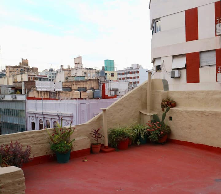 Apartamento em Monserrat na área central, a 3 quadras da feira e mercado de San Telmo. Unidade com cama de casal (tamanho twin), TV de 32 polegadas, geladeira e micro-ondas, além de máquina de lavar rápida e Wi-Fi. Há acesso a uma área de uso comum com terraço e pátios compartilhados.