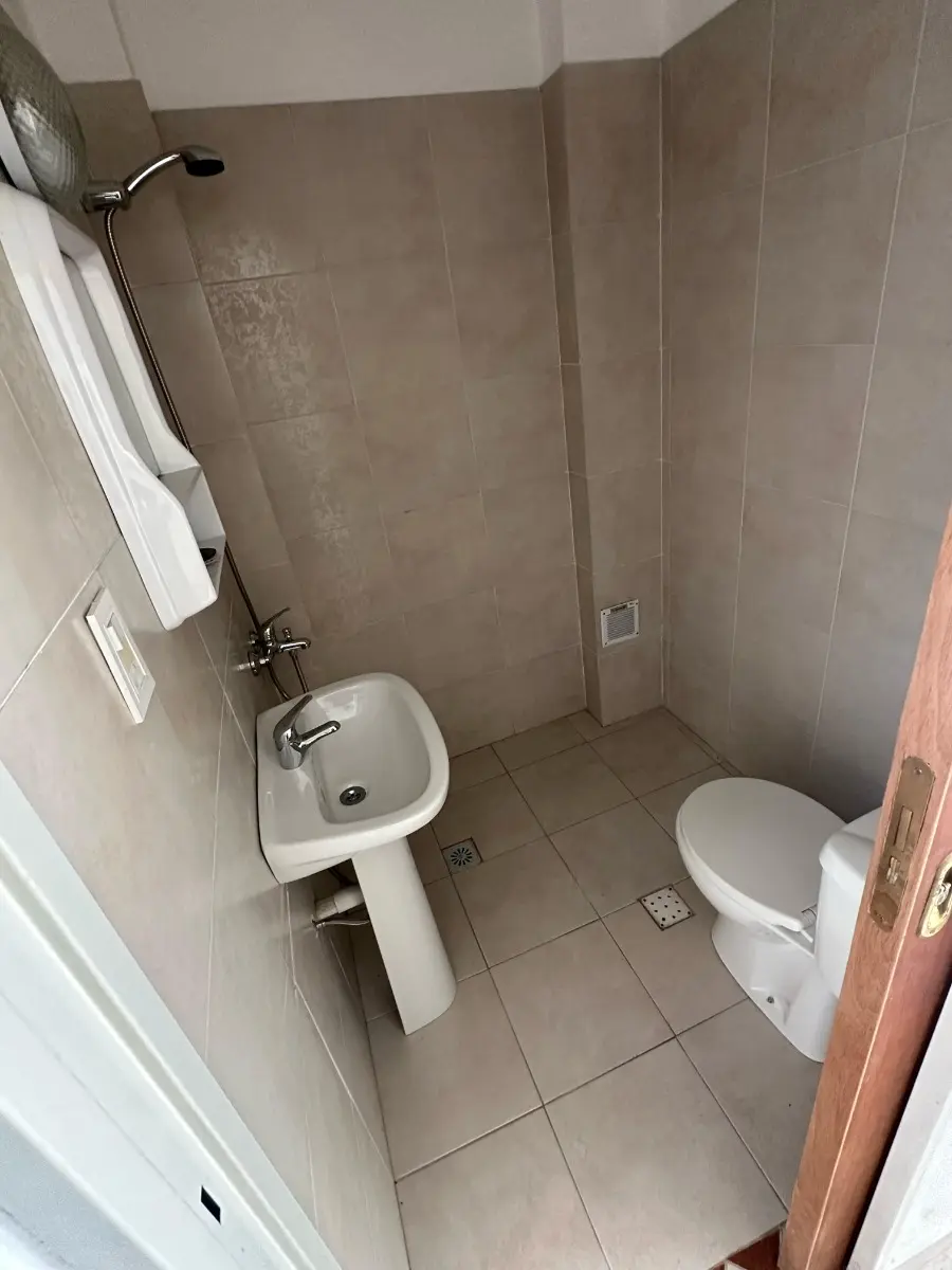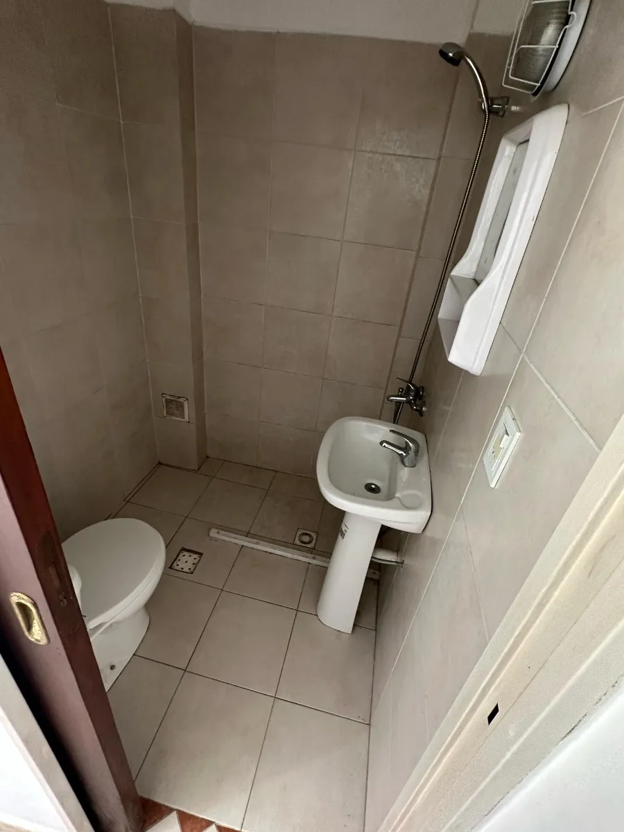 Kitnet de um ambiente (monoambiente) novo, sem mobília, em San José de Morón Sur. O imóvel tem um ambiente, banheiro completo e espaço destinado à cozinha elétrica. A unidade conta com piso cerâmico, paredes pintadas em tons claros, cozinha com armário baixo, cuba, aquecedor de água elétrico (termotanque) e exaustor, além de banheiro com lavatório, vaso sanitário e ducha. A cozinha e o banheiro ficam em um edifício de 2 andares, sem elevador, sem segurança e sem vaga de garagem, e não são aceito