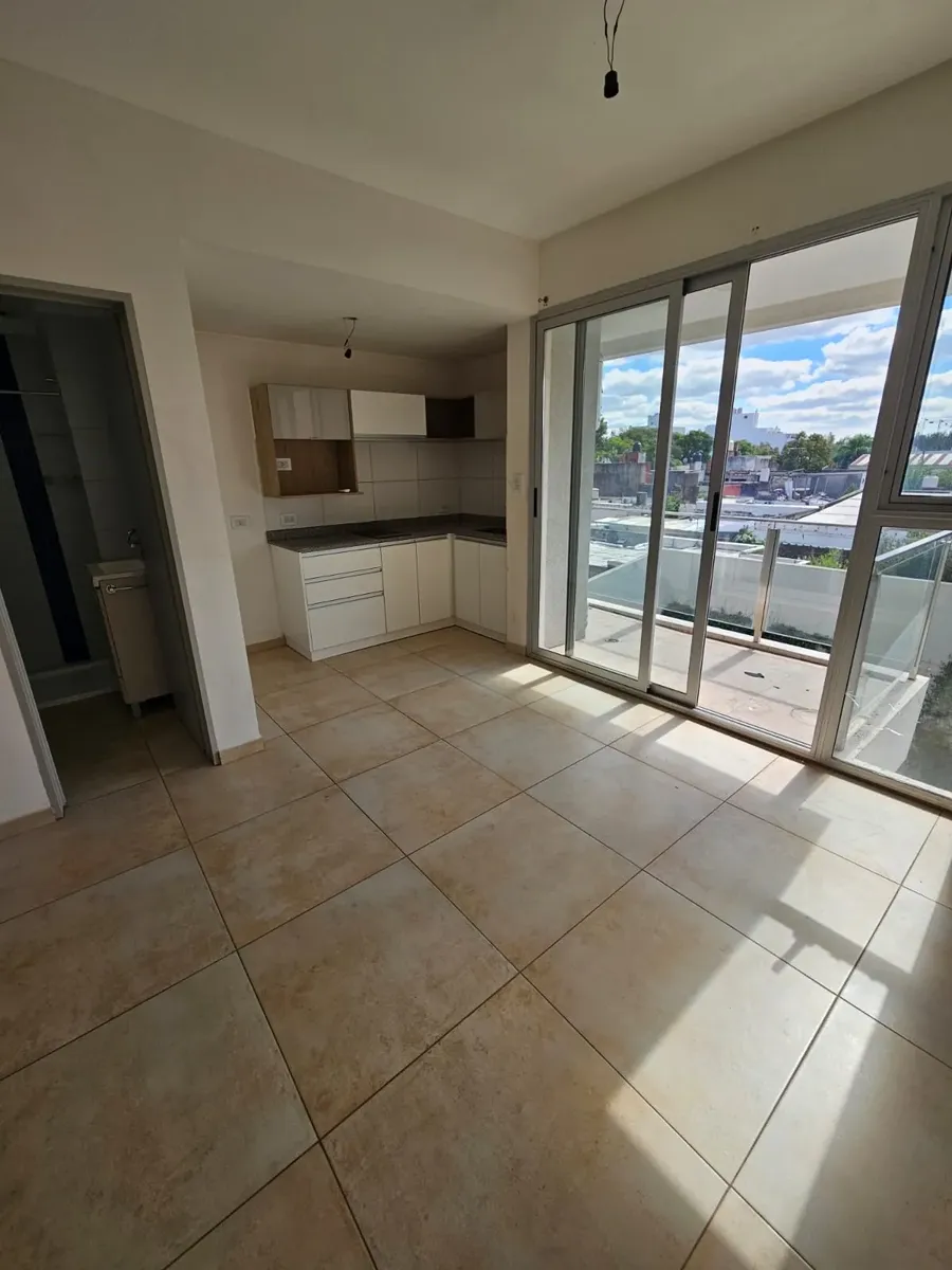 Kitnet com cozinha, banheiro e varanda em El Palomar, Morón. Fica a 2 quadras da estação de El Palomar do Tren San Martín e a 2 quadras da Av. Marconi. A entrada exige fiança (caución) e o contrato é de 2 anos com reajuste trimestral.