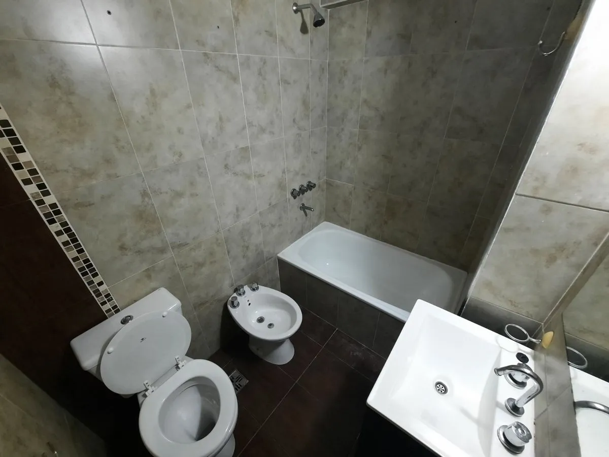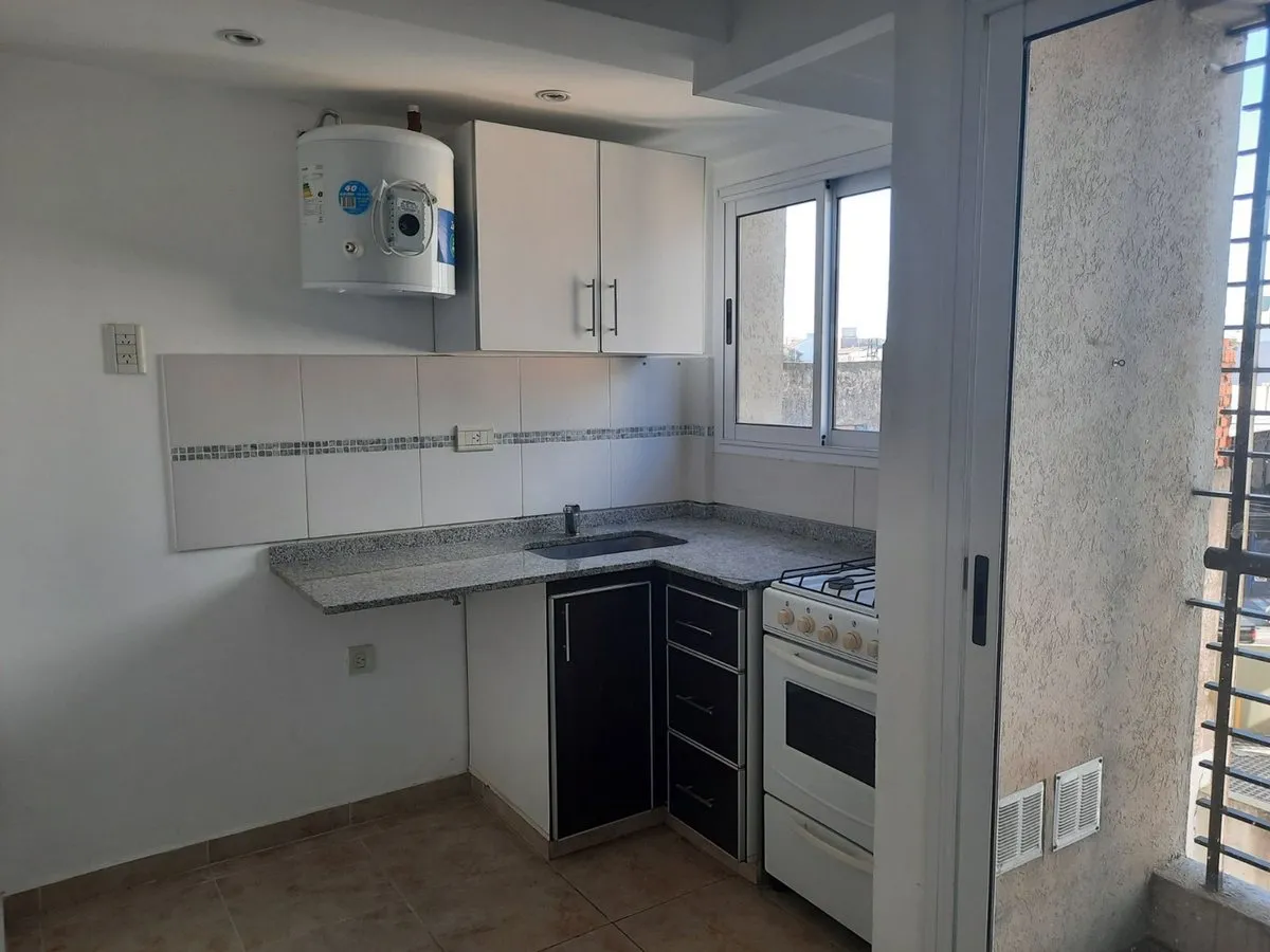 Kitnet de 1 ambiente em El Palomar, no centro. Fica no 3º andar de fundos e tem varanda. Cozinha com fogão a gás, armário de pia e armários superiores; banheiro completo com banheira. Água quente por aquecedor elétrico, espaço para conexão de lavadora, ar-condicionado frio-calor e piso de porcelanato. O prédio tem 7 andares, com 3 unidades por andar; condomínio a março de 2026: $ 50.000.