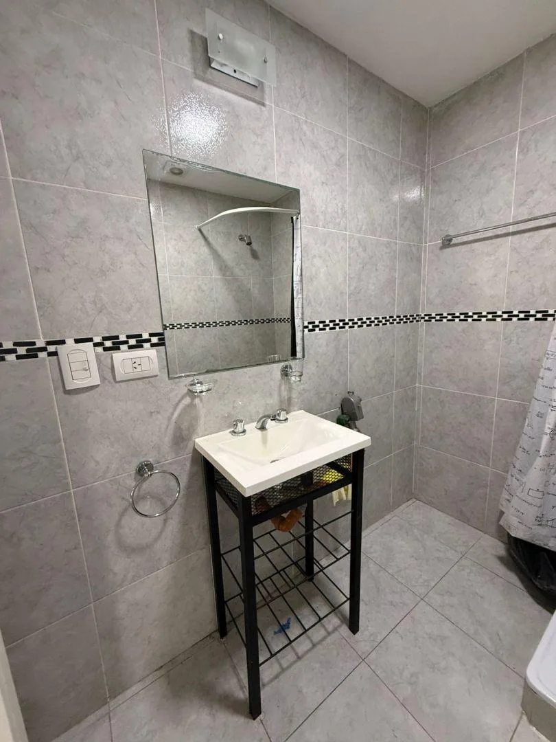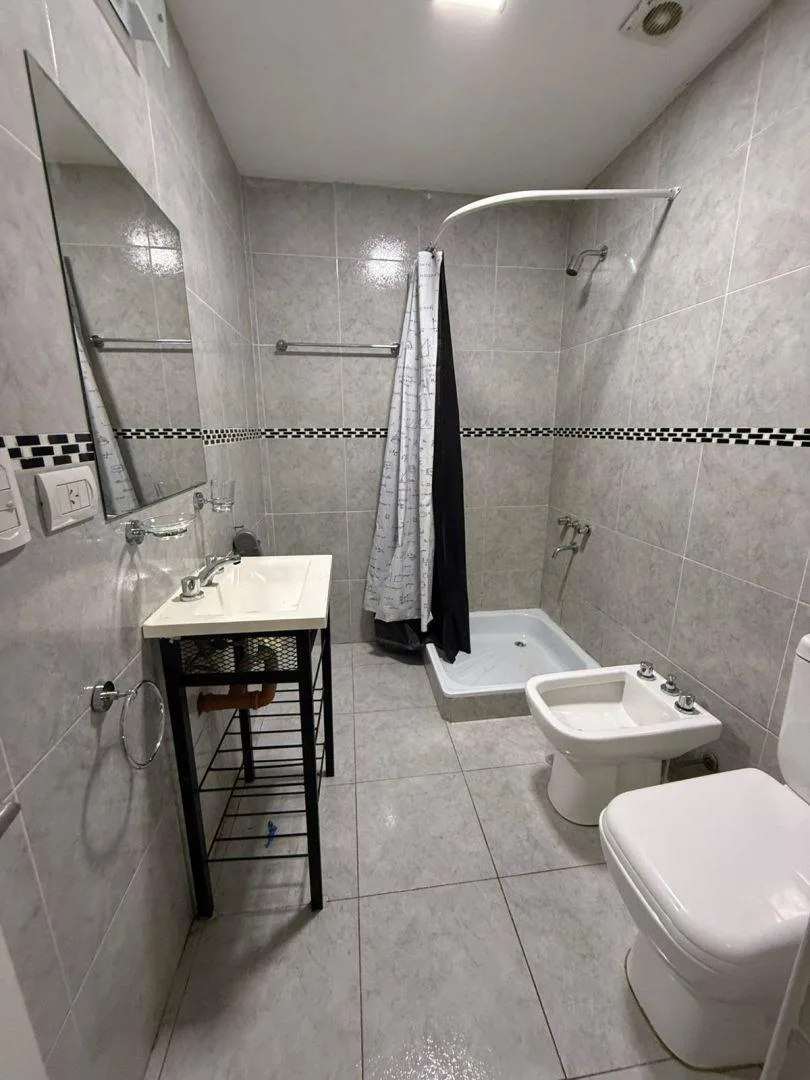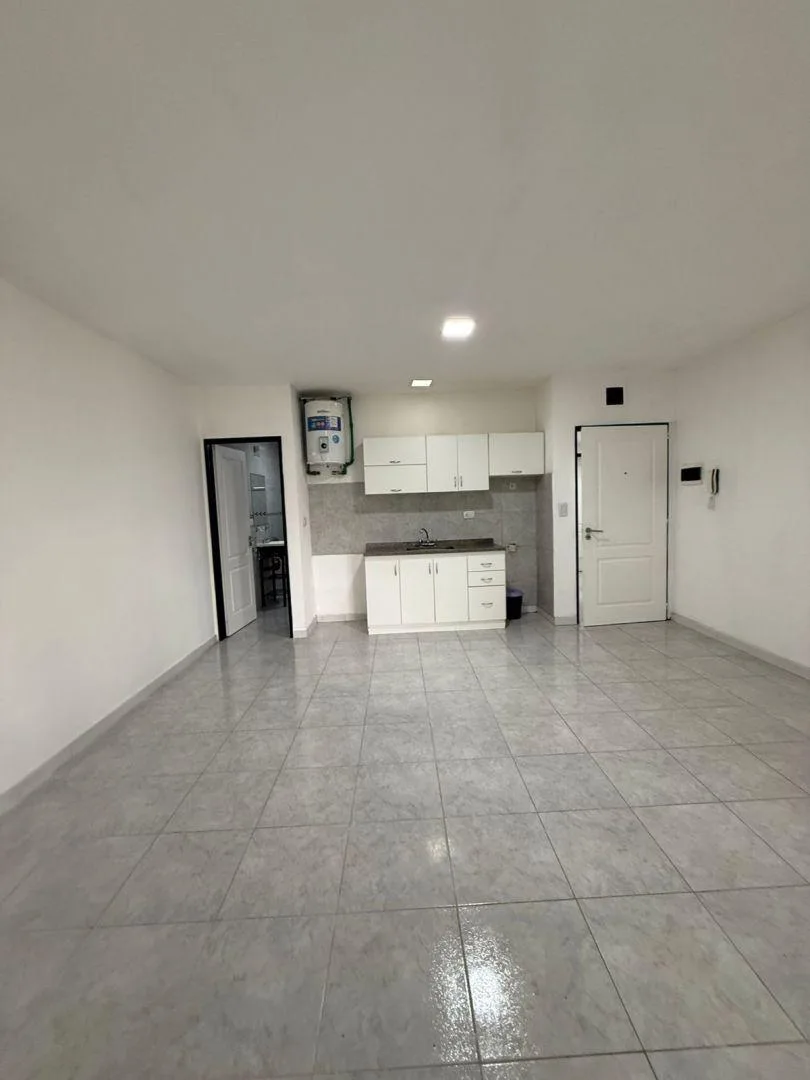 Kitnet (monoambiente) de frente em Villa Sarmiento, Morón. Fica no 1º andar por escada e tem vista aberta para a frente. Cozinha integrada com armários sob a bancada e nicho (alacena), sem aparelho de cozinha. Banheiro completo com ventilação; há espaço e conexão para lavadora. Instalação elétrica; não há gás. Até 2 pessoas. Exige comprovação de renda e fiança por propriedade (familiar direta) ou Finaer.