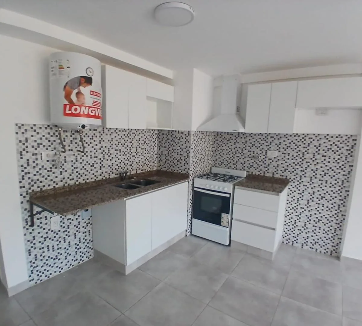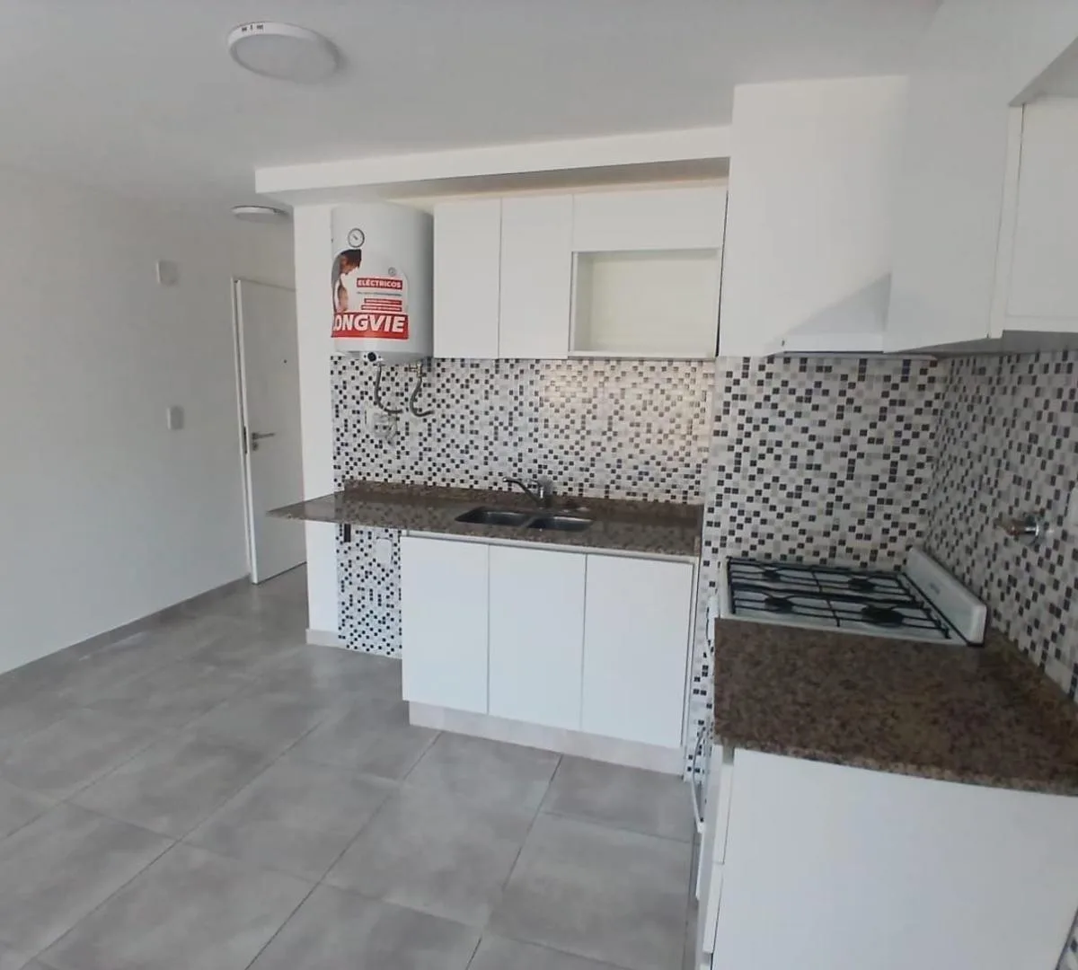 Kitnet tipo monoambiente de 30 m² totais, de fundos (contrafrente), no primeiro andar. Conta com banheiro completo e cozinha a gás, com termotanque elétrico. Há conexão para lavadora (lavarropas) e o imóvel foi recém-pintado.