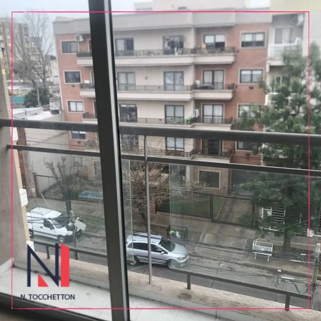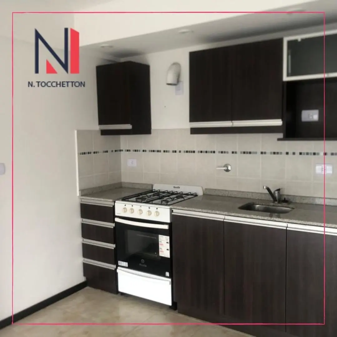 Apartamento monoambiente em Morón. Frente para a rua, com sala e cozinha integradas, banheiro completo e espaço para conexão de máquina de lavar. Varanda do tipo balcão francês com vista para a frente. O edifício tem duas torres e a unidade fica na torre da frente; há serviço de luz e gás, área de churrasco, terraço e depósito privativo (baulera).
