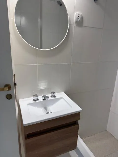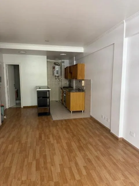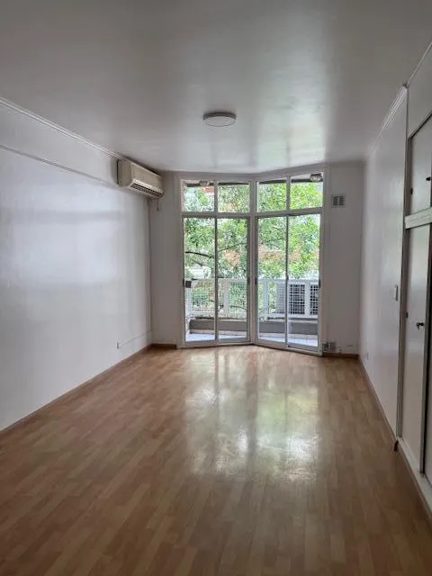 Kitnet de 1 ambiente em meio andar em Palermo para aluguel. Possui pisos de parquet, varanda, ar-condicionado split frio e quente, banheiro reformado e cozinha com fogão elétrico Morelli novo. Inclui lavadora (lavarropas) e lava-louças, aquecedor de água individual (termotanque) e armário/placar. O condomínio é de R$ 110.000 e o AGIP é de R$ 24.000; há depósito (baulera) e câmeras de segurança no prédio, sem encarregado.