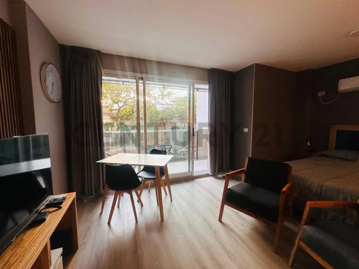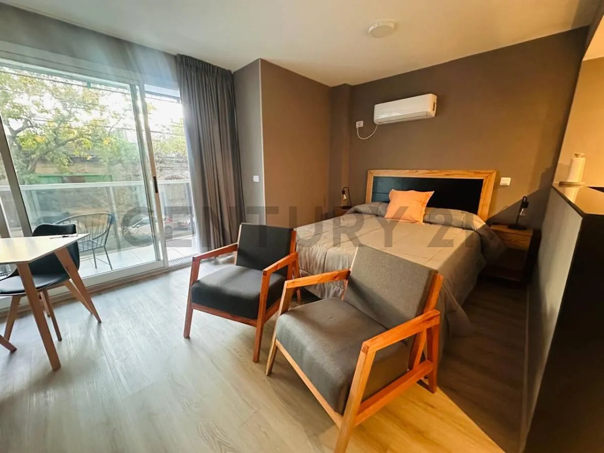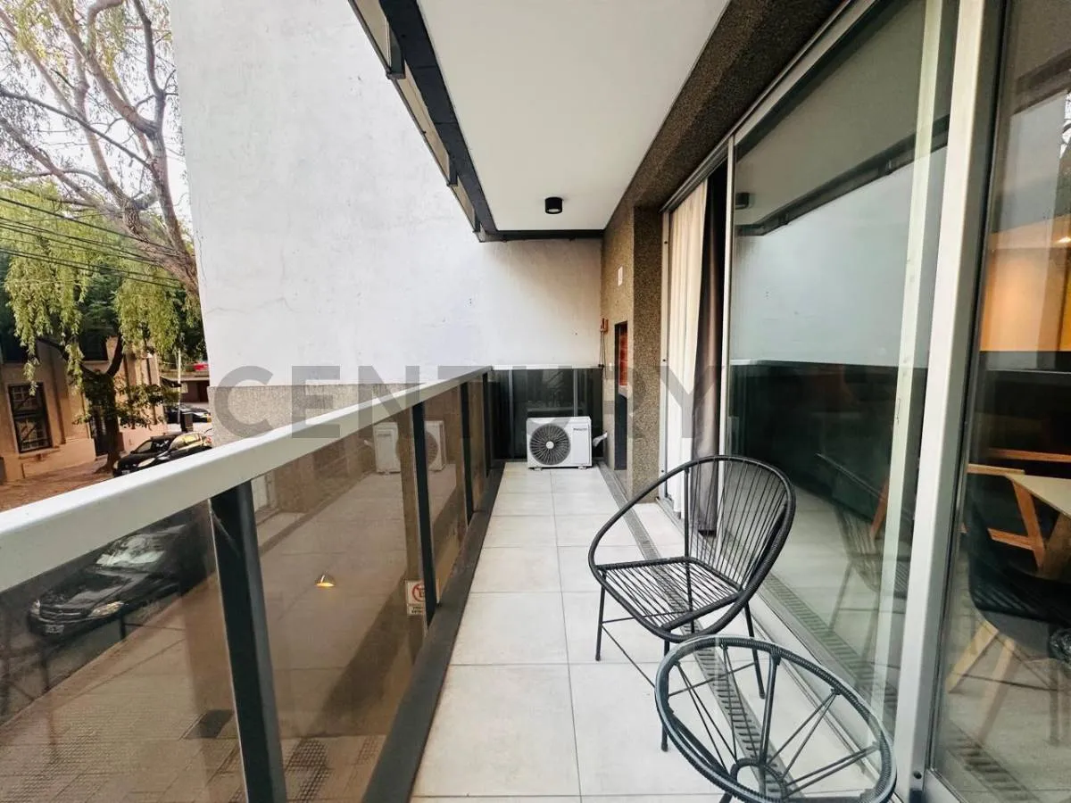 Studio mobiliado com 43 m² em Palermo Soho, com varanda de frente para a rua e churrasqueira própria. Inclui conexão para máquina de lavar, aquecimento por piso radiante elétrico com termostato, ar-condicionado e cozinha com fogão elétrico vitrocerâmico e forno elétrico. Contrato temporário semestral (6 meses), mediante comprovação de renda. Fica a poucos metros da Universidad de Palermo, do shopping Alto Palermo e da Av. Córdoba.