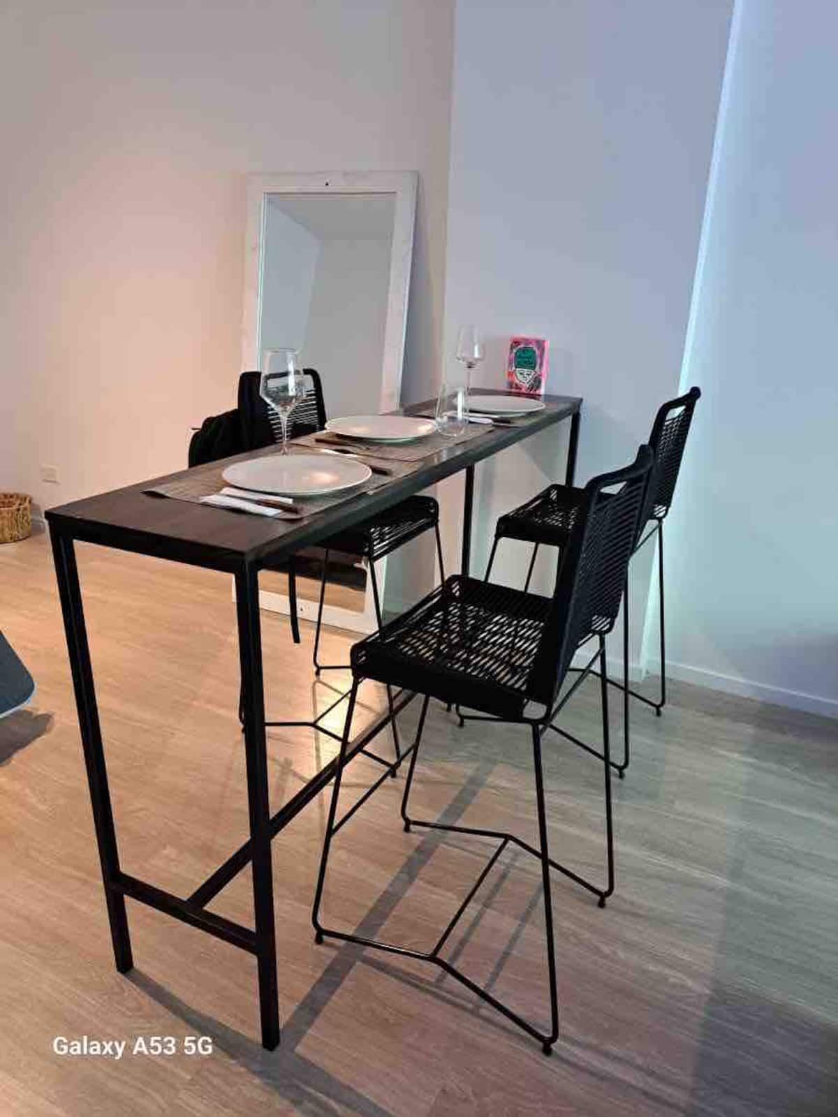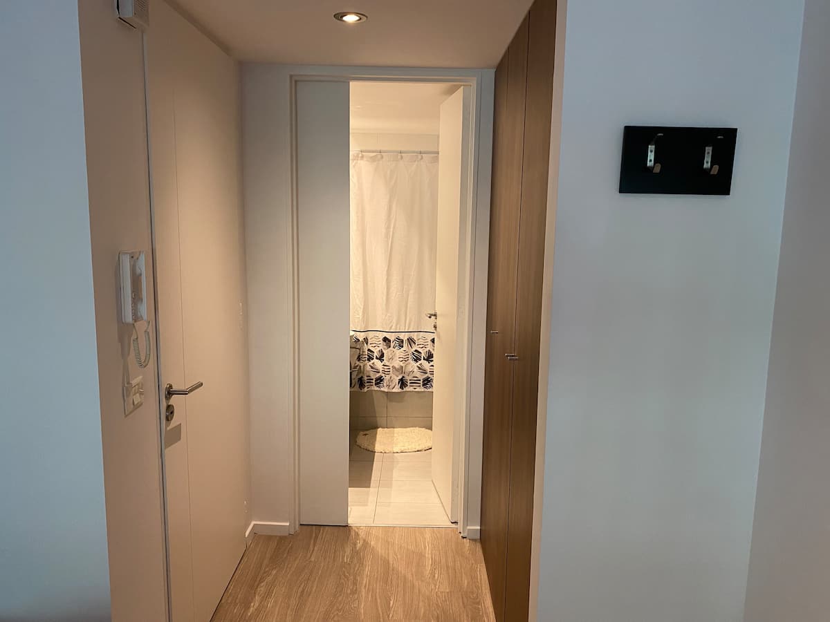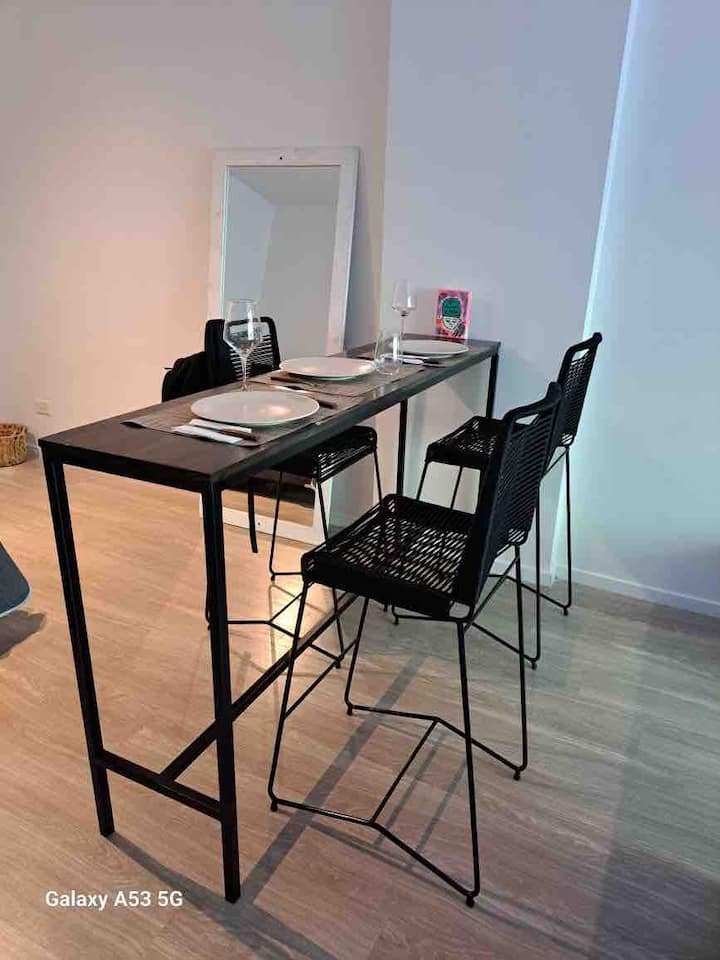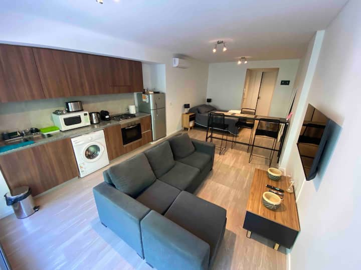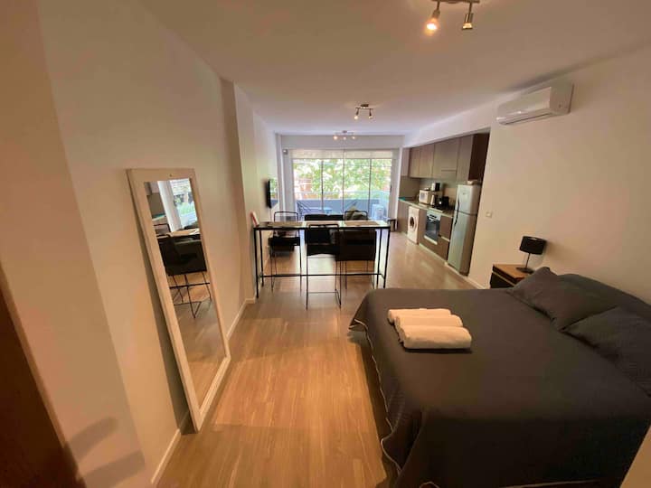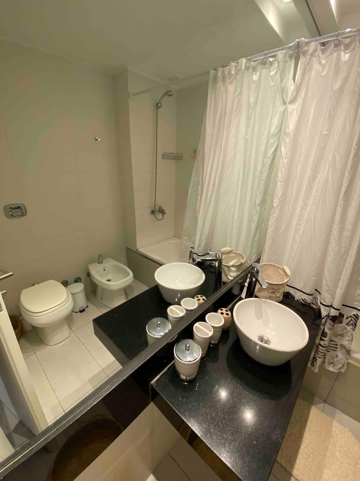 Apartamento tipo kitnet em Palermo. A unidade fica a duas quadras da estação Carranza da linha D do metrô. Há espaço com cama e roupa de cama; o terceiro hóspede pode dormir no sofá.
