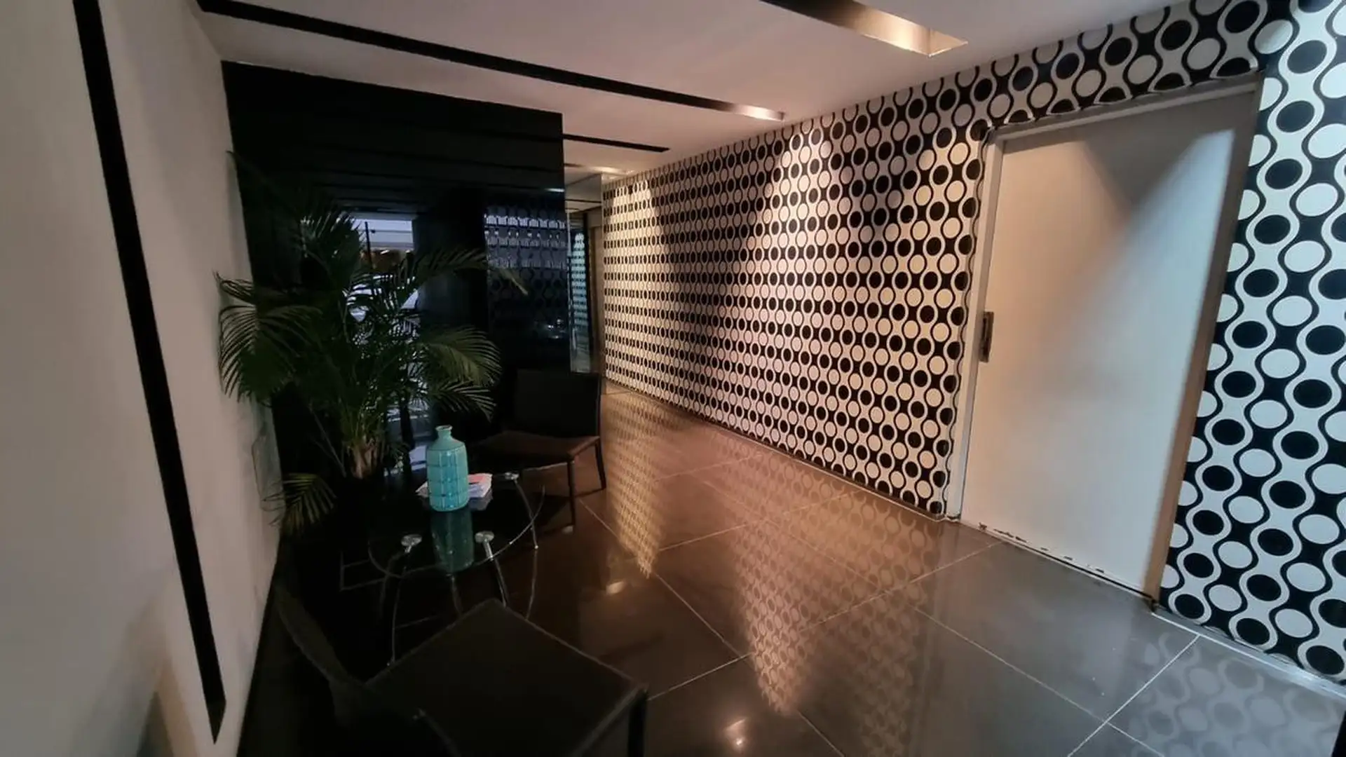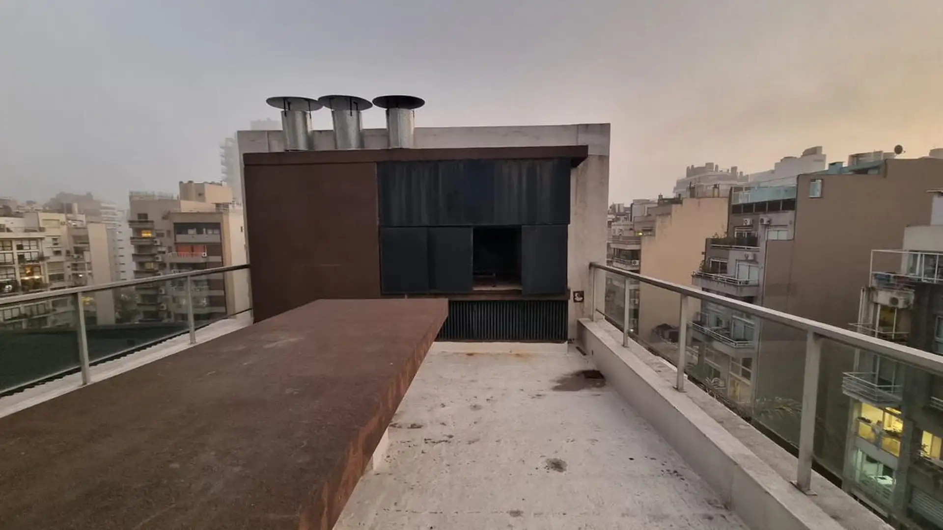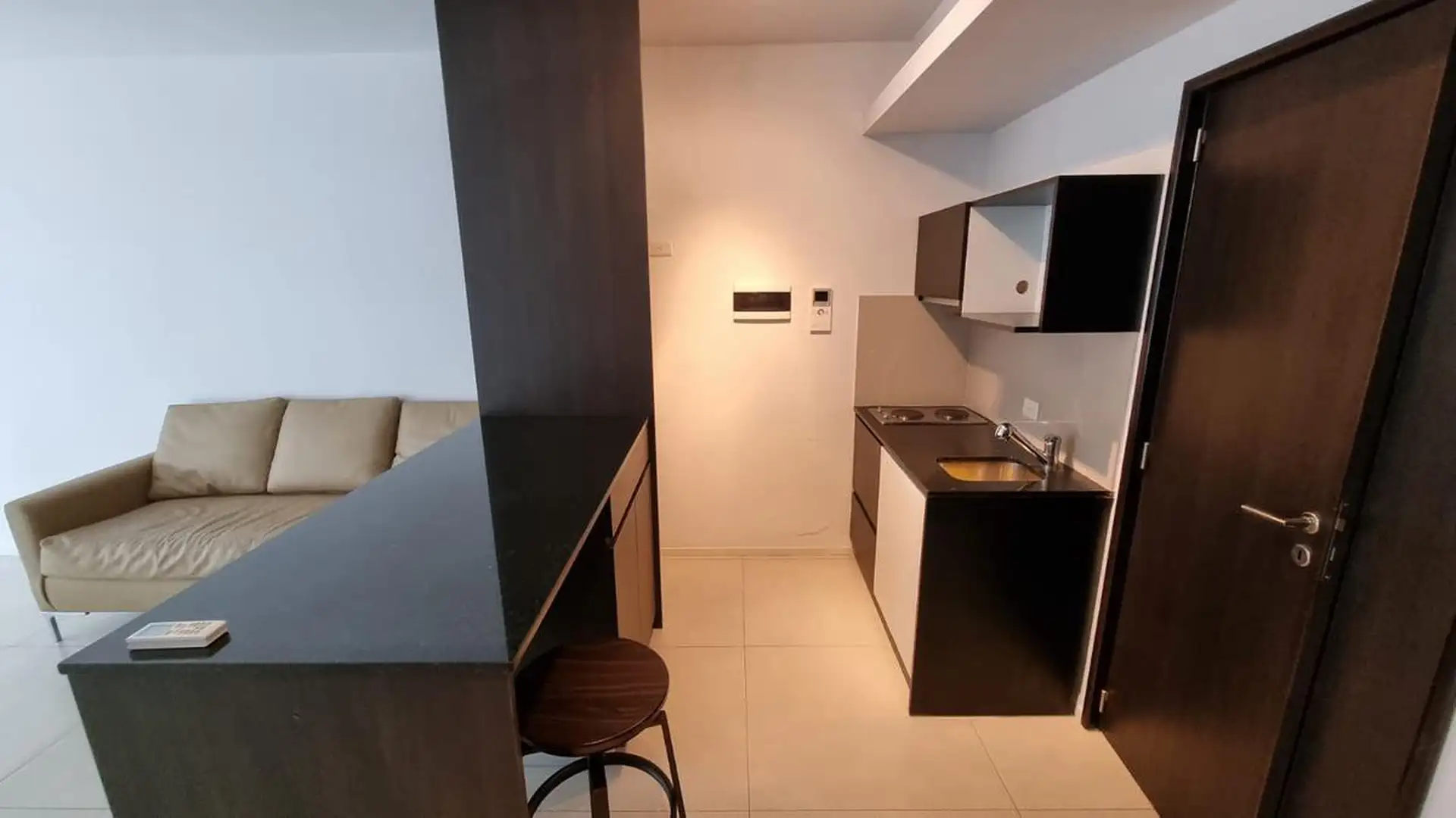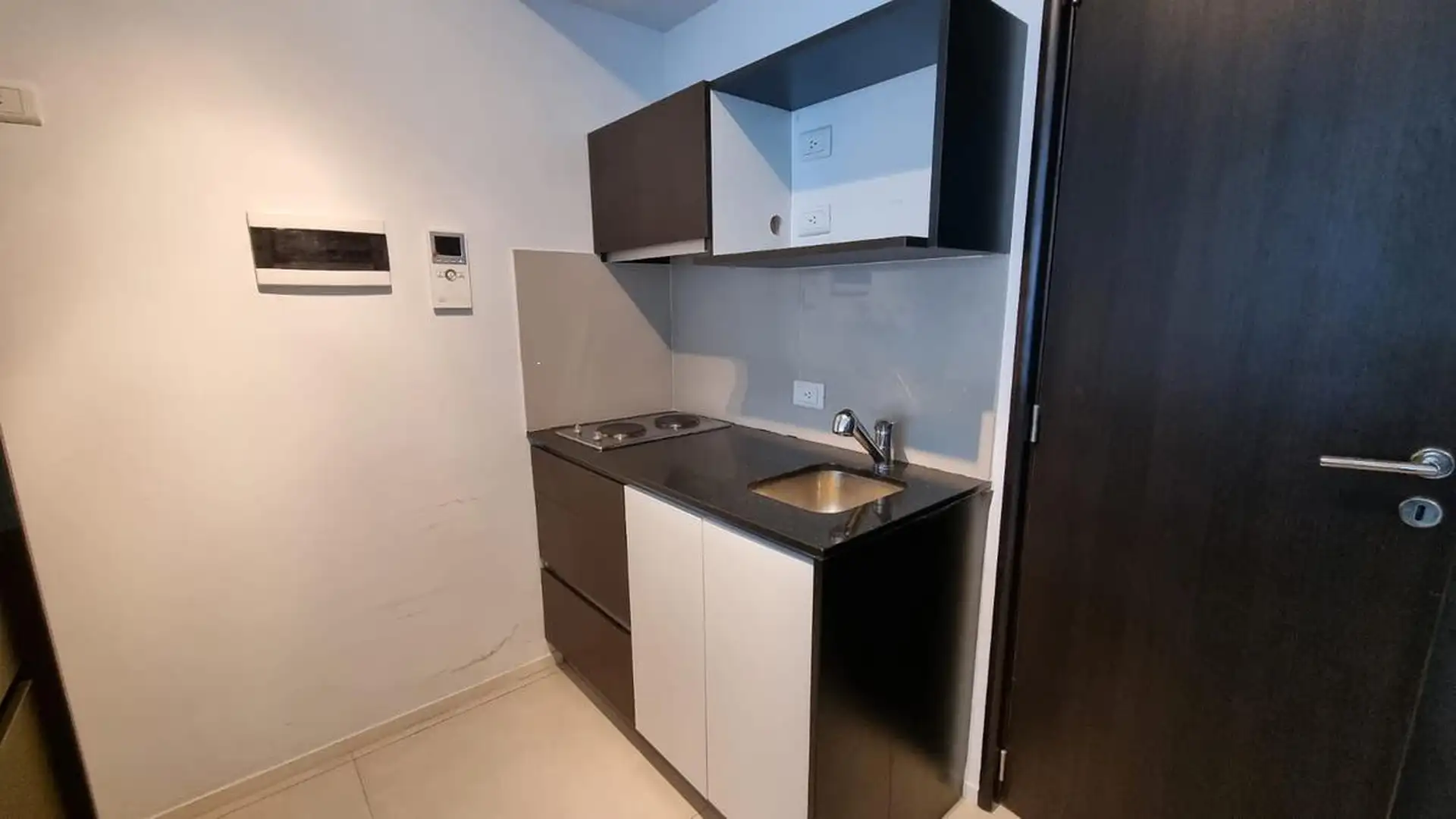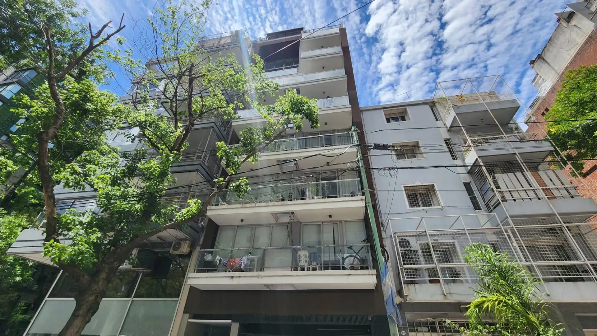 Kitnet (um ambiente) semimesiado, de frente para a rua. Possui cozinha com balcão integrado e banquetas, amplo armário de 3 folhas feito sob medida e ambiente principal de 6,85 x 4. Inclui varanda de 4 m² com vista aberta, ar-condicionado frio/calor, cortinas roller e black-out e luminárias completas. Há churrasqueira no último andar e cortinas; o mobiliário adicional (sofá) é opcional. O imóvel fica a 2 quadras da Av. L. M. Campos e Libertador, próximo ao trem Mitre, à linha D do Subte e a linh