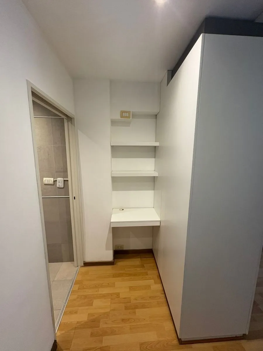 Kitnet (monoambiente) em Las Cañitas, no 2º andar de frente para a rua. Fica a 2 quadras da Av. Libertador. Há espaço para lavarropas, ambiente dividido e área de depósito com armários, além de um mini escritório.