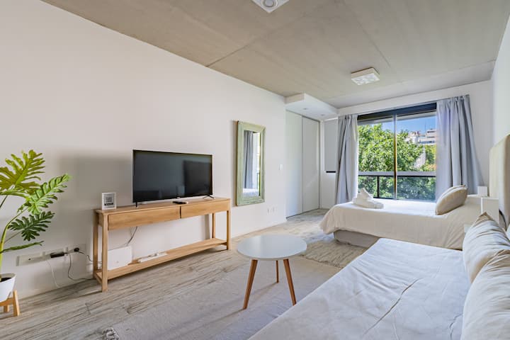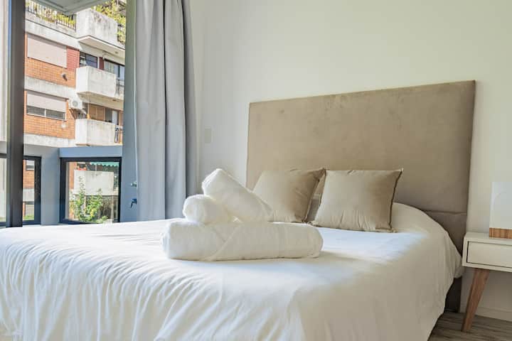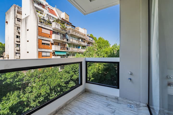 Kitnet novo e mobiliado, com janelas amplas e varanda de frente para a rua. Fica em Palermo, a alguns quarteirões da Plaza Italia e da La Rural. A 3 quarteirões do metrô e próximo a shopping centers e ao Ecoparque/“Bosques de Palermo”.